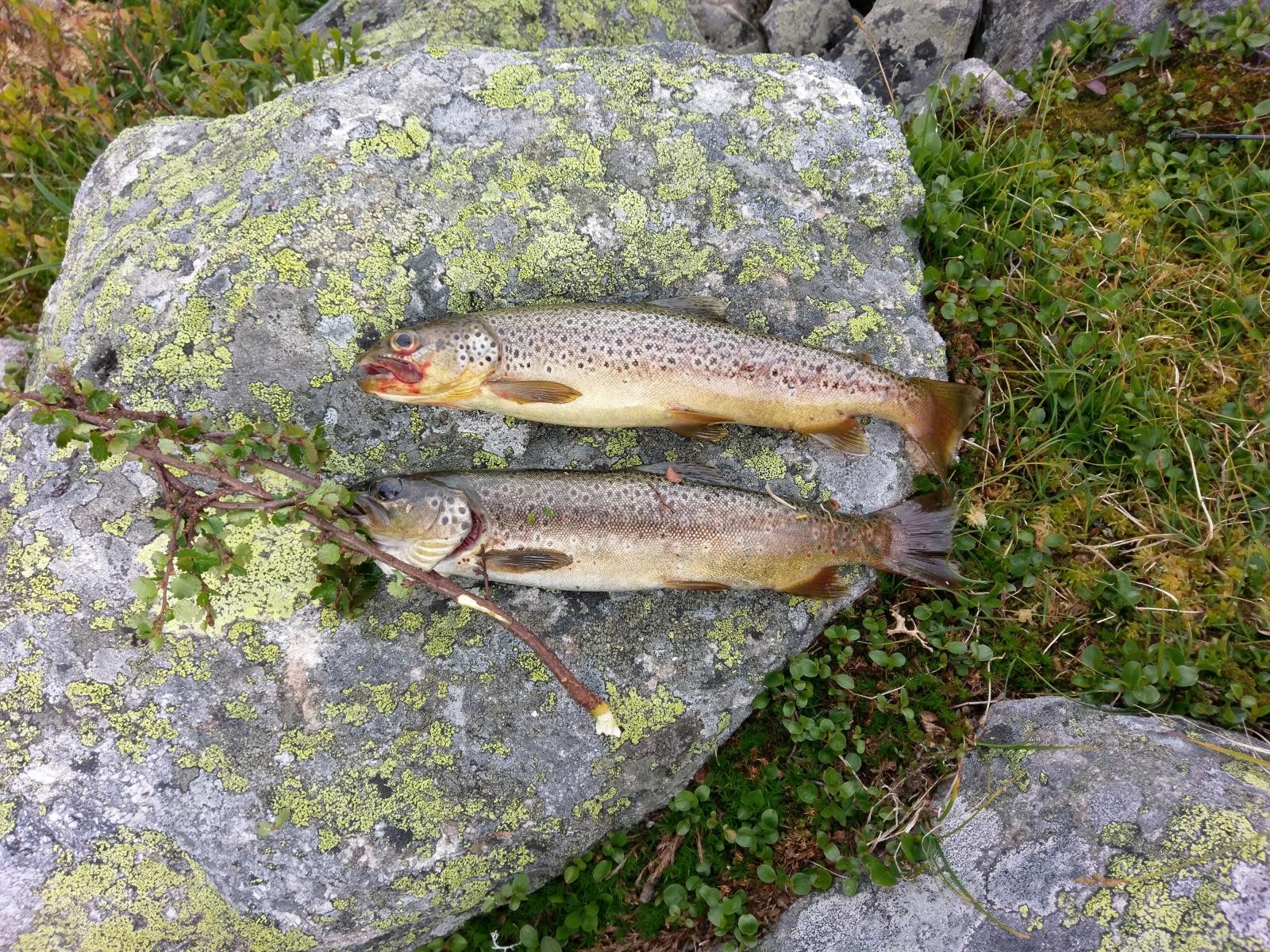 Hadde en ukestur til Vikbekkfjell i ganske kaldt og litt forblåst vær. Men det la ingen demper på turgleden. Starta ved å kjøre inn til Synken på mandag morgen den 1. august. Målet for dagen var å komme opp til viktjønn. Betalte mine 600 kroner for å få fiske en uke og begynte å gå oppover mårshallene, Det er alltid litt lenger enn det ser ut til å komme til toppen der. Men når en kommer opp så begynner herligheten og åpenbare seg. Jeg gikk herifra inn til Holken og der møtte jeg på Tom42 og satte meg ned ved teltet hans og tok et par kopper kaffe før jeg gikk videre. Turen videre var grei skuring og litt over en times tid senere satt jeg opp teltet. Er forøvrig første gang Ringstind 2 teltet er med på fjelltur. Teltet klarte seg veldig bra, passa nå på og sette det i le så godt det gikk. Teltet hadde ihvertfall ingen problemer med været som ble servert. Etter etablert camp så tok jeg fram fiskestanga og heiv ut et stykke metall, og det hugga til allerede på første kast, det varma hjertet godt og kjenne den sprellende ørreten så fort. Møtte et par andre folk på veien til viktjønn som nevnte at fiske hadde vært veldig labert og egentlig håpløst. tenkte da på hvordan det var for et år siden, da jeg fikk en fisk på 5 dager. Fiska endel utover ettermiddag og kveld, men flere fisk ble det ikke. Tom42 kom etterhvert og opp til der jeg hadde satt opp campen, vi skulle så og si samme ruta, så da kunne en jo ha litt hyggelig selskap på veien. Dagen etter ble det spist litt frokost og stanga måtte selvfølgelig testes igjen. Etter en liten halvtime satt det jammen på en ny fin fisk, denn noe mindre enn den fra gårsdagen, men alikevel på fine 450g. gikk turen til melrakktjønnan, møtte et par mannfolk på veien og snakka også om veldig labert fiske. Fant en fin teltplass nokså i le og satte opp teltet og startet på lunch ganske så kort tid etterpå. Jeg ville utnytte finværet som var, og jeg hadde jo to fine fisk med meg. Tom42 kom også etter og satte opp sitt telt ikke så langt ifra hvor jeg hadde satt opp mitt. Han fikk den ene av fiskene mine, jeg hadde nok med å spise den ene. Utover ettermiddagen ble stanga funnet fram igjen og jeg endte opp med 4 fisk i løpet av en times tid alle på ca samme størrelse, veide dem aldri da jeg syns de var litt små, men fungerte fint til steking, fikk også en fisk til utpå kvelden på flua, denne hadde og nøyaktig samme størrelse. Det ble ganske så kaldt utover natta og gradestokken sank til 2 grader så da ble det ganske tidlig soveposen og varmen fra den. Dagen etter pakket jeg sammen teltet og sekken, planen var gunvaldstjønni. Turen bort dit gikk veldig greit og var vel unnagjort på et par timer. Her inne var det endel vann og velge imellom, men første dagen der ble det et napp og ingen fisk. Dagen etter hadde jeg planer om å ta turen til endel av de forskjellige vannene i området og det fikk jeg også gjort og endte opp med en veldig fin fisk på 600g. Akkurat da syns jeg fjellivet var ganske så perfekt fram til regnet kom ved 5 tida og vedvarte ut resten av kvelden og natt, så da ble det god tid til å sitte i teltet og slappe av, fisken fikk jeg ta dagen etter og tok heller da bare en real inne i teltet. Fredagen kom og jeg gikk opp på en høyde for å sjekke værmld og den så ikke veldig lovende ut for verken lørdagen eller søndagen så da bestemte jeg meg for å ta turen tilbake til viktjønn og sette opp teltet der igjen slik at jeg kunne ta og gå hjem lørdagen om værmld slo til. Ved adkomst viktjønn kunne jeg til min glede se at det var vakaktivitet på vannet, var både bibio og et par døgnfluer i lufta samtidig som vinden for en gangs skyld ikke var irriterende kraftig. Etter en halvtimes tid gikk en ørret etter flua men jeg fulgte selvfølgelig ikke godt nok med og klarte ikke treffe med tilslaget. 10 mintutter senere var fisken der igjen og tok flua, men denne gangen satt tilslaget som det skulle og det ble en fin 500g ørret i hoven etter en morsom liten kamp. Fisken ble spist så og si direkte etterpå. Vinden begynte å ta seg ganske godt opp og det frista ikke til så mye mer fisking denne dagen, så ble for det meste sittende og drikke kaffe og skue over fjellet. Hørte etterhvert noen smålyder som jeg ikke kunne si hva var før jeg slengte et blikk over til en fjellside langt borte og der var det minst 100 reinstyr på vandring, synd jeg ikke hadde speilrefleksen klar da men bare mobilen. klarer så og si ikke tyde at det er dyr der engang, men jeg prøvde nå og ta noen bilder. lykke til med og se dem Lørdagen våknet jeg 0500 til regn og vind og bestemte meg tidlig for at dette gadd jeg ikke sitte en hel dag i teltet i, så klokka 0800 var teltet pakket i sekken og jeg tok fatt på turen tilbake til bilen. Alt i alt har jeg hatt en fin tur og det ble faktisk litt fisk denne gangen5 poeng