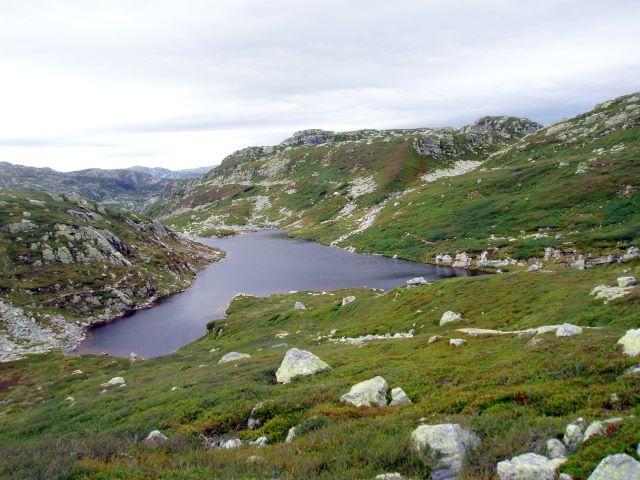 Hei. Enda en gang takk for sist. Det var både hyggelig og oppfriskende. har tatt et dypdykk i arkivet over noe vi snakket om Lifjell og gammen ved Krokvann. Det var vel i Alt om fiske ellerVillmarksliv jeg fant denne artikkelen, om "Hardangervidda i miniatyr" og jeg tenkte: "Hvorfor ikke. Og så er det ikke så langt heller. Det er mange veier opp dit. Enkleste er vel å parkere ved Jønnebu og gå Aksladalen oppover. Jeg tar av fra stien og går mot Klokksteintjønna som skal være et flott vann med fin fisk, uten at jeg har sett snurten av den. Dette bilde tok jeg en gang rett etter St Hans,og jeg skulle ikke gå mange høydemeter før dette synet møtte meg Snø og is. Men jeg slengte ut ei flue der hvor det var isfritt, og en ørret tok øyeblikkelig og voldsomt. Og jeg, jeg hoppet høyt av forskrekkelse, og borte var fisken. Ruslet videre mot Småholmen. Krysset Homen, men der var det så mye småfisk at jeg bare gikk videre, og endelig var jeg ved målet Småholmen Et idyllisk vann, litt vanskelig å få fisken der, men for all del. Og innerst ligger "Steinbua" Egentlig så har de bygget ei hytte og fylt opp med stein etterpå Detter er det synet som er det beste syne jeg, og enda bedre om også pipa er tatt inn. DA vet jeg at hytta er ledig. Og hvis ikke er dette heller ikke å forakte. Hytta er temmelig spartansk, men hva gjør det Den består av en sovebrisk, og en liten brisk Den Ett bord, og en radio, og er jeg heldig finner jeg noen lysetumper Og ikke å forglemme - en ovn Men om det er ved er alltid det store spørsmålet. En gang "spanderte" jeg et par bord fra en overkøye.og det holdt. Hytta eies av Bø Fiskarlag, den står åpen for fiskere og sauesankere, men ikke for jegere #################### Så var det gammen ved Krokvann. Å finne den er lett. Det er bre å følge stien fra parkeringsplassen ved Viddaseter og gå til skiltet "gamma" forteller hvor vi skal ta av. Så er det bare å forsere brua, om den er på plass Og rett til venstre finner du herligheten. Også her, som på Lifjell er det satt opp en gamme, byggesett, og lagt på vortepapp og spadd opp torv. Inne er det en kjøkkenavdeling Ett bord og tre stk "sofaer. Her kan ryggen slå opp slik a tdet er sengeplass til 6 Og ikke å forglemme ovnen. Den fyres med tørrgran. ############################## Men nå er det slutt på tur i norsk natur. Og kanskje er det like godt å reise bort til dette: Her er vi en gjeng samlet hver dag. Kona mi ligger til høyre men jeg kan nok styre meg. I stedet går øynene mot dette fjellet 1708 m o h. Første gang jeg gikk opp mot toppen, gikk jeg "rett". Og det var bratt for å si det mildt. I tillegg 30 varmegrader og stekende sol. Men tilslutt kunne jeg innkasser toppen Det blir nok ikke noe av i år, men til neste år, neste høst skal jeg på overnattingstur. Og da skal det bli spennende å overnatte i huler, men det må nok bli om et år. da får du ha det bra, og kanskje legge turen innom gamma. Mvh Tom1 poeng