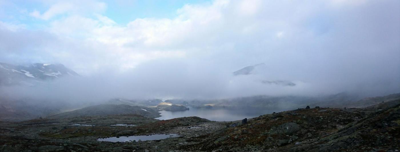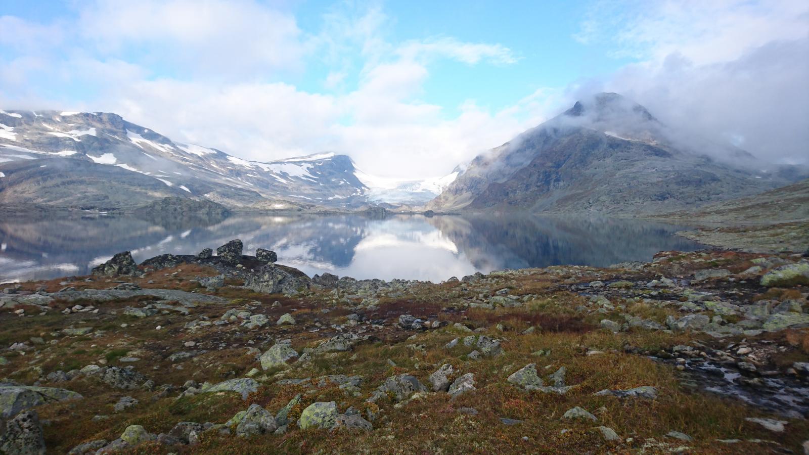Dro opp til fondsbu på fredag. Aldri vært på de kantene så tok det mest som en liten rekognoserings tur. Hadde en plan om og gå inn til olavsbu på lørdag og ligge der til søndag. Fin tur innover mot store mjølkedalsvatnet , 400høydemeter til frokost, ikke noe gratis der.. Lufta var bløt.. Skyene la lavt.. Gikk inn til stidelet mot olavsbu, før jeg snudde. Det var ikke meldt noe mindre tåke i dag.. Og Kåle rundt i steinrøysa der, med tåka på bakken frista lite.. Ikke noe særlig markert sti, og varding som ikke var dårlig sikt vennlig.. Så da får en ha det til gode:) MEN, Fikk et solgløtt i det jeg kom opp på ryggen som holder store mjølkedalsvatnet på plass, og det utsynet mot mjølkedalsbreen kommer langt opp på lista:) det varte ikke lenge.. De to avlange bildene er det 4 minutter mellom.. Det ser ut som, på instagram, at det var mye klarere vær lengre nordøst i Jotunheimen i helga..1 poeng