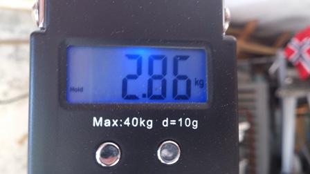 2,15 kg. Litt mer med ekstra stang. Ida og Bente på Helsport gjør alltid en fabelaktig jobb når det kommer til Service og modifikasjoner!2 poeng