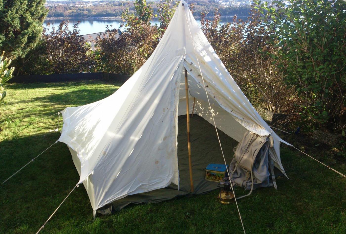 Tidlig på 1950 tallet skulle min far, min mor og min storebror på sykkeltur til Danmark, og den gang gikk mann ikke bare inn på nettet og kjøpte et Hilleberg eller et Helsport telt i passe størrelse. Nei, løsningen ble at min far, som var ganske flink til det meste, målte, tegnet og klippet mens min mor, som var en kløpper på symaskin, sydde. Resultatet ble et telt, akkurat passe stort til to og en halv person pluss bagasje og akkurat passe tungt til å fraktes på en sykkel. Tidens tann har nok satt sine tydelige merker på teltet, men det var dette teltet vi brukte da jeg var barn på 1960 tallet, hjemme i hagen, gjennom hele sommeren. For det var jo alltid strålende sol og ikke regn om sommeren den gang. Jeg har ikke hatt hjerte til å kaste dette teltet og kanskje det ville være mulig å fikse det opp litt og kanskje bruke det av og til når anledningen byr seg.1 poeng