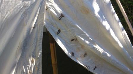 Teltet hadde nok ikke kommet særlig godt ut i konkurranse med dagens telt hvis det ble snakk om vanntetthet og stormsikkerhet, men det veier faktisk ikke mer enn ca. 3 kg. Dette var nok ganske revolusjonerende i forhold til standard vekt på telt den gang. Glidelås var heller ikke vanlig den gang så det ble dobbel knepping med kroker. Teltet ble veiet til 2.86 kg, men da er ikke de gamle trepluggene tatt med. De er forsvunnet for lenge siden, kanskje jeg skulle lage noen nye.1 poeng