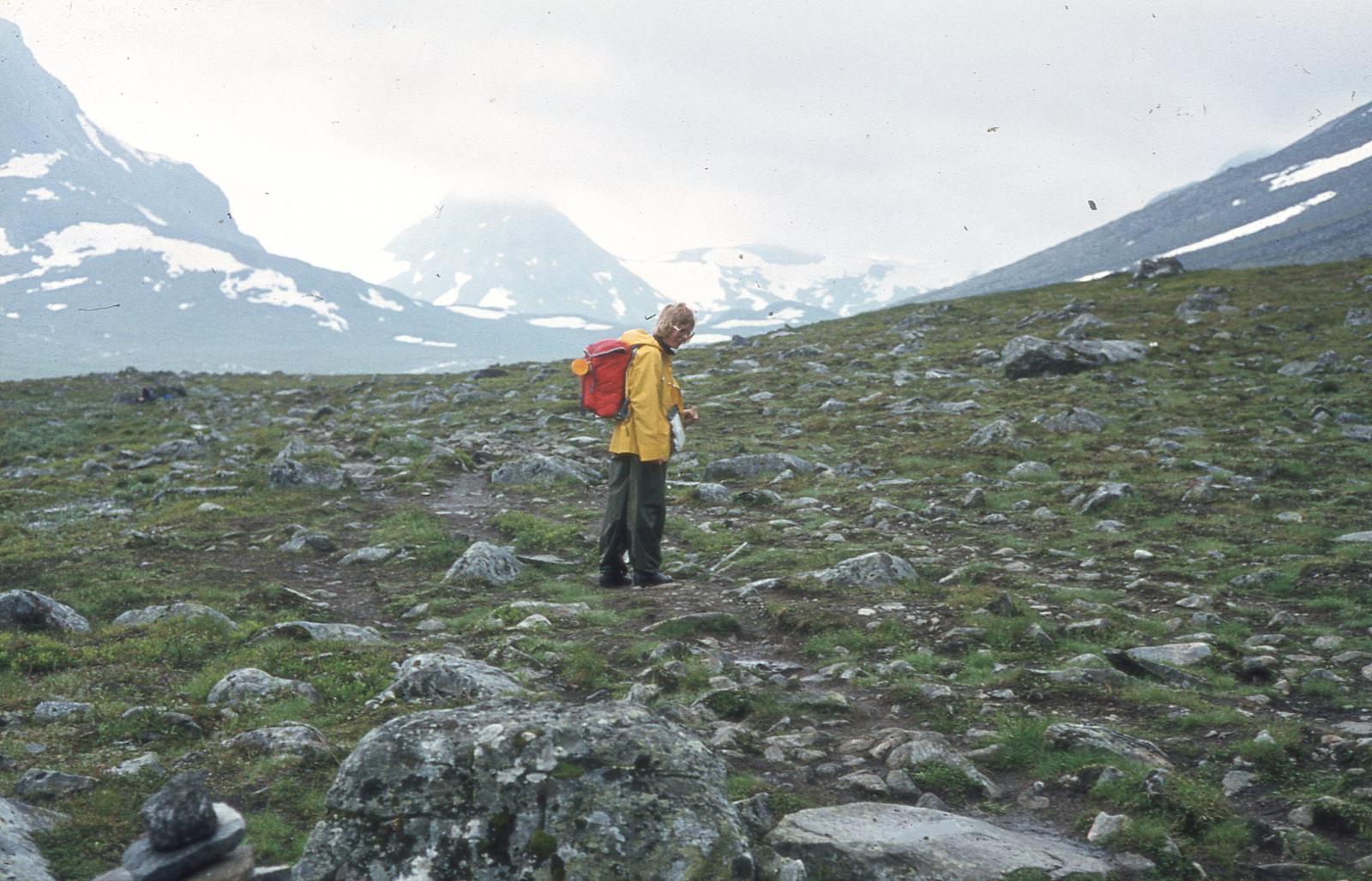 I en fjern fortid, så lenge siden at mye er glemt, var bestyrerinnen, Arild og jeg på fjelltur i Jotunheimen. Turen gikk fra (Gjendesheim) Memurubu til Glitterheim videre til Spiterstulen, og sist – Leirvassbu. Helt ordinært, og med både bra og dårlig vær. Vi så reinsdyr ved Russvann, og var temmelig alene mellom Spiterstulen og Leirvassbu, i sludd og regn. Midt i juli, så vidt jeg husker. Sekkene vi hadde var Bergans 40-50 liter med ramme. En stor forbedring frem for de gamle sekkene med A-meis. Regntøy og nikkers var den gang det vanlige. Skotøyet kan jeg ikke huske hva var, men mener det var noen billige greier… Uansett en fin tur. (Grunn til minnene er at jeg skanner gamle bilder, og det dukket opp bilder fra turen. Og muligens har andre også interesse av å se bilder fra en tur som gikk for 45 år siden.)1 poeng