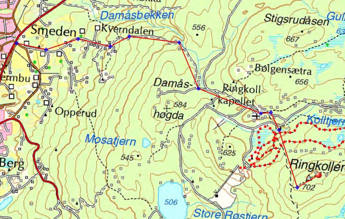 Jeg liker denne tråden. Perfekt for meg som sjeldent går noe mer enn dagsturer I dag gikk vi denne turen, nydelig vær og som alltid så møter man aldri noen med en gang man går av grusveien og inn på sti! Siden kartet mitt ikke har hørt om stedsnavn så slenger jeg på litt! Starta fra Stryken og igjennom det jeg *tror* heter Rødputtdalen, så gikk vi ned Djupdalen og rundt Nordre Djupdalstjern. Forlot grusveien og inn på skogsti midt i mellom Lille daltjuven og Mantjernet. Her kosa jeg meg med halve kvikklunsjen min før vi gikk videre nedover. Forbi Håndkleputten og opp til noen hytter. Her svingte vi mot øst, i retning Skillingen. Midt inni her et sted var det så fin utsikt at jeg måtte stoppe for å spise resten av sjokoladen min. Snublet (bokstavelig talt) ut på grusveien og trasket på den de siste to kilometrene. hjemover. Nøtteliten gjør seg klar for vinteren: Håndkleputt hytta: Og er man gærn hundedame, så ER man gærn hundedame. Gutten nyter utsikten: Utsikt til Harestua:1 poeng