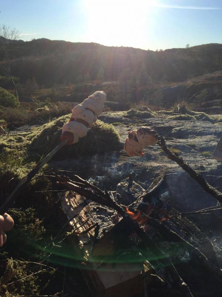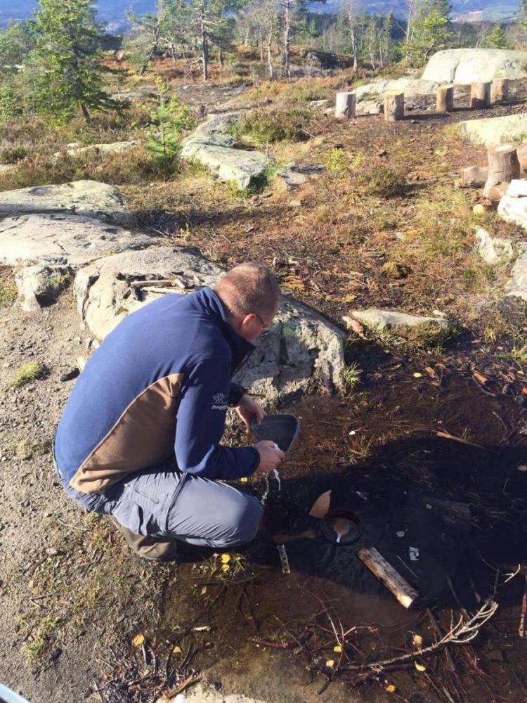Sjefen inviterte til tur på Lyderhorn før lunsj i dag, og vi var 10-11 kolleger som fikk oss en tur i virkelig flott vær På turen nedover greide jeg å lande forkjært så en ankel ble sur, og i tillegg rive et hudflak fra en finger - er blitt alt for uvant med å gå i flokk, antar jeg Utpå kvelden kjentes ankelen mye bedre ut, og jeg fant ut at jeg skulle ta en forsiktig test av ankelen og "reparere" turdagen litt, så den endte bra. Ble en rolig tur opp Holefjellet ikke lenge før solnedgang, og nær toppen ble det første bålfyring i "Piratebug"-en siden i vår en gang Bak kjelen er Lyderhorn og en nedadgående sol, og til høyre er Realposen som ble kveldsmat sammen med en boks IPA. Akkurat da de siste resten av sol forsvant bak Lyderhorn, var jeg god og mett, og hadde pakket og var klar til nedturen igjen. Ankelen var litt surere nedover enn oppover, men tror likevel at dette vil heles fort. En flott turdag, alt i alt1 poeng