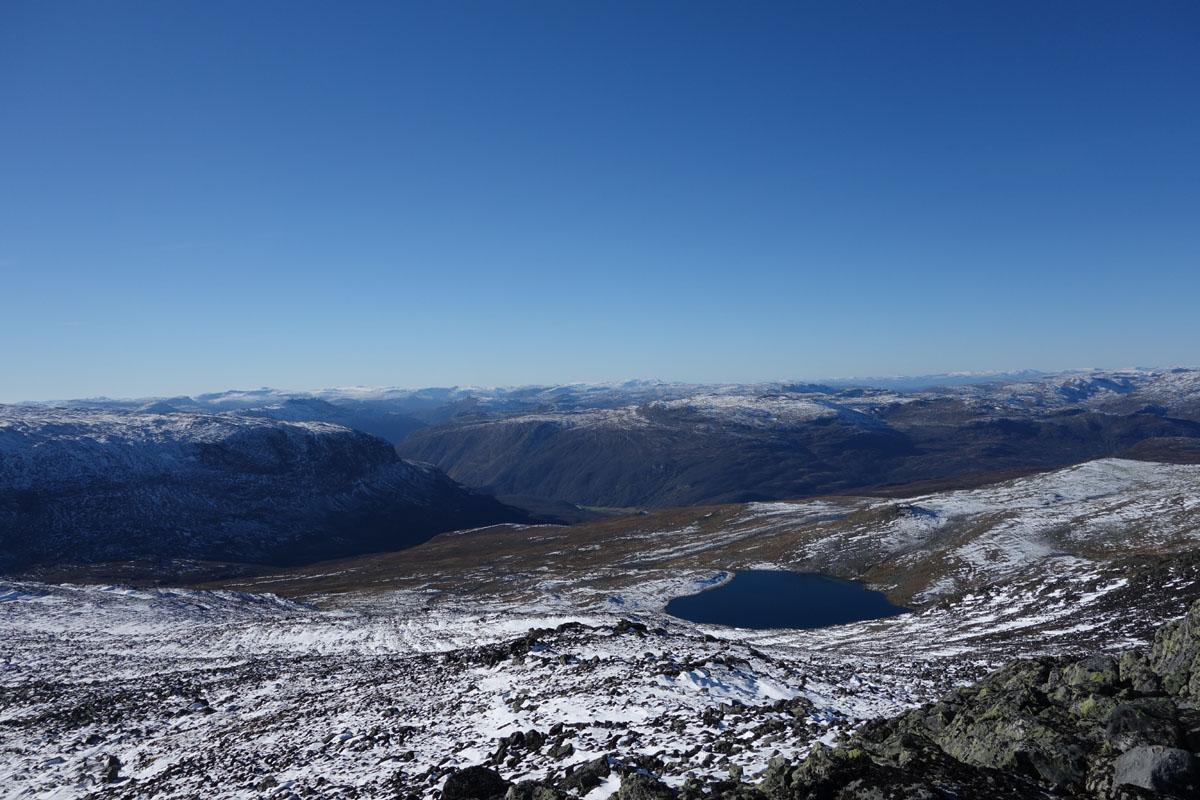 Så, idag blev den av - tur till Sulefjellet strax nordväst om Hemsedal. Skulle ha gjort den förra helgen men ställde in på grund av dåligt väder. Startade i god tid vid Eldrevatn med cykel. Massor av uppförsbacke, men till slut kom jag till sjön i änden på vägen. Satte cyklen där och drog upp till vad jag trodde var toppen. Fin utsikt, men hade den inte varit bättre för höjden lite längre i väst? Klockan var bara halv 1 och jag hade gott om tid, så jag gick vidare. Väl värt besväret, en riktigt fin tur med utsikt ned till östlandet åt ena hållet, långt ut på västlandet åt andra hållet. I princip hela Jotunhemien i norr och Lodalskåpa långt i fjärran i nordväst. Det mesta av jotunheimen från Austabotntind i väst till Mugna och Rassletind i öst. Hurrungane. Lodalskåpa kan skymtas i fjärran. Go west... Sjön där vägen slutar... Eldrevatn på väg tillbaka till min lilla röda bil.1 poeng