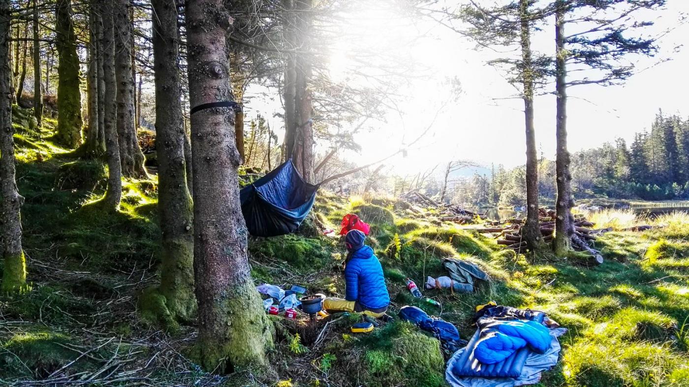 Tok en #nattinaturen på Fløyen i natt. Utrolig deilig å stå opp med solen skinnende midt i fleisen! Turfølget sov i hengekøye. Jeg skulle egenlig sove i solotelt, men hadde visst glemt både stengene og pluggene.... Så da ble det under åpen himmel! Brukte teltduken som bunnduk under madrassen. Tok ikke med speilrefleksen, så kvaliteten er så som så...1 poeng