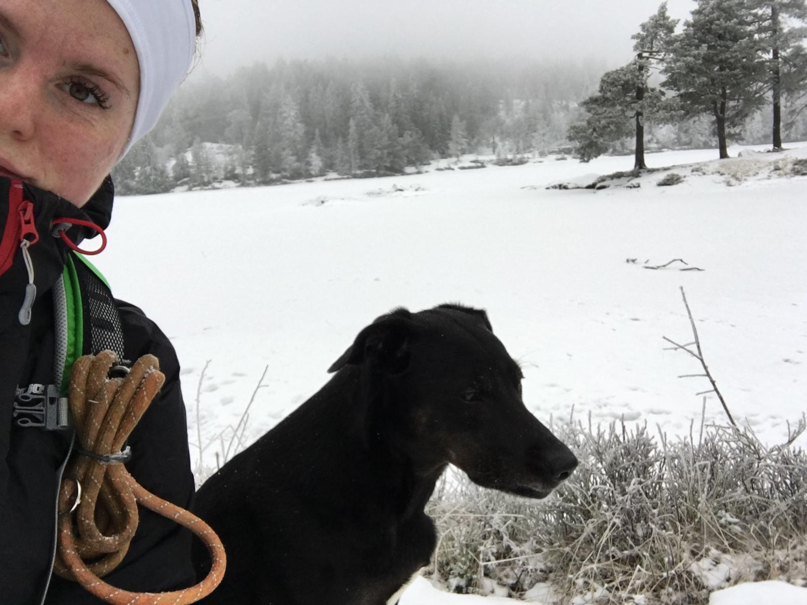 Hunden og jeg parkerte nederst ved bakken i Kongsberg og gikk opp Ollebakkene. Kom til parkeringen ved Funkelia og tenkte meg opp til Knutehytta og videre til Jonsknuten. Men det ble så j....... kjedelig å traske grusveien, at vi snudde, og gikk sikksakk ned bakken igjen og la en god mil bak oss! Det snødde bøttevis og var helt nydelig vakkert ute 😍😍😍 Midtveis i bakkene - helt nydelig om sommeren! ❤❤❤ Ikke alle er like opptatt av å posere, obviously.. Venter i spenning på at jeg skal sparke kongle...11 poeng