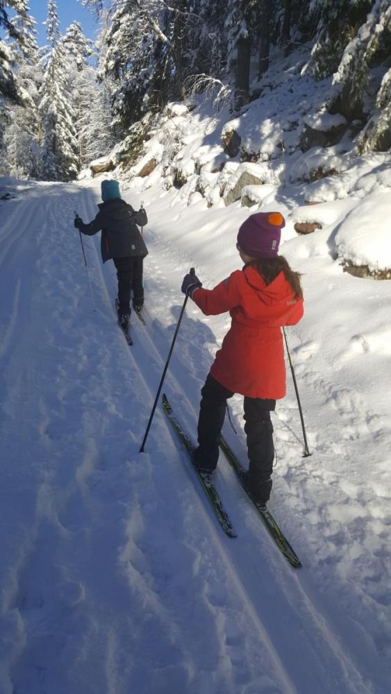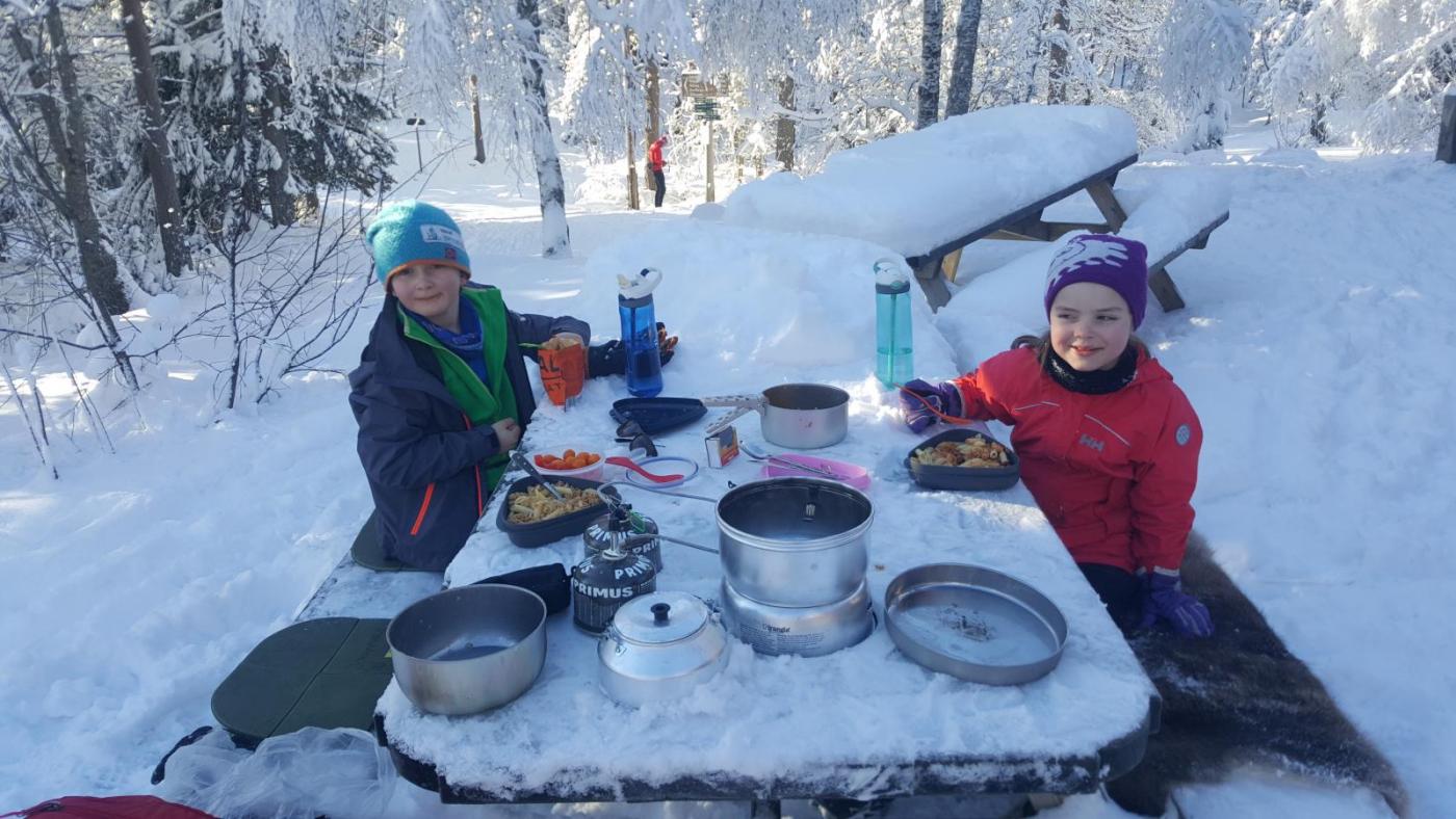 Med barn så må man ofte justere litt på planene ut fra dagsform og i hvilken retning formpila peker. Torsdag var det litt lite futt i prinsessa, og planene for kald overnattingstur over tregrensa denne helga var bekreftet utdaterte når prinsen stod opp fredag med er dyp hoste. Søndag var det likevel så finfint vær at vi måtte bare ta oss en liten tur. 150 m å gå opp til det lokale skianlegget, stolheis opp, videre opp og innover på langrennski, middag, og tilbake og ned alpinbakkene på langrennsski. Fantastisk fint å kunne starte og avslutte slike turer hjemme uten bruk av bil. 😊2 poeng