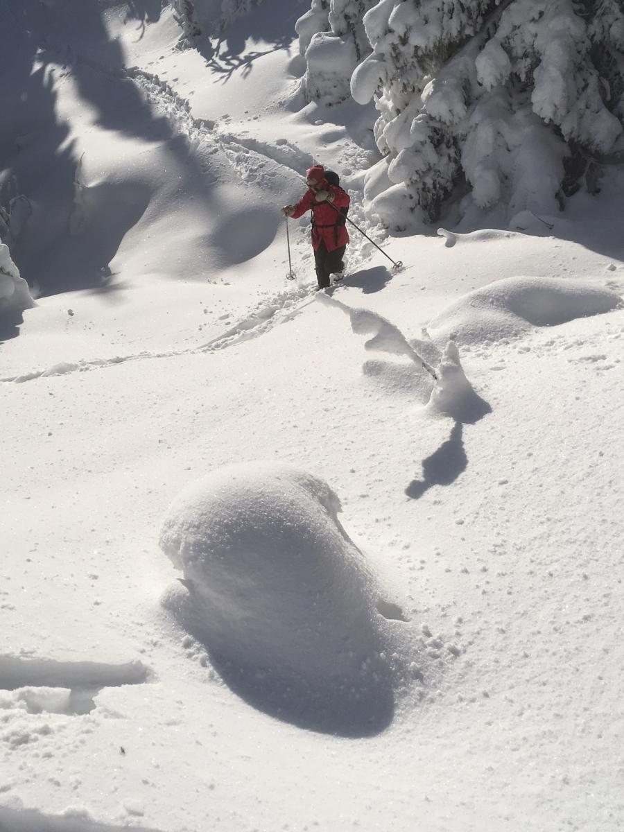 Akkurat på Valle Blanch er det kanskje trygt å følge spor, men er det noe sted i verden du ikke skal stole på at det er trygt å følge spor, så er det i Chamonix. Du aner ikke om han som kjørte der før er verdensmester i frikjøring, om han hadde med seg klatretau for å rappelere ned til sin private pudderspot, eller om han hadde fallskjerm på ryggen. I Chamonix er det litt flere gærninger enn ellers i verden. Ellers vil jeg anbefale guide. Det er for lenge siden jeg var der til at jeg kan anbefale en bestemt guide, men min erfaring er at guide er "dyrt", men likevel verdt pengene. Etter å ha gått i kø opp en fjellside sammen med guiden vår ble vi først litt skuffet når det var oppkjørt der vi skulle ned på baksiden. Så dro guiden ut til siden, og opp en 50 meters bakke, og fant 1000 høydemeter urørt pudder bare 200 meter den totalt oppkjørt fjellsiden. Hvis du har råd til bare én dag med guide ville jeg tatt den tidlig i oppholdet. Guiden vår delte i alle fall villig vekk hvor han mente vi burde dra på egenhånd de neste dagene.3 poeng