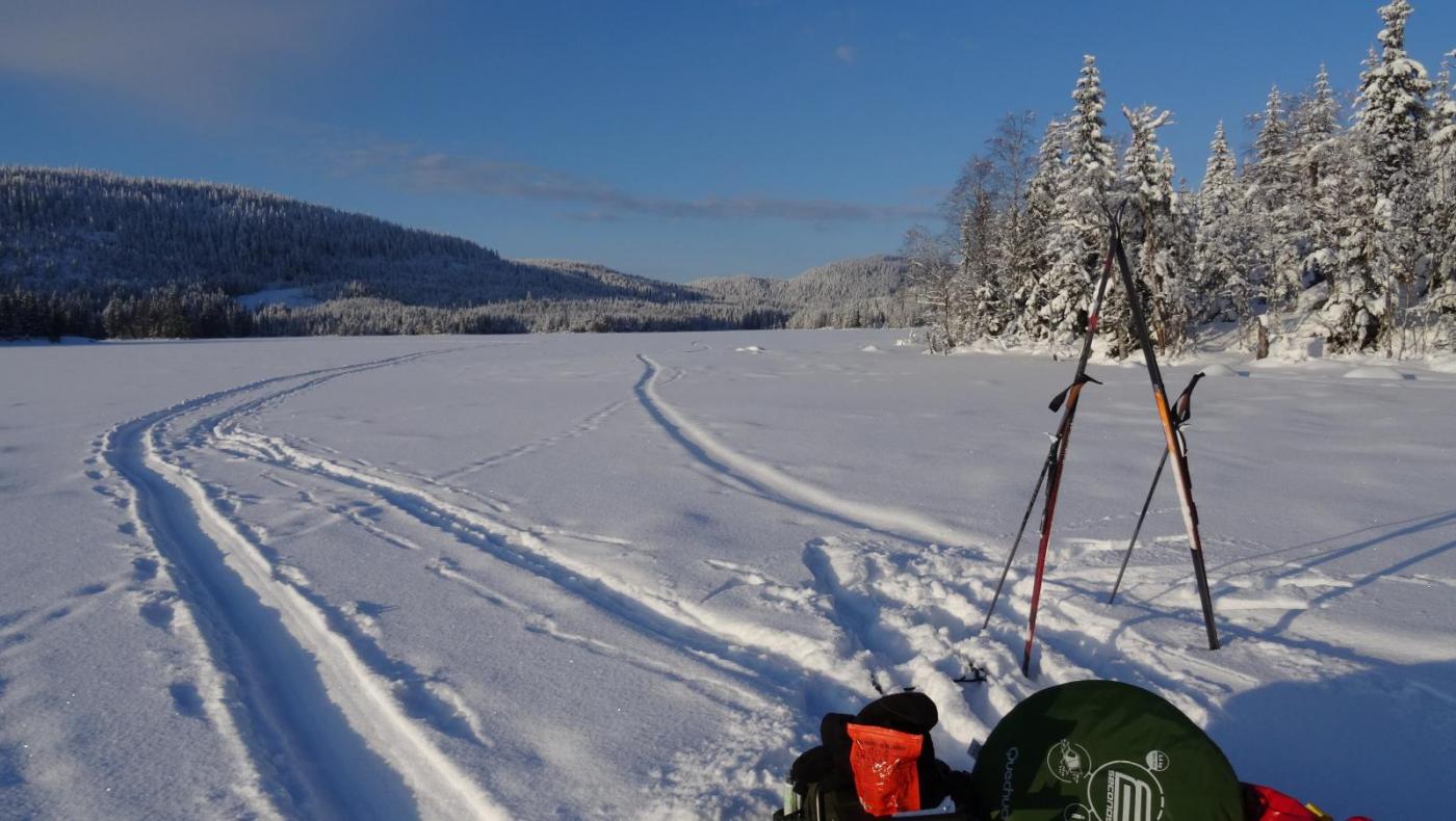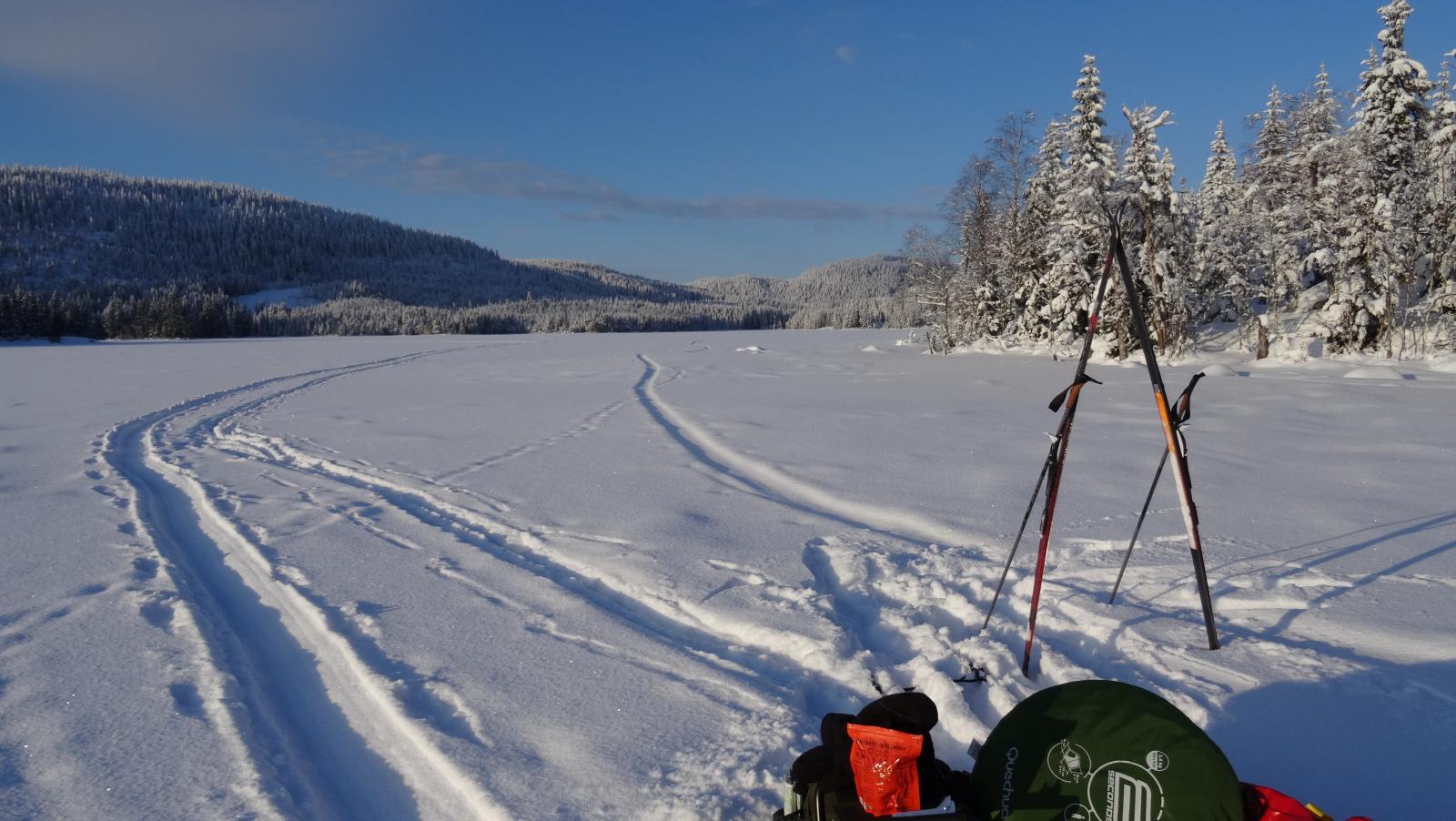 Helgetur med Magnus. 10-12.02.17. Fredag: Slang bilen full av utstyr, møtte Magnus på coopen. Snø i lufta. Kjørte til Esso Jevnaker og opp til Tverrsjøstallen og parkerte. Snødde godt nå. Spenner på oss skia, jeg med pulk og han med sekk. Blitt nesten mørkt så planen er å finne en fin plass enten ved Tverrsjøen eller ved Skarvvatnet om vi finner en vei ned. Ikke kjent i området. Etter en liten bomtur i skauen ender vi opp i skogkanten ved Tverrsjøen. Heldige med plassen og finner god tørr ved. Blir pølser på bålet etter teltene er satt opp og maggoten i hullet. Snøværet gir seg utover kvelden og vi skravler og fisker til sent på natt. Lørdag: Våkner til helt blå himmel i nord og skyer mot sør. Lett snødriv i luften. Sjekker pilkestikkene ! Ingenting på meg, men to ørreter på Magnus på morrakvisten. Sitter å fisker en stund til og jeg får en ørrett og en abbor som begge slipper tilbake ned i mørket. Blir ikke lenge før vi pakker sakene og vender nesen mot Ølja. Skyene i sør har bestemt seg for å slippe litt mer snø, men det gir seg fort. Når vi har kommet til Ølja har været klarnet helt og vi tar en lunsj helt sørøst på Ølja. Fantastisk vær, passe kaldt og ingen vind. Ferske spor i snøen etter elgku med kalv. Trærne står snøtunge og solen får snø til å falle av. Lurer hele tia på om det er ei sinna elgku på vei ut av skogen! Etter en runde oppom Øljehytta for å se setter vi nesa mot Bristol vest for Ølja, en liten tømmerkoie fra 1930-tallet som har vært flyttet flere ganger. Denne koia har svært enkel standard med benker og illsted i midten. Ikke noe mer. Ingen ved på hytta så ut i skogen bærer det. Får samlet en god del tørr ved og fyrer opp. Innser fort at døra ikke kan være lukket. Selv med god fyr og god varme fra bålet fylles hytta med røyk og vi må sitte kroket mens vi varmer oss. Lite hell med fiske, temperaturen har krøpet ned godt under -10 og vi tar tidlig kvelden og satser på bedre fiske på morgenen. Søndag: Fantastisk vær og jeg må si jeg er imponert over hvor mange som er tidlig ute på ski. Ikke vanskelig å forstå for dette må være en av årets flotteste dager i marka så langt. Veldig kaldt i hytta så kommer oss ut og sola gir varme. Drypper av taket og kommer oss ned på isen. Ett eneste napp resulterer i en liten abbor. Har egentlig ikke trua så vi finner skia og staker kursen øst over Ølja, ned myrdraget til Johannes-tjernet. Borrer noen hull, men ikke noe napp. Vi er nok ikke de tolmodigste fiskerne. Koser oss i sola en stund før vaffel på Tverrsjøstallen blir for fristende. "Tar ikke kort?! Krise ! Å, dere tar vipps? Bare å skrive ned navn og nr på en lapp ja" For en fantastisk løsning og må si den vaffelen var helt super! Med vaffel i handa er turen over for denne gang. Takk for turen! Her er noen bilder.22 poeng