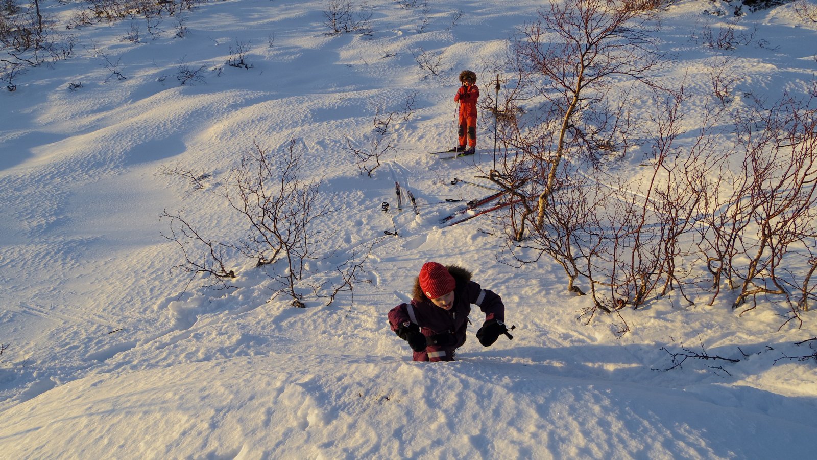 En enkel dagstur med barna i går. Vi skulle egentlig inn Simskardet men oppdaget etterhvert at det var brøytet inn til sommerparkeringen. Stor skislitasje om vi skulle gått der, så vi måtte snu.. Alternativet ble fjellområdet ved Kvannlia, Bæråsen. Stormen Ylva har vært steinhard her inne, og kommet fra en veldig spesiell vindretning, Øst eller kanskje Sør Øst. Mye nedfallstrær etter veiene og veien har av forståeige grunner vært stengt i lang tid. Dette har også gjort at den halvmeteren med snø som lå så fint overalt er blåst bort fra fjellskråningerne. Litt skigåing, soling, bål, og bålslukking med granbar, aking og kakaodrikking gjorde denne stille ettermiddagen til en kontrast fra de voldsomme kreftene som har vært i sving her inne for en dag siden..2 poeng