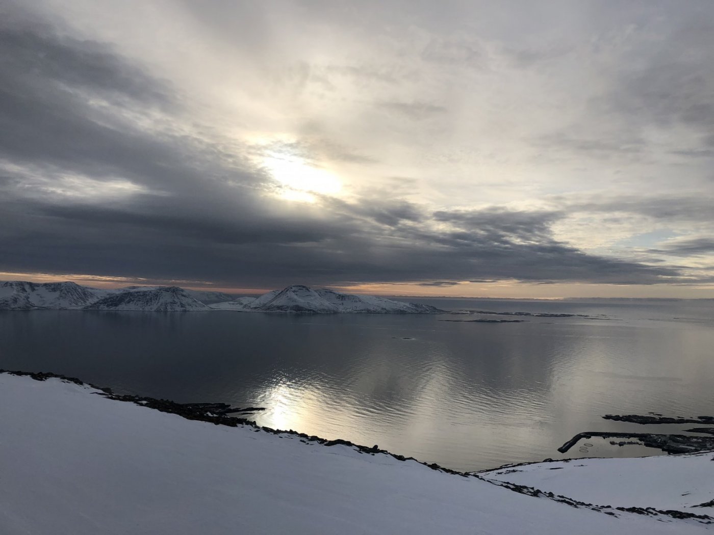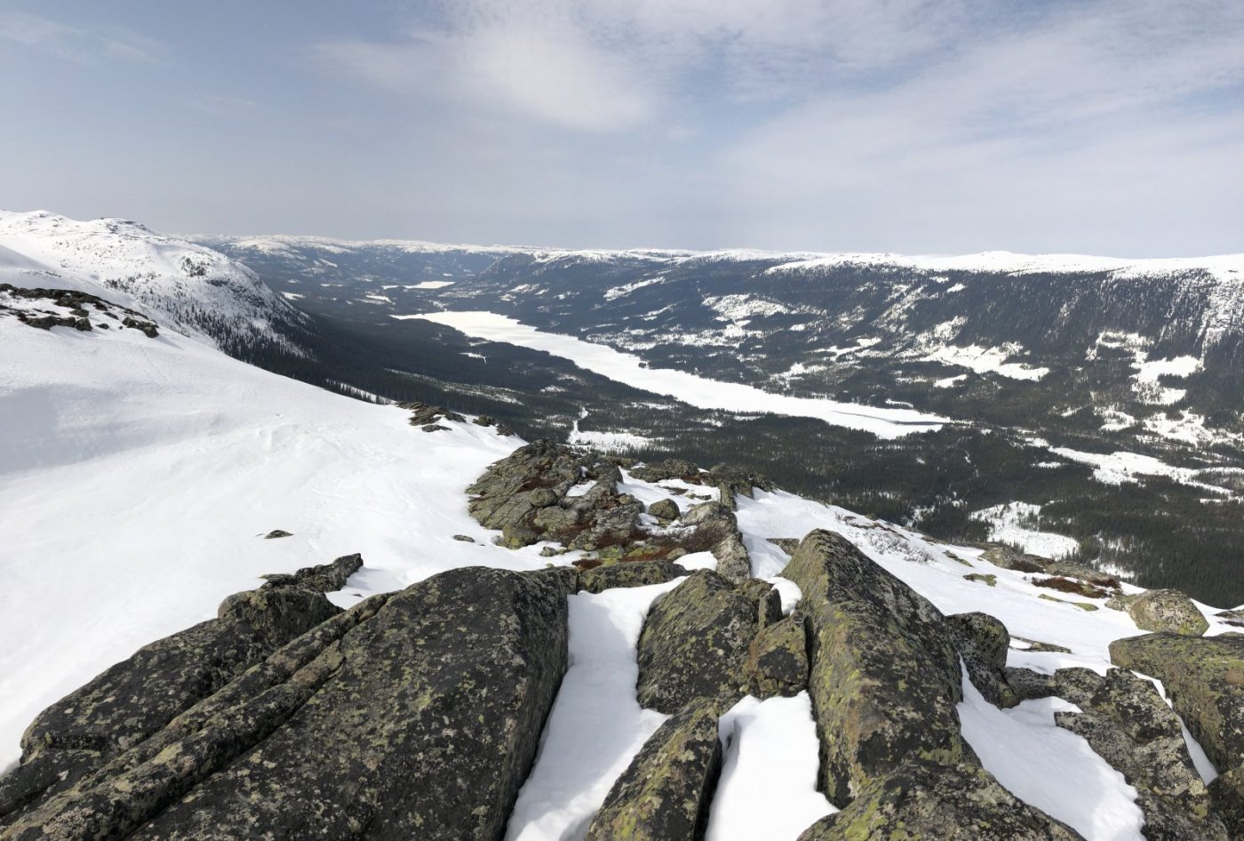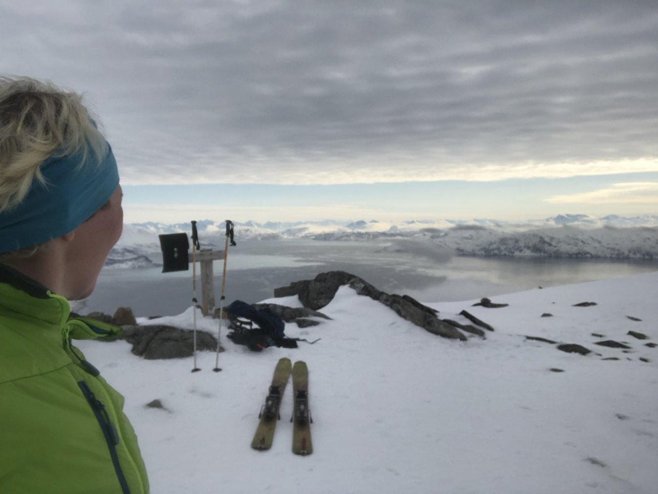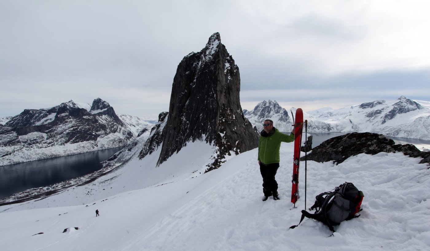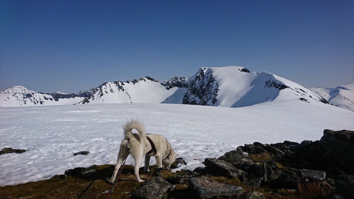 Strevsom tur opp på Golvertinden 1682 med @graham 32 km - 14 timer - 1400 høydemeter. Maks av hva jeg klarer akkurat nå men det er håp. Golvertinden er den toppen som gir desidert best utsikt over Helgeland og nordover. tungt føre men fint vær gikk turen fra simskardet. Nå er vi akkurat kommet ned. Graham hadde teknologi i orden, nemlig hodelykt så vi fant rett vei på slutten. pause.. På toppen. Ego med utsikt nordover mot På vei ned - mye is2 poeng