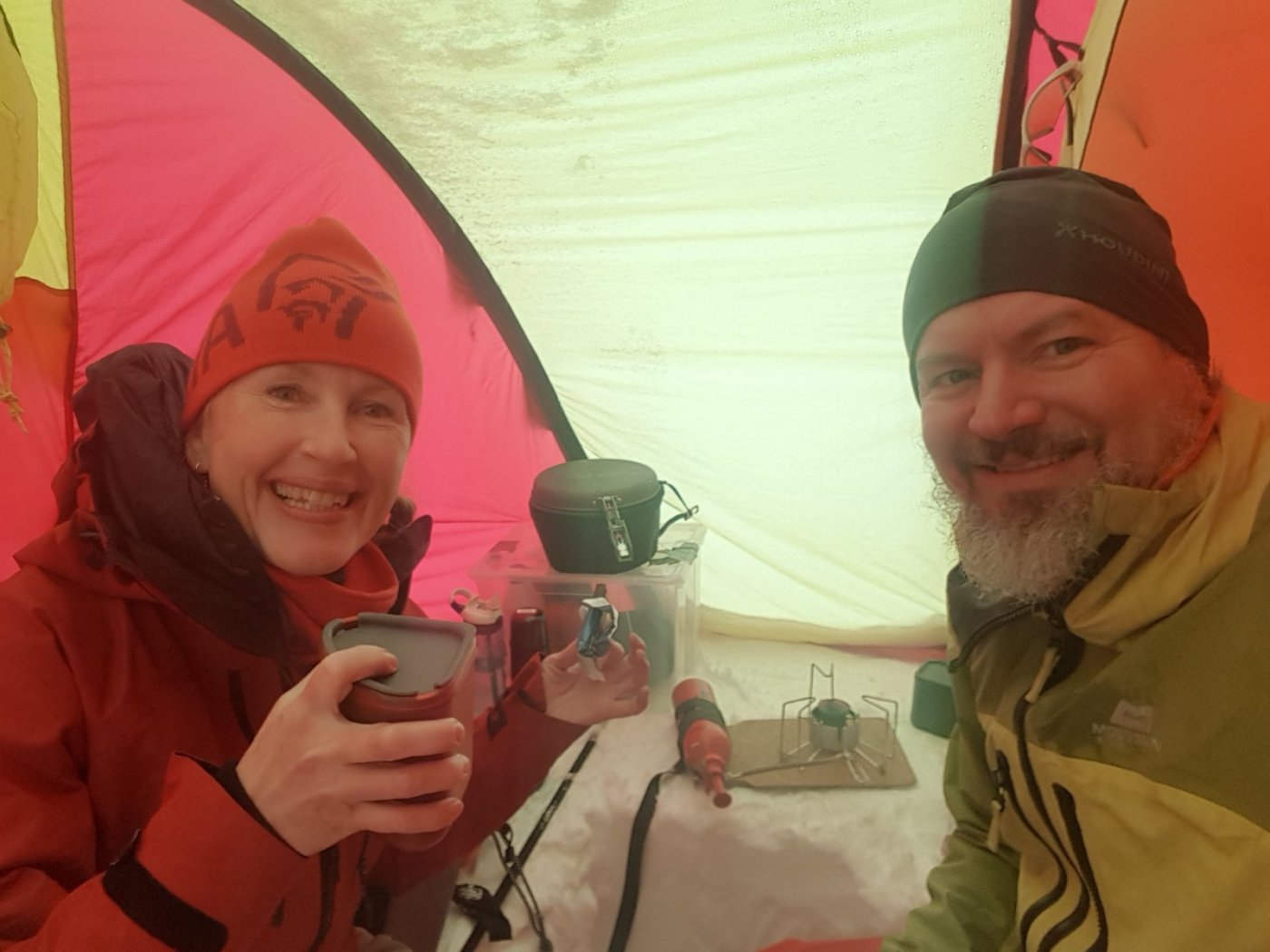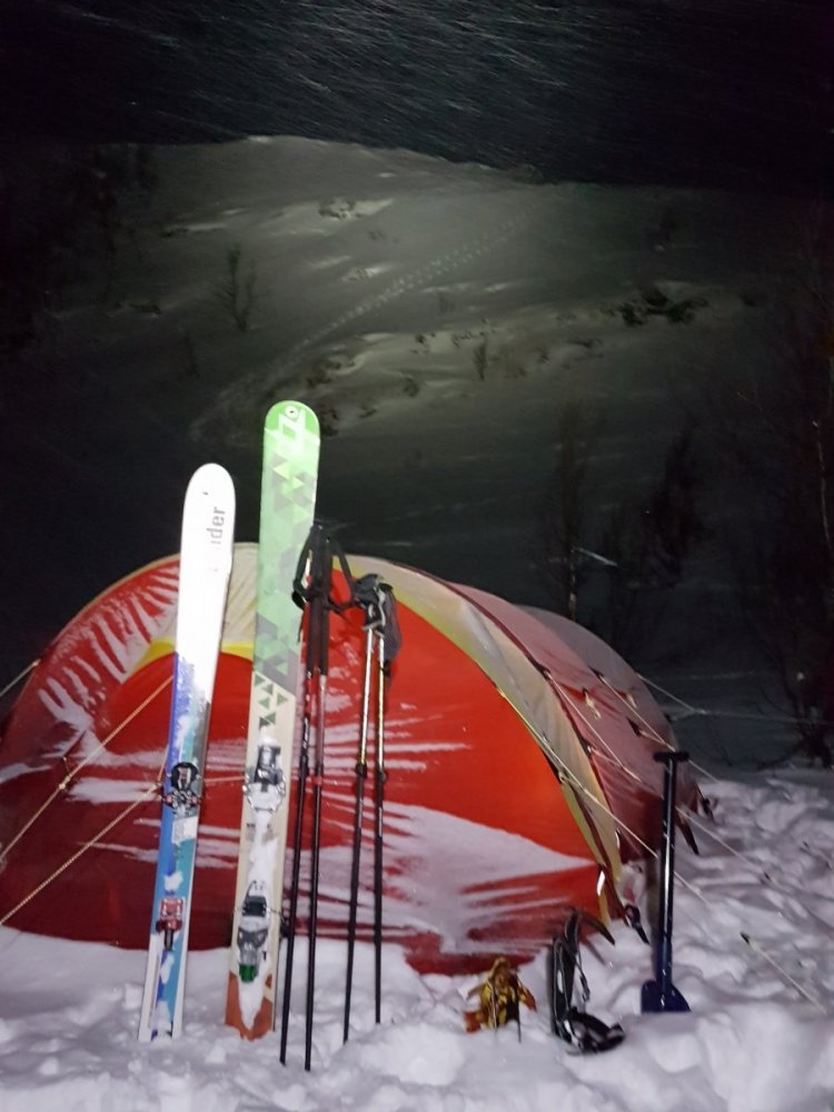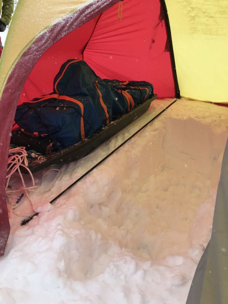 Jeg ble også ganske letta over den kommentaren @Espen Ørud Vet ikke helt om det finnes noe bilde av innsiden av mitt Spitsbergen på påsketur men det var veldig langt unna det der. Men det er helt genialt å kunne kjøre pulkene inn i hvert sitt fortelt som @Terka viste til. Eller bare ha bagasjen i et fortelt og ha det store til et stort kjøkken/samleområde. Det er et utstyrsloft som følger med på Spitsbergen. Det er plass til to. Jeg har tatt en snor på kryss og tvers på den andre delen så har jeg et nettingloft og en tørkesnor.1 poeng