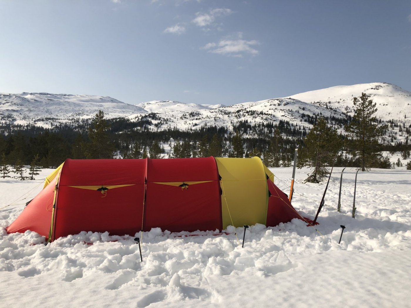 Jeg har kun hatt 3, så kan jo hende 5 gir en helt annen følelse. Men jeg mistenker at det har noe med konseptet "kuppel" å gjøre (og jeg har kuppeltelt som sommertelt så det pleier ikke plage meg) men på vinter gjorde det, det altså. Jeg bytta ut med et Svea 3 og har ikke brukt det noe særlig enda, men prøveoppsett og førsteinntrykk var det samme der. Langt bedre romfølelse i Svea (også mye enklere å feste innertelt med rette vegger når det er slått opp, slipper å krabbe på magen i snøen for å feste spennene, jaja .. jeg vet man kan jobbe rundt det med pulkpose eller sette det sammen hjemme før tur ...) Nå er forsåvidt sommerteltet mitt et slikt "sett opp innertelt først" prosjekt så kan hende jeg ikke hadde likt konseptet med skrånende endevegg i sommertelt heller, det er vel antagelig en personlig preferanse. Det var sannelig godt å høre, at det ikke er standarden med så ryddig telt. @Elisabethsk og jeg konkluderte med at vi hadde et helt ekstremt stort forbedringspotensial, men da kan vi kanskje justere det ned til bare "veldig stort"1 poeng