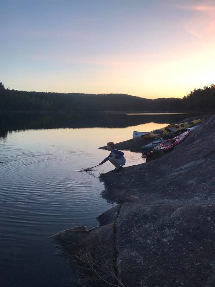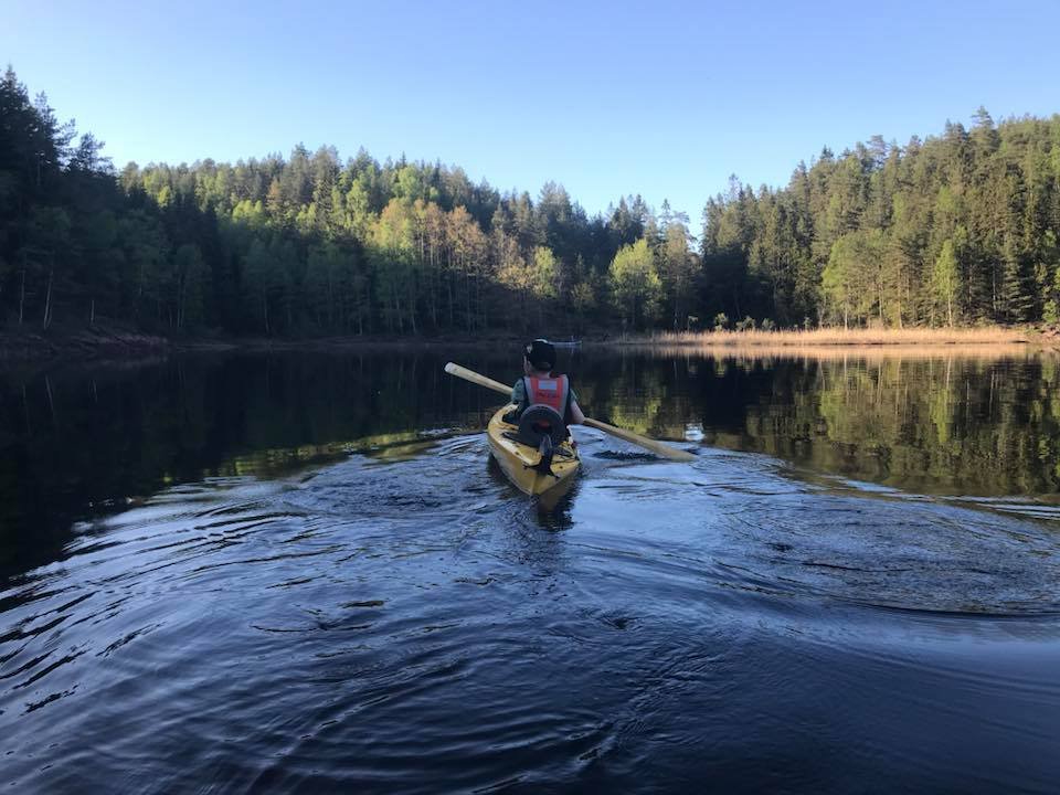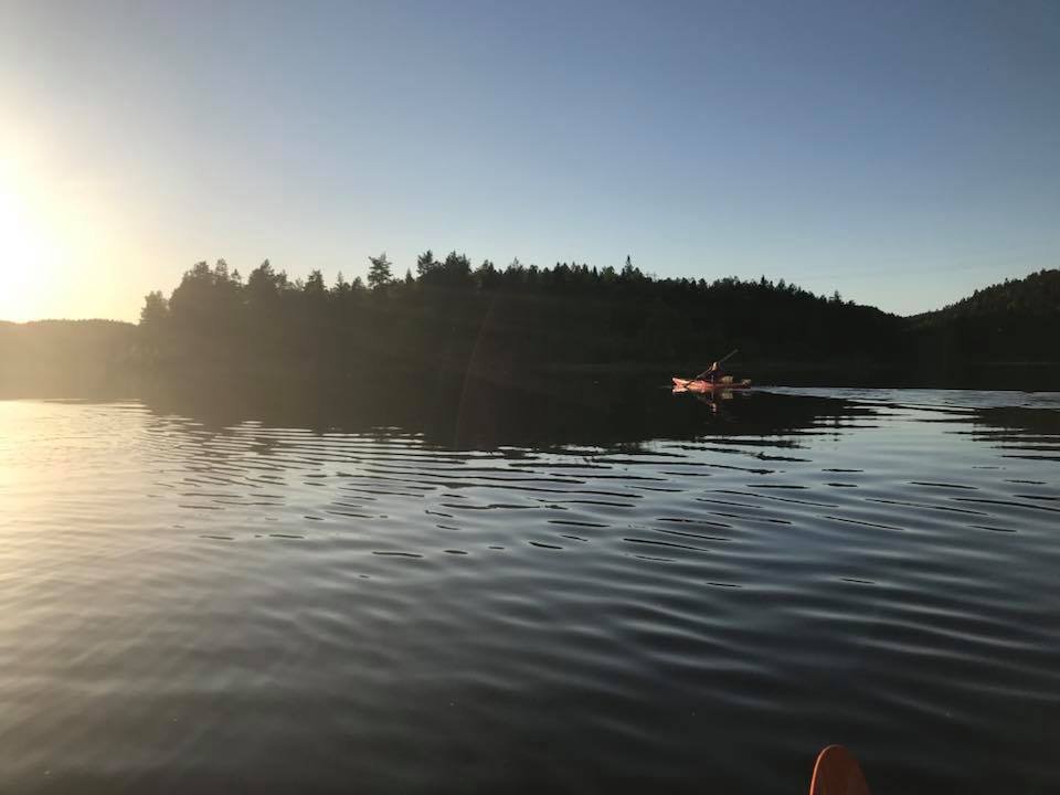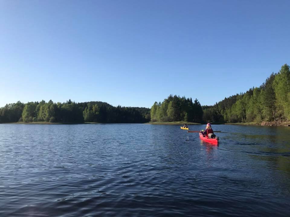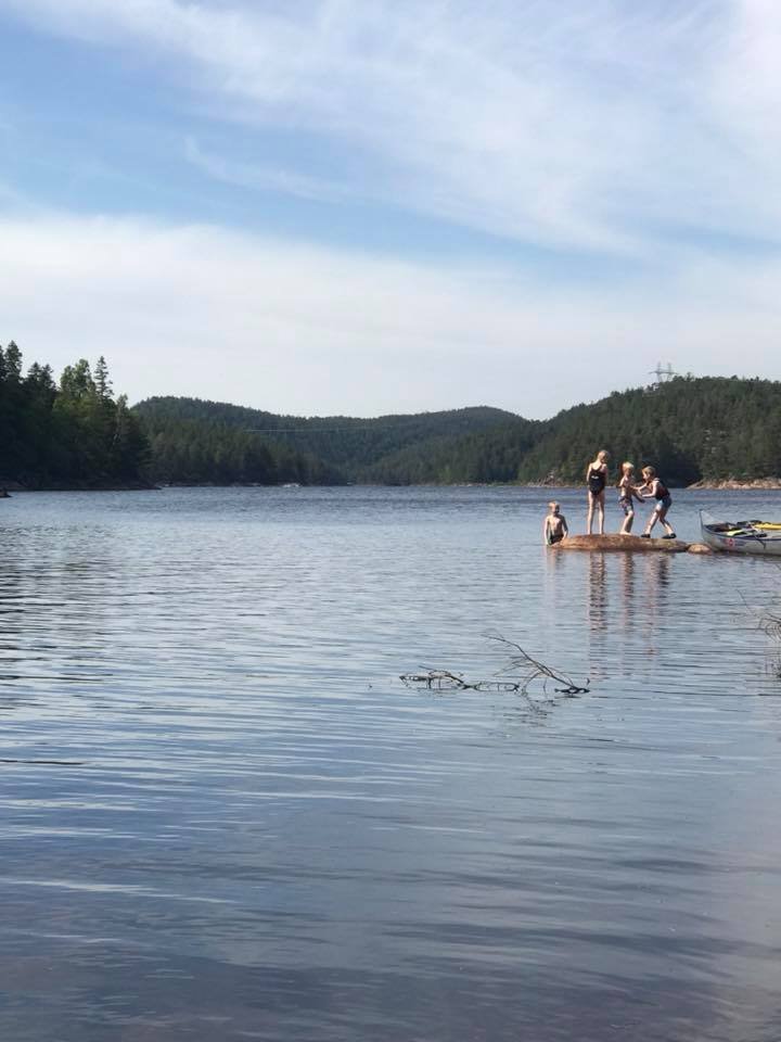 Igjen var det tid for en vårtur til Hurum. Det kan se ut som dette kan bli en koselig tradisjon! Klokken var blitt seks før vi ankom losseplassen ved Røskestadvann. Vi kom oss fort ut på vannet. Jeg skulle egentlig ha med Ulv, men hadde beregnet størrelsen hans dårlig, og han fikk ikke plass oppi min fiskekajakk slik planen min var. Dermed måtte Ulv bli hjemme, bedre lykke neste gang! (Han ble altså hjemme med min bedre halvdel.) Vi padlet rolig men målrettet inn til demningen. Der møtte vi Arild som var på tur alene med sin kano, og som var noe betenkt med tanke på å få med seg kanoen opp til Langvann. Han ble glad for bærehjelp fra oss. Til gjengjeld fikk vi bærehjelp til Elisabeth sin kano, og to øl! Klar for tur! Inn mot demningen mellom Røskestadvann og Langvann Ser ustødig ut, men han har utrolig nok grei kontroll. Oppe på Langvann viser solen seg fra sitt beste og vinden har roet seg. Vi kan padle inn i solnedgangen og kjenne freden senke seg både i natur og sinn. Fremme ved utvalgt leirplass er klokken åtte, og det er bare å kjappe seg og få opp lavvo og telt. Vi finner egnede plasser, men jeg tenker kun på utsikten, og satte den store fine åpningen rett mot sør. Jeg får veldig fin utsikt fra teltet, men de neste to dagene skal det blåse godt fra sør, og lavvoen blåste seg fint opp da vinden tok tak, men det var ikke noe problem. Den sto fjellstøtt. Jeg fikk også erfaring med at det ikke var noe problem å få en lavvo myggtett. Tettet åpningen nede ved bakken med steiner og stokker, og hadde en "hatt" til toppen. Luksus med stor og god plass! Klokken ti har vi fått det meste i orden, og unger kan stappes ned i soveposer og så er det natta. Dagen etter rinner med strålende sol og vindstille. Før alle har våknet, hiver jeg med meg håndkle og klær og finner meg en bortgjemt plass. Av med tøy og uti vannet. Det er ikke så verst temperatur, ca 18 grader kanskje? Jeg tar en liten svømmerunde og tørker meg i solen etterpå. Hvilken etterlengtet stund! Så glad og så fri! Snart blir det frokost i solen på svabergene, og etterpå er vi sosiale. Barna finner hverandre som barn oftest gjør, og vi turmennesker gjør det vi er gode på: skravler! Litt senere byr Elisabeth på pølser og grillmat, nam! Så pakker vi farkostene og padler over til andre siden; der er det vindstille og der vil vi bade. Vi finner flotte badeplasser til å hoppe fra, vi finner paddeegg snurret som flotte spiraler i vannet, og ungene titter, løfter og kjenner. Naturens vidunder. På vei tilbake er det litt vind, men det går fint. Barna får fin trening i å padle med litt motstand, og mammaene får erfaring i å håndtere en kano i vind. Det går lettere når vi er to. Kvelden forløper seg rolig med pizza og tomatsuppe på menyen, og vi koser oss lenge i kveldssola. Barna finner en vindstille flekk i vannkanten ikke langt fra leirplassen, og dermed blir det mer bading. Jeg må bli med og ligge og se på. Huff, for et hardt liv! Så er det natt igjen. På dag nummer to er vi litt tidligere oppe. Denne dagen vil vi utforske Rødvann, som er et vann som ligger enda litt høyere opp, og kanskje gå tur der. Vi padler fint i medvinden og får lagt oss til land, og så rusler vi opp til Rødvann med mat og sekk. Der var det visst ikke så enkelt å gå på tur. Stien gikk ikke der jeg trodde den skulle gå. Istedet finner vi fine benkeplasser på en flyteøy, med klopper ut til plassen. "Vassdragsgutane" står det brennemerket på benkene. Vi koser oss her med god mat og mere utforsking, før vi bestemmer at vi skal padle tilbake til gårsdagens badeplass, og gjenta den deilige badingen der. Som sagt så gjort! Det blåser litt mer over Langvann nå, og de to barna i kajakkene må oppmuntres med tilrop for å komme seg over. Men det går fint. Vips er vi over vannet. Etter en liten hvil i en vik padler vi det lille stykket til badeplassen, og så er det hopp i vannet! Vi returnerer tilbake til leirplassen uten problemer, og så er det pizza og pannekaker til middag. Etter mat vil ungene bade enda en gang, så jeg må til pers igjen! Koser meg med å se på unger som virkelig stortrives, og å knipse flotte bilder. Dagen etter bestemmer vi at vi reiser senest 11, siden vinden skal øke på fra 12 og vi vet at det kan være tungt å padle Langvann i motvind. Vi så senest to pappaer som slet dagen før, med å komme seg innover. Vi bestemmer oss for å være to kanoen og slepe min kajakk etter kanoen. Det går veldig fint, og vi kjører sikkerhet hele veien, padler nærme land og instruerer barna nøye. De kommer litt langt fra oss og plutselig er de for langt fra land. Nye formaninger gies, og ved neste strekke går det nok litt bedre. Vi er snart nede ved Røskestadvann og kan laste og losse for siste gang. Vi takker for turen og alt det hyggelige vi har gjort. Kanskje det blir en ny vårtur neste år?1 poeng