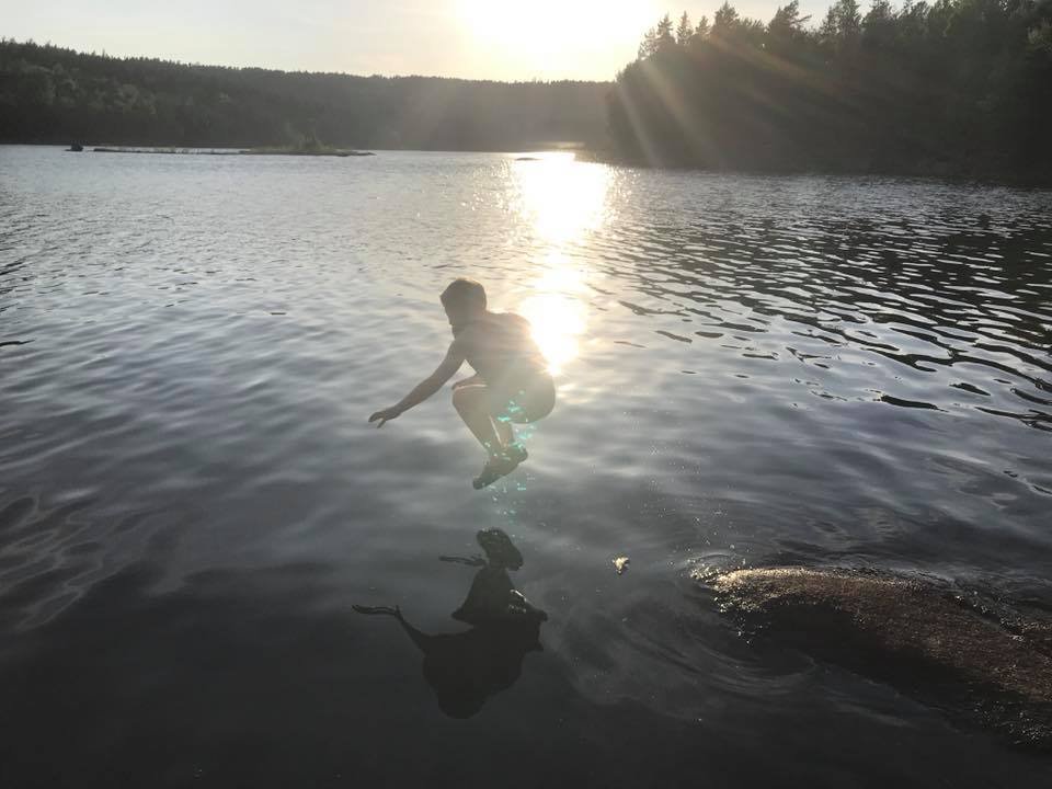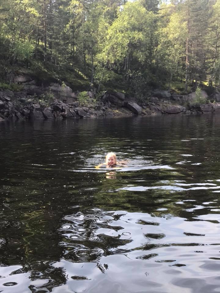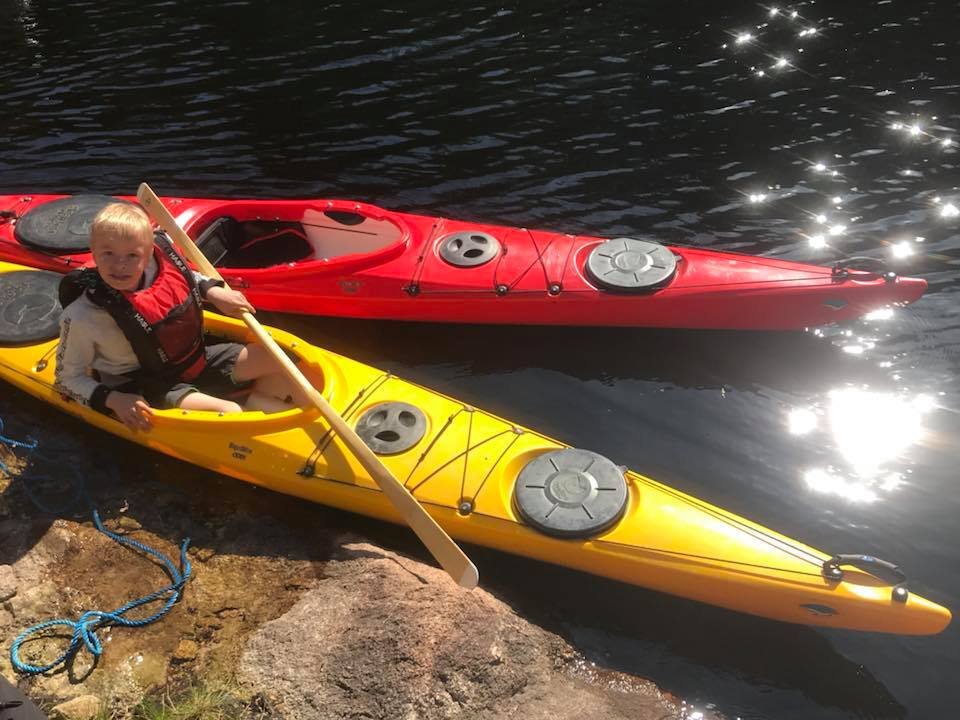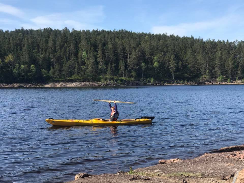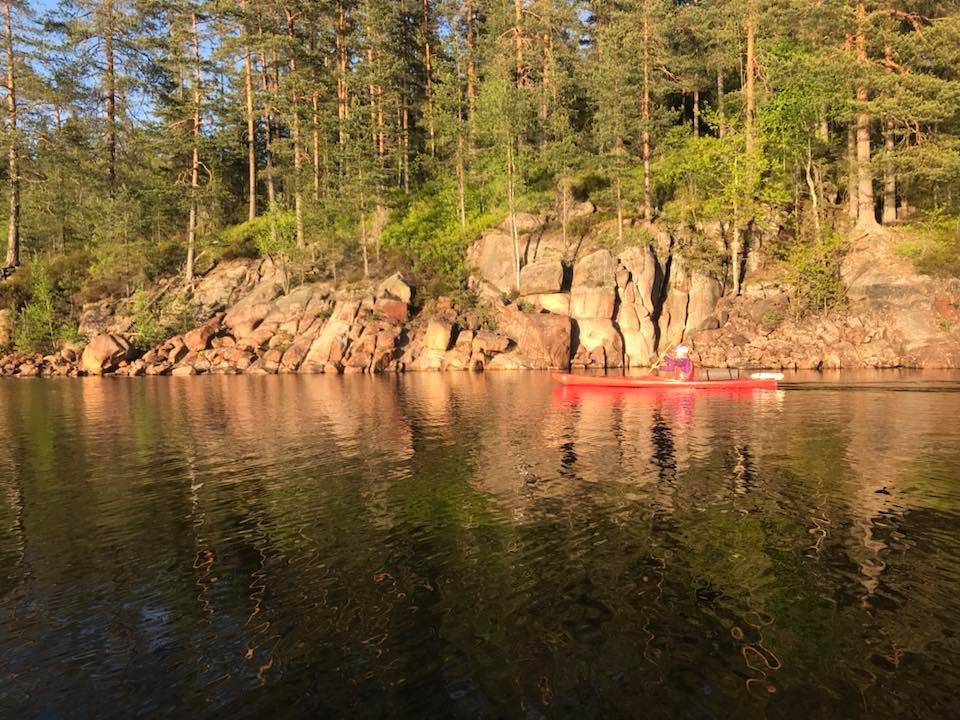 Igjen var det tid for en vårtur til Hurum. Det kan se ut som dette kan bli en koselig tradisjon! Klokken var blitt seks før vi ankom losseplassen ved Røskestadvann. Vi kom oss fort ut på vannet. Jeg skulle egentlig ha med Ulv, men hadde beregnet størrelsen hans dårlig, og han fikk ikke plass oppi min fiskekajakk slik planen min var. Dermed måtte Ulv bli hjemme, bedre lykke neste gang! (Han ble altså hjemme med min bedre halvdel.) Vi padlet rolig men målrettet inn til demningen. Der møtte vi Arild som var på tur alene med sin kano, og som var noe betenkt med tanke på å få med seg kanoen opp til Langvann. Han ble glad for bærehjelp fra oss. Til gjengjeld fikk vi bærehjelp til Elisabeth sin kano, og to øl! Klar for tur! Inn mot demningen mellom Røskestadvann og Langvann Ser ustødig ut, men han har utrolig nok grei kontroll. Oppe på Langvann viser solen seg fra sitt beste og vinden har roet seg. Vi kan padle inn i solnedgangen og kjenne freden senke seg både i natur og sinn. Fremme ved utvalgt leirplass er klokken åtte, og det er bare å kjappe seg og få opp lavvo og telt. Vi finner egnede plasser, men jeg tenker kun på utsikten, og satte den store fine åpningen rett mot sør. Jeg får veldig fin utsikt fra teltet, men de neste to dagene skal det blåse godt fra sør, og lavvoen blåste seg fint opp da vinden tok tak, men det var ikke noe problem. Den sto fjellstøtt. Jeg fikk også erfaring med at det ikke var noe problem å få en lavvo myggtett. Tettet åpningen nede ved bakken med steiner og stokker, og hadde en "hatt" til toppen. Luksus med stor og god plass! Klokken ti har vi fått det meste i orden, og unger kan stappes ned i soveposer og så er det natta. Dagen etter rinner med strålende sol og vindstille. Før alle har våknet, hiver jeg med meg håndkle og klær og finner meg en bortgjemt plass. Av med tøy og uti vannet. Det er ikke så verst temperatur, ca 18 grader kanskje? Jeg tar en liten svømmerunde og tørker meg i solen etterpå. Hvilken etterlengtet stund! Så glad og så fri! Snart blir det frokost i solen på svabergene, og etterpå er vi sosiale. Barna finner hverandre som barn oftest gjør, og vi turmennesker gjør det vi er gode på: skravler! Litt senere byr Elisabeth på pølser og grillmat, nam! Så pakker vi farkostene og padler over til andre siden; der er det vindstille og der vil vi bade. Vi finner flotte badeplasser til å hoppe fra, vi finner paddeegg snurret som flotte spiraler i vannet, og ungene titter, løfter og kjenner. Naturens vidunder. På vei tilbake er det litt vind, men det går fint. Barna får fin trening i å padle med litt motstand, og mammaene får erfaring i å håndtere en kano i vind. Det går lettere når vi er to. Kvelden forløper seg rolig med pizza og tomatsuppe på menyen, og vi koser oss lenge i kveldssola. Barna finner en vindstille flekk i vannkanten ikke langt fra leirplassen, og dermed blir det mer bading. Jeg må bli med og ligge og se på. Huff, for et hardt liv! Så er det natt igjen. På dag nummer to er vi litt tidligere oppe. Denne dagen vil vi utforske Rødvann, som er et vann som ligger enda litt høyere opp, og kanskje gå tur der. Vi padler fint i medvinden og får lagt oss til land, og så rusler vi opp til Rødvann med mat og sekk. Der var det visst ikke så enkelt å gå på tur. Stien gikk ikke der jeg trodde den skulle gå. Istedet finner vi fine benkeplasser på en flyteøy, med klopper ut til plassen. "Vassdragsgutane" står det brennemerket på benkene. Vi koser oss her med god mat og mere utforsking, før vi bestemmer at vi skal padle tilbake til gårsdagens badeplass, og gjenta den deilige badingen der. Som sagt så gjort! Det blåser litt mer over Langvann nå, og de to barna i kajakkene må oppmuntres med tilrop for å komme seg over. Men det går fint. Vips er vi over vannet. Etter en liten hvil i en vik padler vi det lille stykket til badeplassen, og så er det hopp i vannet! Vi returnerer tilbake til leirplassen uten problemer, og så er det pizza og pannekaker til middag. Etter mat vil ungene bade enda en gang, så jeg må til pers igjen! Koser meg med å se på unger som virkelig stortrives, og å knipse flotte bilder. Dagen etter bestemmer vi at vi reiser senest 11, siden vinden skal øke på fra 12 og vi vet at det kan være tungt å padle Langvann i motvind. Vi så senest to pappaer som slet dagen før, med å komme seg innover. Vi bestemmer oss for å være to kanoen og slepe min kajakk etter kanoen. Det går veldig fint, og vi kjører sikkerhet hele veien, padler nærme land og instruerer barna nøye. De kommer litt langt fra oss og plutselig er de for langt fra land. Nye formaninger gies, og ved neste strekke går det nok litt bedre. Vi er snart nede ved Røskestadvann og kan laste og losse for siste gang. Vi takker for turen og alt det hyggelige vi har gjort. Kanskje det blir en ny vårtur neste år?1 poeng