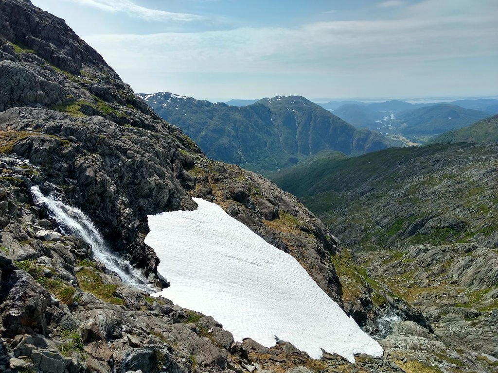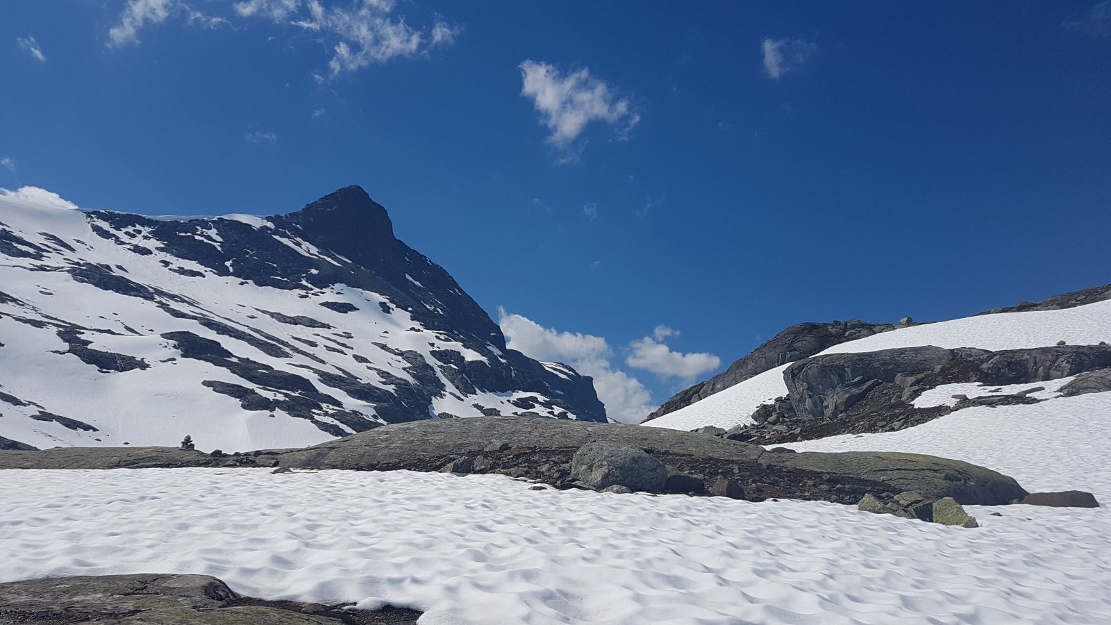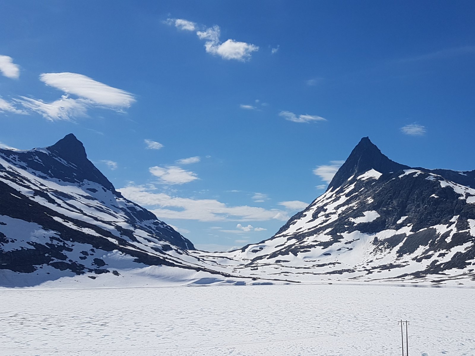 Fylkesvei 252 (Fv252) er veistrekningen som går mellom det tidligere Tyin Hotell og Eidsbugarden ble åpnet for trafikk kl 09.38 på fredag. Og etter å ha hatt i overkant høyt trykk på å jobb siden påske så kjentes det helt riktig å sette kursen hit etter jobb fredag sammen med @Gittiamo. Tyin er inngangsporten til ett av favorittområdene mine i Jotunheimen. Midnatt og et par uker unna sommersolverv 💖 ☉ Vi visste vi var tidlig ute, og med første snøfonn over veien innover Koldedalen allerede før første bru så ble det omtrent 8 km annmarsj inn til (og tilsvarende retur fra) det vanlie startpunktet for turer til Uranostind, Falketind osv. Et tips er å ha med sykkel på denne tiden av året. Undertegnede har lyst til å gå Pionerruta opp til Falketind og pakka litt for det 😁 (Det så ut til at det fortsatt ligger en bra stor og overhengende fonn der man topper ut klyvinga på eggen mellom Falketind og Østre Stølsnostind. Så sammen med elendig grunnform form var argumentene gode for å droppe dette valget og feige ut denne gangen. 🤣) 1001-1002-1003.... Snøen bar greit innover et stykke men utover dagen ble det markant mer råtten snø og gjennomtråkk. Koldedalen og Morka-Koldedalen var som å være i en bakerovn i solsteiken. Snøfonna som man må klyve over ved vann 1921 i Morka-Koldedalen når man går normalveien var stor, hadde et parti med overheng, og flerke sprekker fordelt utover som indikerte at den kunne kalve snart. Dette sammen med varmen gjorde at vi droppa å krysse fonna denne gangen. I stedet gikk vi i trygg avstand og og kikka på snøskred og stein som buldra ned fjellsidene pga varmen. Min egen varde fikk jeg bygget også. 😁 Det var nok i overkant tidlig for å gå Normalveien eller Pionerruta til Falketind slik forholdene var denne gangen (selv om andre nok kanskje ville vurdert det annerledes). Men bare det å være i dette området når det et omtrent folketomt (vi møtte 2 personer langs veien på returen), og å få en slik helg ute når man et sliten etter mye jobbing, var verdt timene i bil. Anbefales! 🌞1 poeng