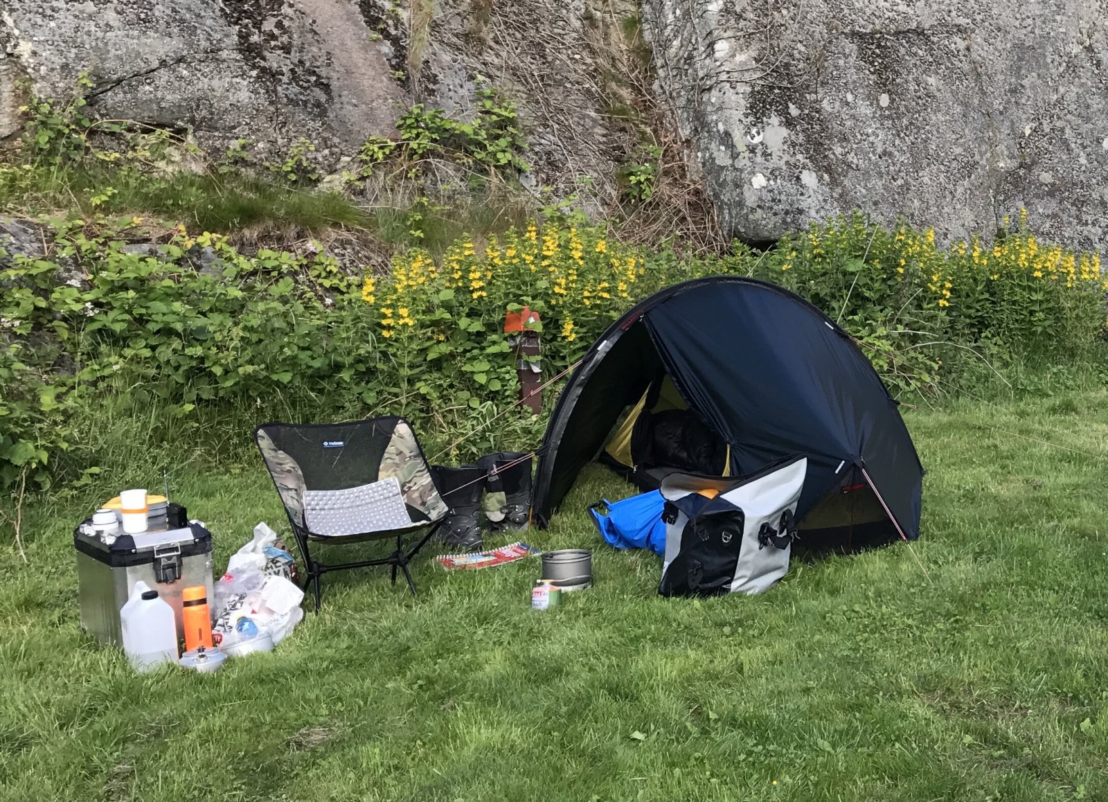 Hadde meg tidligere her en tur i teltet for å prøve fisket litt i ett ukjent vann. Dårlig fiske men det går fint, kjekt på tur fordi! Fikk den nye soveposen så var bare å teste. så litt turbilder.. vått i marken og stort berg så ble det ett lite kosebål kveldstid. nudler til kvelds, godt å sove på noe varmt. Skulle gjerne lastet opp flere bilder men begrenset.1 poeng