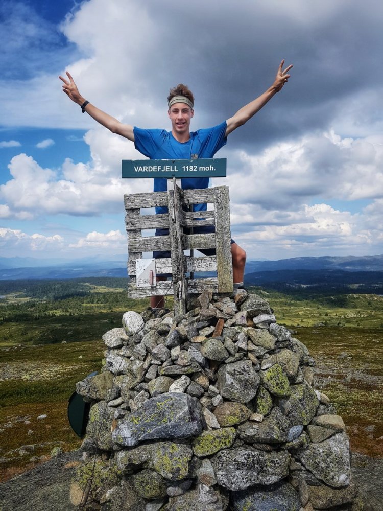Det er ikke særlig lett å skrive et sammendrag av en tur som har vart i 70 dager, altfor mye å velge mellom, men her er noen høydepunkter: I år startet eventyret! Jeg og kompisen min Simon har endelig begynt reisen gjennom Norges villmark. Det å gå Norge på langs er en drøm jeg har hatt lenge. Jeg var 13 år gammel og gikk i syvende klasse på barneskolen da jeg fikk ideen. Jeg planla deler av ruta allerede for tre år siden, jeg ville så inderlig gjennomføre denne ekspedisjonen. Problemet jeg støtet på var bare at jeg ikke fant andre som var like unormale som meg. Ingen ville bli med på en slik lang og ekstremt krevende ekspedisjon. Da jeg tok jegerprøven traff jeg på Simon, en hyggelig fyr som også var interessert i friluftsliv. Vi snakket mye sammen i starten og begynte raskt å dra på turer sammen. Det er egentlig rart at vi ikke har kommet i kontakt med hverandre tidligere da vi bor på samme øy (Tromøya utenfor Arendal) og i tillegg så har vi gått på samme trinn på skolen i 10 år! Under vinteren 2017/2018 spurte jeg han om ikke han tilfeldigvis ville bli med å gå Norge på langs. Uten engang å tenke seg om så svarte han ja, dette hadde han veldig lyst til! Turkompis Simon Simonsen, en skikkelig råtass! I løpet av vinteren 2017/2018 og våren 2018 har jeg og Simon vært på en rekke treningsturer sammen. VI har teltet i -25 grader, jaktet hare i Fyresdal, vært flere dager i Birtedalen og fisket mengder med ørret, Gått med pulk, ski og truger i flere dager uten dekning i Telemarksheiene, i tillegg til en rekke turer i nærområdet hvor vi bor rundt Gjerstadvannet på Tromøya med tung sekk. Alt dette har vært forberedelser til den store prøven. Norge på langs! Etter mange timer med planlegging foran PC-skjermen var endelig det meste klart. I påska startet første etappe som gikk fra Lindesnes til Evje, ca. 100 – 120 effektive kilometer. Da vi startet ekspedisjonen på Lindesnes fyr var det full storm i vindstyrke, men vi trosset været og la av gårde. For å nå frem til Evje før skolen startet måtte vi gå i overkant av 20 kilometer hver dag noe som var veldig (altfor) tøft for kroppen i starten, men ble lettere etter hvert. Samme var det med sekkene, de føltes blytunge de første dagene, men etter ca. dag 4 ble kroppene vant til vekta samt at vi hadde spist opp et halvt tonn med mat;). Vi er ungdommer og spiser som hester, særlig når vi bruker masse energi hver dag! Etter omtrent tre dagers marsj nordover, ble det snø i terrenget noe vi ikke var særlig fornøyde med da vi var rimelig lei av vinteren… Dette gjorde det vanskeligere å finne åpne bekker samt at snøen under teltet gjorde nettene kaldere. Heldigvis var vi ekstremt heldige med været denne påsken, vi hadde blå himmel og sol hver dag! Etter en fin, men slitsom tur fikk vi en veldig brå start på siste dagen. Jeg våknet av at jeg var skikkelig kvalm og kastet opp i forteltet klokken 01.00 på natten! Jeg fikk heldigvis sove igjen frem til klokken 06.00 på morgenen da jeg og Simon bestemte oss for å komme oss av gårde. Det var ikke dekning på flere kilometers avstand! Jeg hadde lite energi så Simon bar det meste av bagasjen. Etter seks kilometer sjekket vi telefonene og fant dekning. Vi ringte hjem og forklarte situasjonen samt avtalte henteplass. Etter noen kilometer med gåing i snøen var vi kommet ned til veien noen få kilometer før Evje. Her møtte pappa oss og kjørte oss de siste meterne til Evje. I slike tilfeller er helse og sikkerhet mye viktigere enn å nå mål! Dette sier noe om hvor fort ting kan skje samt snu, og hvor viktig det er å prioritere rett. Etter påskens etappe tok vi noen uker pause før vi fant ut at vi hadde flere fridager på rad i mai. Både i fridagene rundt kristihimmelfartsdag og 17. Mai dro vi av gårde for å fortsette ekspedisjonen fra der hvor vi slapp. Første dagen fra der vi stoppet i påsken jogget vi 20 kilometer til Evje sentrum i styrtregn! Vi hadde satt bagasjen ifra oss på et lager en bensinstasjon. Dette var en effektiv måte å flytte seg på men kanskje den verste starten på en etappe vi noen gang har hatt. Dagen etter var vi begge støle etter den lange joggeturen dagen før, slik skal ikke en etappe starte igjen. Vi var på denne etappen også utrolig heldige med været, vi hadde oppimot 30 grader hvor eneste dag! På en av de siste dagene fikk Simon noen flotte ørreter som ble kok til et herlig middagsmåltid! Ørret smaker alltid godt samtidig som det er veldig sunt. Etter omtrent 70 effektive kilometer på fire dager ankom vi målet for denne korte etappen som var det lille tettstedet «Dale» rett ved Rjukanfossen i Aust-Agder. Etter noen dager på skolen dro vi opp den 16. Mai for å fortsette ekspedisjonen fra Dale ved Rjukanfossen i Aust-Agder. Dette var en av de finere etappene i hele år. Vi gikk gjennom Årdalen naturreservat som var et vanvittig flott område! Som vanlig hadde vi supert vær hele etappen. Dekningen derimot var dårlig, på det meste gikk vi fem dager uten å dekning på telefonen. Det å passere den mektige Rjukanfossen her i Tovdal var litt av en opplevelse som absolutt kan anbefales! Det er både en fin start på en langtur og et perfekt mål for en dagstur med familie. Andre dagen på etappen var datoen 17. Mai. Vi hadde med oss flagg og feiret mens vi gikk i flott norsk natur. Vi gikk muligens i Norges korteste tog, men til gjengjeld gikk vi over to mil mens vi sang nasjonalsangen med våre vakre stemmer;) På dag 3 av denne etappen var vi faktisk på vei hjemover i en kilometer til vi fikk dekning. Jeg var muligens blitt bitt av flått og hadde fått en ring på låret som tydet på infeksjon. Vi snakket med en lege på toppen av et fjell hvor han fortalte av det gikk helt fint å fortsette etappen. Vi var glade for denne avgjørelsen da været fortsatte å holde seg supert. På dag 5 avsluttet vi etappen med å gå ned til turisthytta Torsdalsbu hvor vi ble hentet med bil.