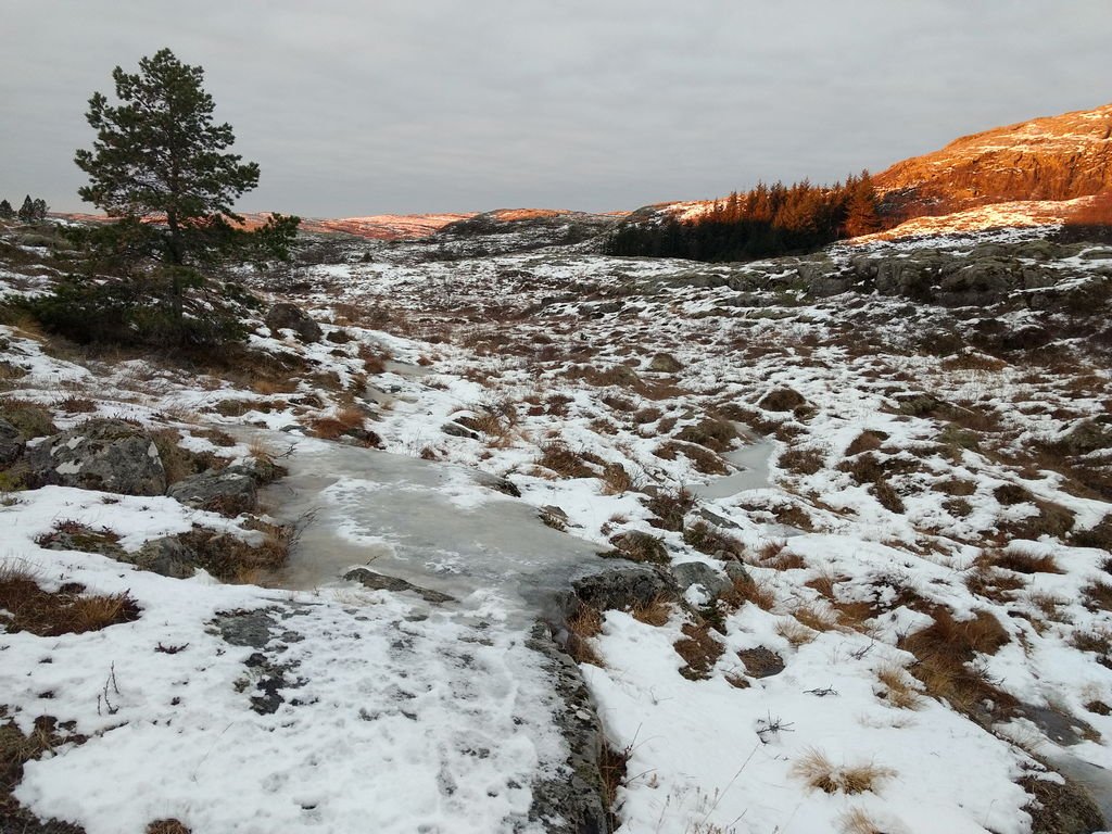 En rask tur utover fra Rørvik til hytta ved Langvatnet i Vikna, nesten blitt en juletradisjon: Det var isete i stien, men jeg gadd ikke stoppe for å ta på broddene som lå i sekken - så dermed falt jeg selvsagt så lang jeg var. Tok derfor en stopp like etterpå, ved "Einarhytta", og satte på noen Grivel-brodder som jeg aldri har prøvd før. Grove saker som funket knall - eneste aberet er at de er litt tunge. Så ble det en tur opp på Vattatua, videre til gapahuken i Bardalen (der jeg skrev meg inn i boken), før ferden gikk videre til hytta ved Langvatnet. Skikkelig flott og tykk is jeg gikk på det siste stykket - det var vel -8°C i natt, og fortsatt rundt -6°C da jeg ankom ved lunsjtider. Fyrte opp i både kjøkkenovnen, og peisovnen på stua, temperaturen kom raskt over på plussiden, og kaffen var nytrukket da jeg satte meg ned for å skrive litt i hytteboken. Der avsluttet jeg skriveriene på samme vis som jeg gjør her: God jul!1 poeng
