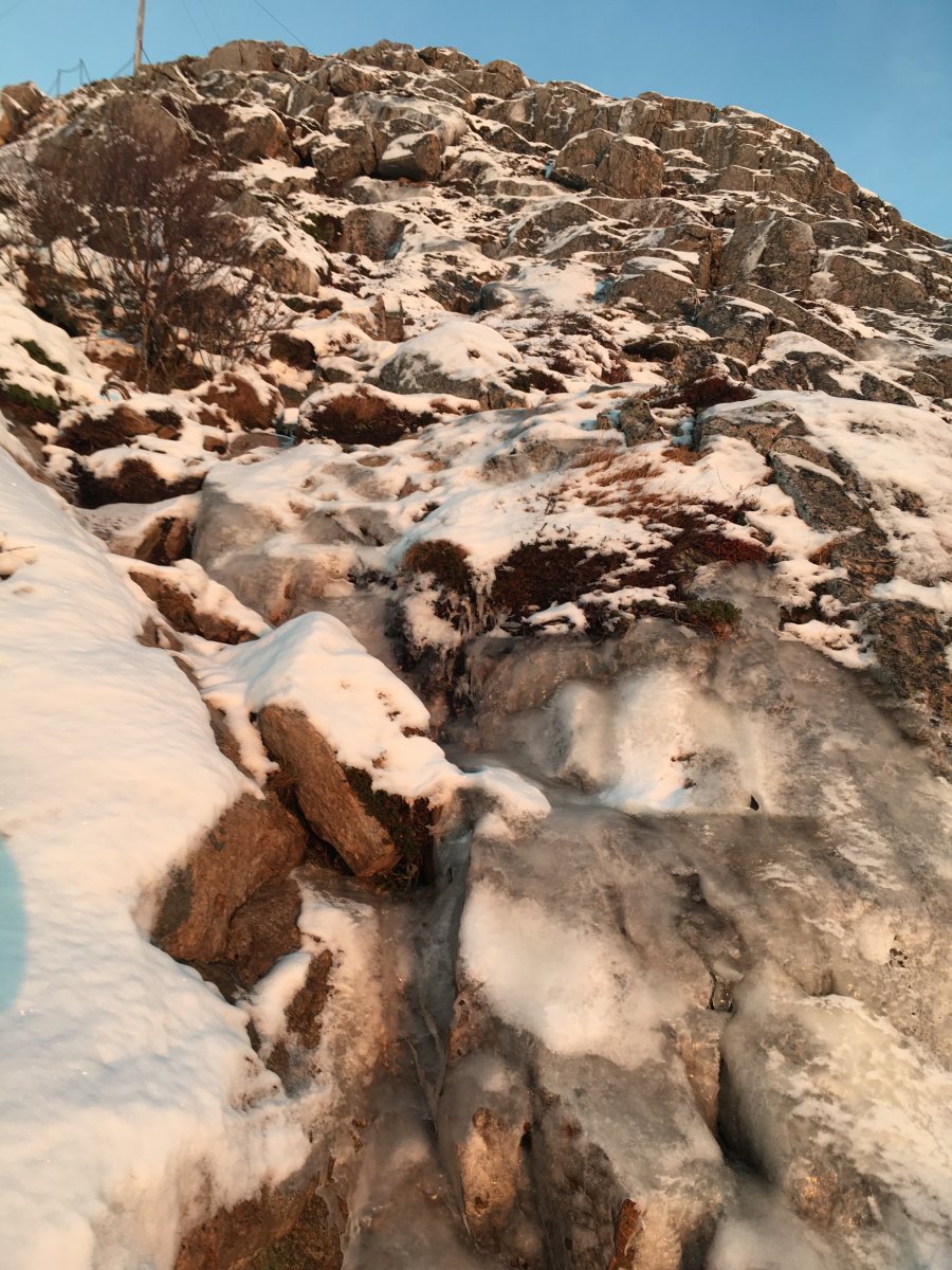 Det har vært et nydelig turvær de siste dagene, og jeg har daglig fått en fin dose med frisk luft. På mandag var jeg på Trælneshatten og skiftet turbok. 567 meter på skrå oppover i snø og is var tungt, men alltid godt når det er gjort. 2800 som har skrevet seg inn i boka her i år. På Tirsdag var jeg på en isdekket Torghatten som den første siden det kom is/snø. Til venstre i dette bildet ser vi fjellet jeg var på dagen før. Til høyre ses Sømnas høyeste fjell Lysingen, som vi vurderer å ta en tur opp på en gang - ikke sant @graham Det er flott utsikt oppover fjellryggen her, men mye is i stien Isen ligger løst over stien/fjellet, så jeg må være svært nøye med hvert et steg oppover her. Jeg er kjent med hver en knaus opover, så det er ikke noe stort problem, men usikker på om det anbefales for alle.1 poeng