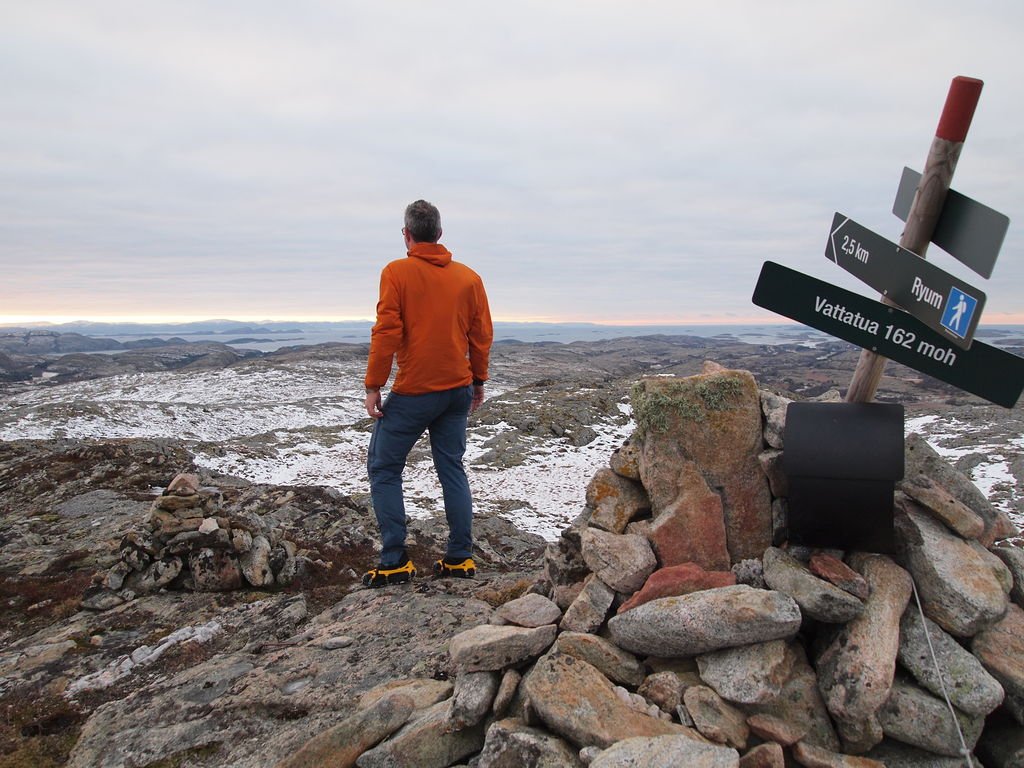 Kjapp tradisjonsrik ribbebrenner-tur til Valøytind ytterst på Ytre Vikna i formiddag: Fikk litt regn idet jeg nådde toppen, og heiv på den lette skalljakka over vindjakken. Da kulingen begynte å piske meg med hagl, tok jeg det som et tegn på at det var tid for å gå ned igjen. Ikke lange turen - jeg så ikke på klokken, men det tok neppe mer enn tre kvarter til sammen. Da er ustadig vær ikke så nøye, og det er uasnett deilig å komme seg ut og lufte vekk litt julematos Og det er min topp nr 10 på RIL Fjelltrimmen 20181 poeng