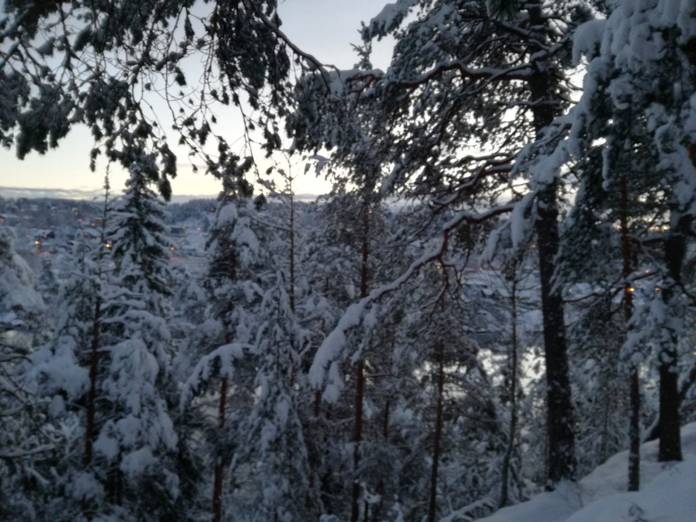 I går var det 2-3 uker siden jeg var på tur, så måtte ha meg en tur. Det ble i Maridalsalpene: fra Vaggestein opp til Mellomkollen, videre til Tømte gård, forbi Tømtehytta og ned til Vaggestein. Rundt tjue centimeter snø, temperatur rundt null, drypping fra trærne. Var ute i tre timer, møtte bare fire personer / to turfølger. Utsikten fra Mellomkollen var kanskje mer imponerende enn selve turen. Fra Mellomkollen, Oslofjorden i det fjerne:1 poeng