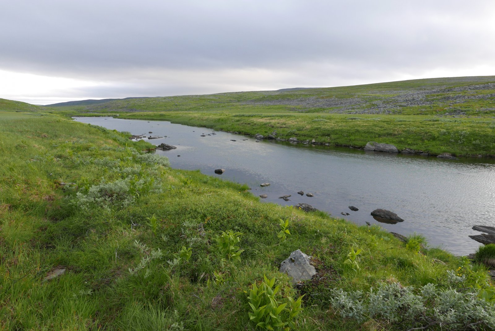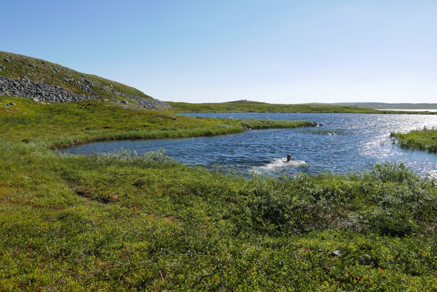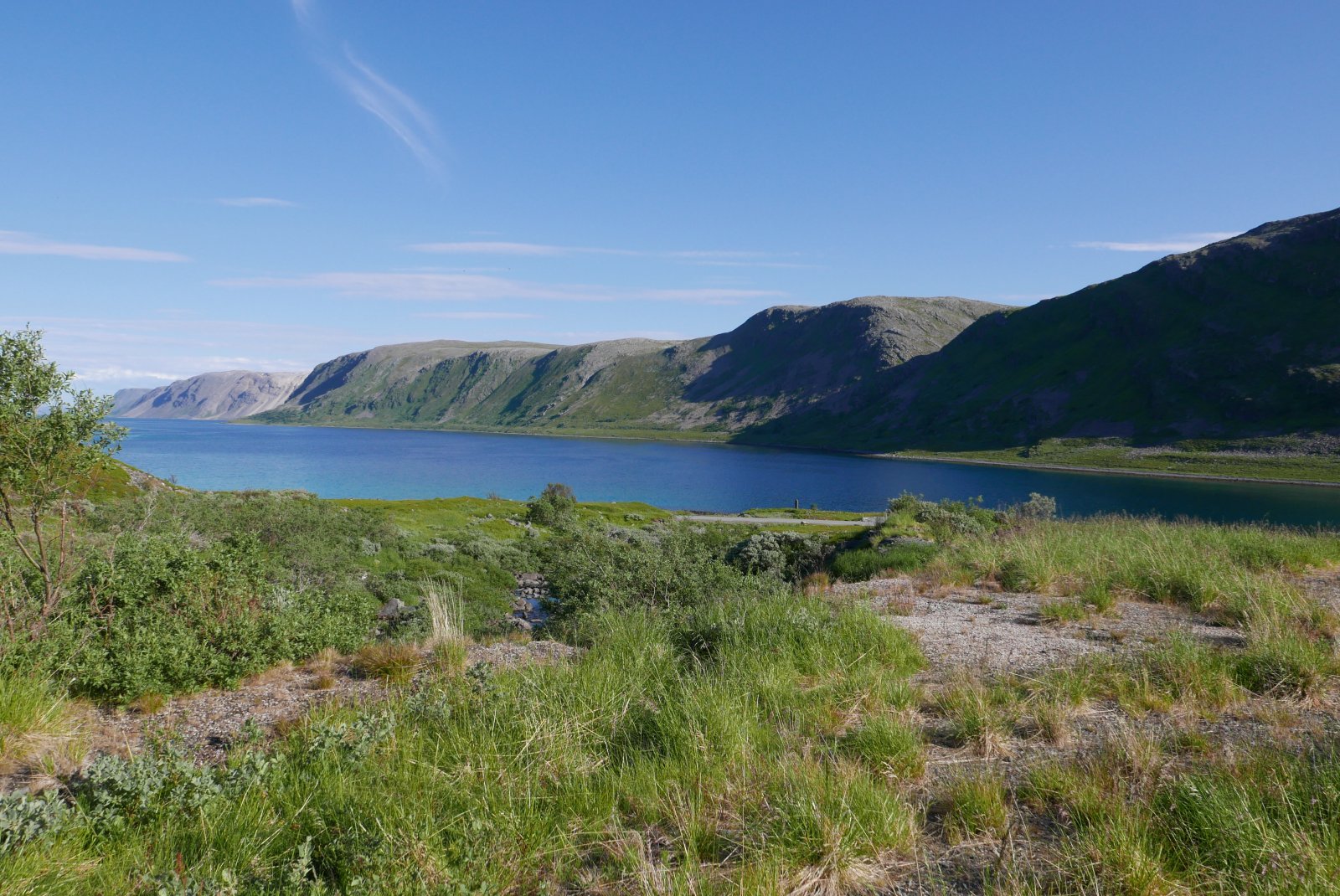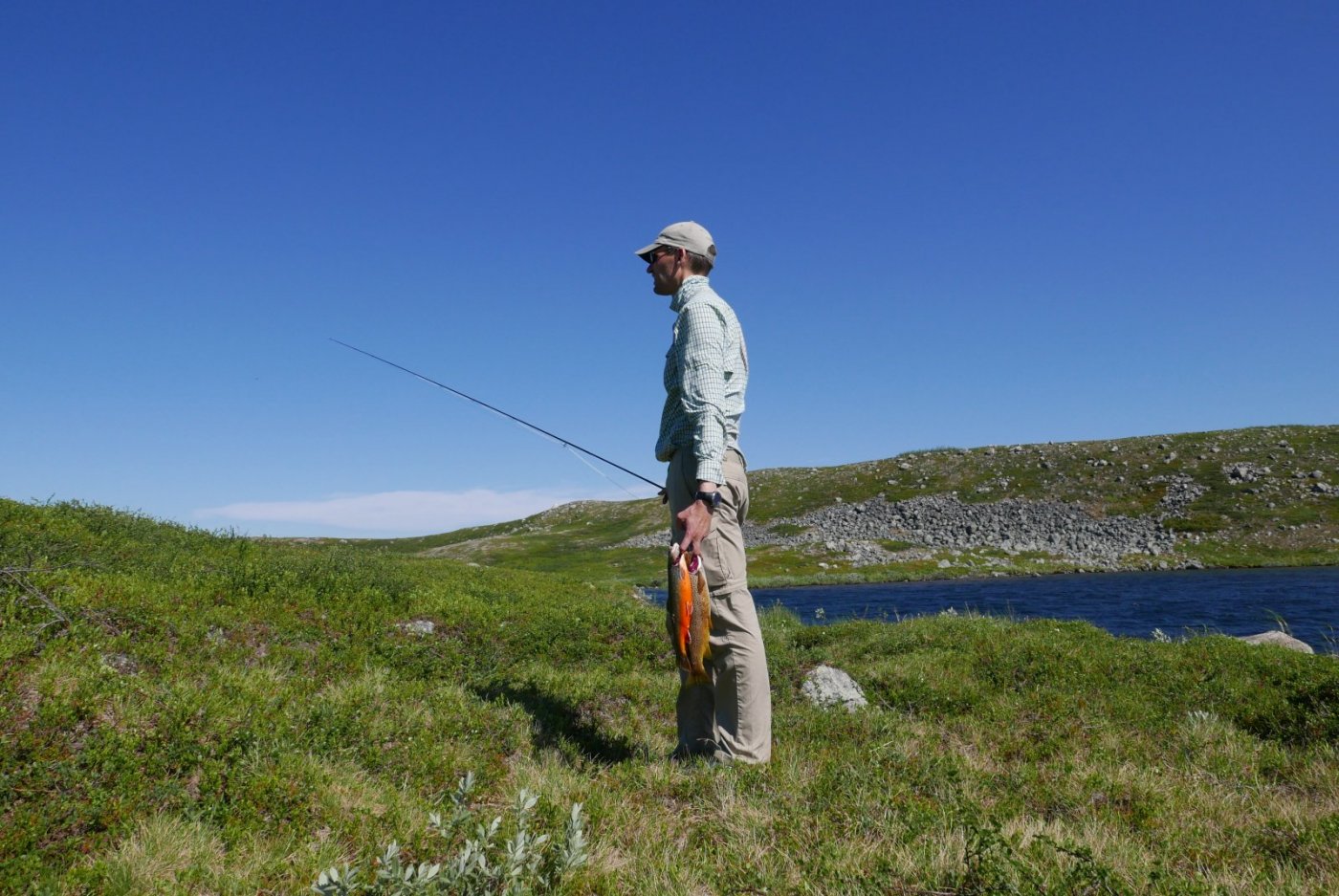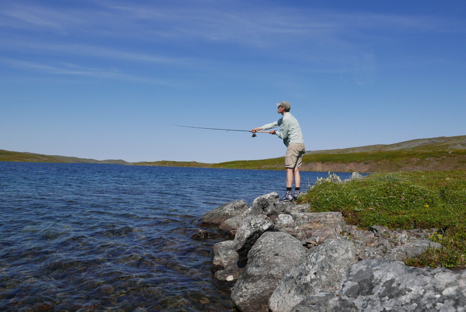 Advarsel: dette er en lang tekst, og en kortere versjon av turrapporten har vært trykket i Jakt og Fiske #10 2018. Rapporten beskriver turen jeg gikk i sommer fra Slettnes fyr ved Gamvik til Lakselv. Denne turen var min første lengre tur med lett sekk (nesten komplett pakkeliste her: Finnmark 2018), turen var også en liten test før vinterens ~1000km lange tur langs Te Araroa stien på Sørøya på New Zealand. Avgårde (søndag og mandag) Endelig avgårde! Det er søndag 15. juli og klokka er blitt nesten ti om kvelden. I Tromsø er det overskyet og litt regn i lufta når vi endelig kommer oss avgårde. En drøy halvtime senere Lander vi i Hasvik (Sørøya), deretter går ferden til Hammerfest og Honningsvåg. Jo lenger nord vi kommer finere blir været og jo bredere smiler jeg. Jeg tenker på turen som ligger foran meg hva jeg kommer til å oppleve. Tankene går til gode minner fra tidligere turer i områder jeg skal passere igjennom, og jeg tenker på om bena kommer til å tåle over 25 km i terreng hver dag, og om det (nye) lette utstyret kommer til fungere som det skal. Jeg er særlig spent på om det nye enkelduks teltet (Zpacks link her) holder mål, og hvordan det blir å gå med sekk i krunglete terreng, uten sti, i lette joggesko. Det siste året har jeg tenkt mye på denne turen, og hvor kult det er å gå i fjellet fra Slettnes fyr i Gamvik på Nordkinnhalvøya til Lakselv. En tur som kommer til å starte så langt nord man kommer på fastland i Europa, og så vende nesa sørover og vandre igjennom fantastiske fjellområder de neste ti dagene. En god del av turen er i områder jeg har gått i før, men det er også nye spennende områder -- og ikke minst fiskevann som jeg gleder meg stort til å få oppleve. Drømmen er i gang, og mellom Honningsvåg og Mehamn ligger Barentshavet speilblankt, og rett i Nord henger sola lavt over havet. Når vi stiger av flyet i Mehamn kommer jeg i prat med en hyggelig dame og en eldre kar som møter henne på flyplassen (tror hun er datteren hans og at hun er hjemme på sommerbesøk). Jeg forteller litt om turen min og at jeg planlegger å kjøpe inn mat i Mehamn før turen starter, de ser litt skeptisk på den lille sekken min og sier noe om at det er en veldig lang tur. Jeg treffer dem igjen på parkeringsplassen utenfor, og de spør om jeg har mat og om jeg skal sove på hotellet, og om jeg har mat? Jeg svarer at jeg skal finne en plass å slå opp teltet og at jeg klarer meg fint. Tror kanskje at de syntes litt synn på meg, for de spør om jeg skal bli med dem hjem hvor jeg både kan få mat og en varm seng å sove i! Jeg smiler og takker høflig nei til tilbudet, etterpå angrer jeg, for det var veldig hyggelige folk -- typisk Finnmarkinger, varme, snille og gjestfrie. Og det hadde vært hyggelig å bli kjent med dem. Istedenfor tar jeg en rask kikk på kartet før jeg rusler opp til et lite vann som ligger ca. 1 km fra bebyggelsen, slår opp teltet og legger meg til å sove. Nest morgen rusler jeg ned til Mehamn og kjøper tørrmat, flytende margarin, matolje og rødsprit. 7-8 kg mer i ekstra i sekken merkes godt. På bensinstasjonen overhører jeg at en svenske i bobil har tenkt seg til Gamvik, og jeg får haik! Det er et hyggelig svensk pensjonistpar som er på Finnmarksferie i bobil, de er veldig hyggelige og helt over seg over Norges kyst og ikke minst Finnmark; det går langsomt østover og rett som det er sier han: "Siw, se hvar vakkert det er!" (og jeg var ikke uenig) Nordkinn og D2 intervju (tirsdag) Jeg blir sluppet av ved Slettnes fyr, og jeg rusler ned til fyret. Det er ingen andre gjester i kafeen og jeg kjøper en kaffe og bestiller en vaffel, nå er jeg klar! Jeg lukker øynene og kjenner på forventningene til hva de neste dagene vil bringe av opplevelser. Blar i gjesteprotokollen og finner mitt eget og en god venns navn fra turen i 2013; gode minner! Jeg tekster også litt med journalist Ola Halvorsen i D2 (Dagens Næringsliv) som gjør en reportasje om Finnmark, han vil møte meg, og vi avtaler å møtes i Laggo neste ettermiddag/kveld. Damen i kafeen kommer med vaffelen, og jeg ber henne om å ta et bilde av en raring som nå skal på tur! Klokka er to, går ut og skrur på, tar noen bilder av fyret og vender så nesa sørover. De første kilometerne er flate og lette, men det går ikke lang tid før det blir mer ulendt, ikke bratt, men steinete. Steinur, 15kg i sekken og lette joggesko er ikke den beste kombinasjonen. Etter et par tre timer krysser jeg veien og fortsetter sørover på stien mot Risfjord. Etter noen kilometer svinger jeg vestover mot Sandfjord vassdraget, planen er å holde meg på østsiden av elva og å få med meg flere vann øst for Sandfjordelva, kanskje jeg også kan lure noen fete røyer til middag? Tidligere på dagen har det blåst og regnet litt, nå klarner det opp, stiler av og blir varmere. Jeg stopper ved et ett vann som ser lovende ut, spiser litt og prøver fiskelykken, uten resultat. Jeg slenger på meg sekken og fortsetter sørover. Det er blitt kveld og det går for smått sørover, hvis jeg ikke får opp farten er det bare å glemme å komme meg til Laggo i morgen ettermiddag. Jeg slipper meg derfor ned i dalen hvor jeg vet terrenget er lett å gå i. Det er lite vann i elva, men den virker fiskbar og det er også en del folk å se. Men siden jeg ikke har fiskekort er det uaktuelt å fiske, jeg gir gass opp til kulpen hvor fiskesona slutter. Klokka er ti, jeg er sulten som en ulv, lager mat og kikker på kartet. Jeg har nå gått et par og tyve kilometer og det er fortsatt et par mil igjen til Hopseidet. Planen var å overnatte noen få km fra Hopseidet og fortsette mot Laggo tidlig neste morgen. Er evig optimist og har (som vanlig) undervurdert både terrenget og avstanden på Nordkinn. Så selv om jeg har jobbet hardt er jeg allerede på etterskudd i forhold til min opprinnelige plan. Jeg har sett mye på kartet og telt kilometer, og etter mine beregninger er det 32-33 km fra 