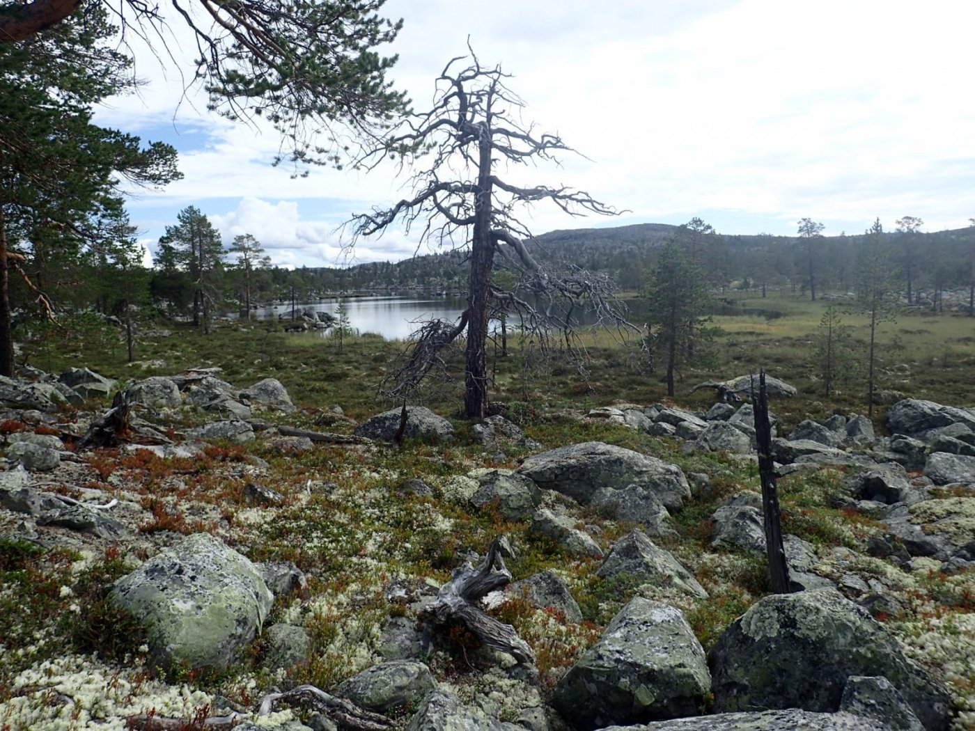 Nok en turrapport fra Femundsmarka. Trenger vi flere nå? Nei, vil nok mange si. Femundsmarka er allerede et av våre mest (over-)eksponerte områder, og følgelig et av de mest "slitte". Flora og fauna er under press. Flotte bilder av store bål og store fisker vil bare lokke flere turister til Femundsmarka, og ikke alle disse turistene respekterer naturen i sin higen etter opplevelser og flotte bilder. En stor del av meg tenker slik. Jeg burde dra på tur, minimere mitt fotavtrykk, dra hjem og holde kjeft om det. Folk flest gjør det, og det er nok bra. Men så har man argumenter som trekker meg den andre veien. Turrapporter og bilder er inspirasjon for mange til å komme seg ut. Det er bra i et folkehelseperspektiv. I tillegg kan en turrapport være nyttig i opplysningsøyemed, dersom den har riktig fokus. Formidling av hvilket regelverk som faktisk gjelder i nasjonalparken samt generelle og konkrete tips om hvordan man skal oppføre seg i møtet med slik sårbar natur er eksempler på det. Akkurat dette siste argumentet gjør at jeg lander på å skrive turrapport fra Femundsmarka igjen. Det er ikke å komme unna at det å skrive turrapport er litt egoistisk motivert. Rapportskriving gjør at turen varer lengre (gjerne hele høsten og vinteren), og jeg synes det er gøy å vise fram Femundsmarka, som har så mye å by på. Jeg "rettferdiggjør" min eksponering av Femundsmarka gjennom å forsøke å bevisstgjøre folk på at nasjonalparken er under press og på hvordan det er lurt å ta hensyn til det. Jeg er hverken biolog eller oppsynsmann, så jeg er langt fra noen ekspert, men det trenger man heller ikke være. Man kommer langt med sunn fornuft og folkeskikk, samt litt selvdisiplin. Andre som eksponerer Femundsmarka gjennom turrapporter og sosiale medier må ikke føle at jeg rakker ned eller kritiserer. Jeg synes det er helt greit at andre skriver og tar bilder, og jeg koser meg med mye av det jeg leser og ser. Mange mener at all eksponering er uproblematisk, fordi det til syvende og sist er opp til den som drar på tur å oppføre seg. Allerede i DNTs årbok 1987 ble det stilt spørsmål ved vår bruk av Femundsmarka. I artikkelen «Slit vi ut Femundsmarka?». påpeker forfatteren nettopp dette - at det er opp til hver enkelt. Det beste virkemidlet man har for å beskytte marka uten å innføre begrensende lover er i mine øyne å forsøke å påvirke folks holdninger. Jeg velger derfor det standpunktet at den som eksponerer kan gjøre en liten innsats for å bevisstgjøre folk om tingenes tilstand i Femundsmarka. Såpass skylder vi den. Men; alle kan ikke gjøre det i hver turrapport og hvert bilde, og det kommer sikkert ikke jeg til å gjøre i framtiden heller. Jeg har heller ikke tenkt slik i tidligere turrapporter, men denne bevisstheten er noe som har vokst fram etter hvert som jeg har blitt bedre og bedre kjent med nasjonalparken. Her kommer i hvert fall en rapport fra min 4-dagers i Femundsmarka i sommer. Som vanlig er rapporten av det lengre slaget. Veldig mange har det slik med Femundsmarka, at de bare må tilbake, år etter år. "Femundssjuka" kalles det av mange. Jeg har ikke inntrykk av at så mange har det på samme måte med andre områder. I hvert fall ikke helt på same måte. Hvorfor det er slik kan vi bare spekulere i. Professoren Nina Witoszek kaller den norske tilhørigheten til naturen for geofromhet. Det synes jeg er et fint ord på det jeg føler for dette området. Hun skriver at «geofromhet skaper erstatningsguder som for eksempel fjell, fjorder eller bjørker i storm». Eller blokkmarker. Eller ei krokfuru. Eller Grøtåa. Fyll inn det som passer for deg. Denne turen skulle egentlig være en tidlig vårtur. Jeg skulle vandre opp langs en folketom Røa like etter vårløsningen og nyte de lange, lyse nettene. Etter en intens høst og vinter med lite søvn grunnet en stk. førstefødt som kom til verden i fjor sommer, var behovet for en liten avstikker fra hverdagen overveldende. Alle ledige stunder gjennom vinteren hadde som vanlig gått med til å se på kart Z59 Rogen og til å lese all litteratur i bokhylla om Femundsmarka om igjen. Våren kom, og gikk igjen, det hele i løpet av noen få dager, føltes det som. Den førstefødte sov like fordømt lite. Juni kom, og gikk. Tørken kom, brakte med seg skogbrannfare og bålforbud, og en planlagt avreise ble utsatt på grunn av det. En forkjølelse kom og gikk. Det klaffet aldri. Ikke før ferien (og pappapermen) gikk mot slutten, og samboeren sa at "nå drar du bare, ildforbud eller ikke, jeg skal klare brasene her hjemme, noen dager uten søvn går fint". Heldigvis har jeg en samboer som forstår hvor viktig dette er for meg. Etter å nesten ha skrinlagt hele turen, var det uvirkelig å sette seg i bilen og kjøre mot Femundshytten en dag i slutten av juli. Endelig skulle jeg få vårturen min! I løpet av mine seks turer i Femundmarka har jeg prøvd de fleste inngangsporter, men Røoset og nedre Røa har jeg fremdeles til gode. Det er nesten flaut for en som liker å kalle seg femundsentusiast. Nedre Røa var som nevnt den opprinnelige planen, men det ble ikke aktuelt nå i fellesferien. Jeg har en teori om at nedre Røa nytes best utenfor høysesong. Dessuten klaffet ikke båttidene helt med min stramme tidsplan. Det endte dermed som det ofte har gjort de siste turene - båttaxi fra Femundshytten til Storvika og straka vegen inn i marka. Må nesten si at jeg er litt lei av denne innfallsporten, men når man har det travelt og ønsker seg langt inn, er denne løsningen svært gunstig, og logistikken er kurant. Som vanlig ønsket jeg å nå så langt inn mot grensa som mulig, men jeg hadde ikke noen konkrete mål. Den hektiske vinteren hadde gjort sitt med formen, så jeg var usikker på hva jeg orket. Aldri hadde kiloene vært flere og lungene mindre. Jeg hadde bevisst unnlatt å se på kart over Grøtådalen denne vinteren, for dersom jeg gjør det, vet jeg hvor jeg ender opp når sommeren kommer. J