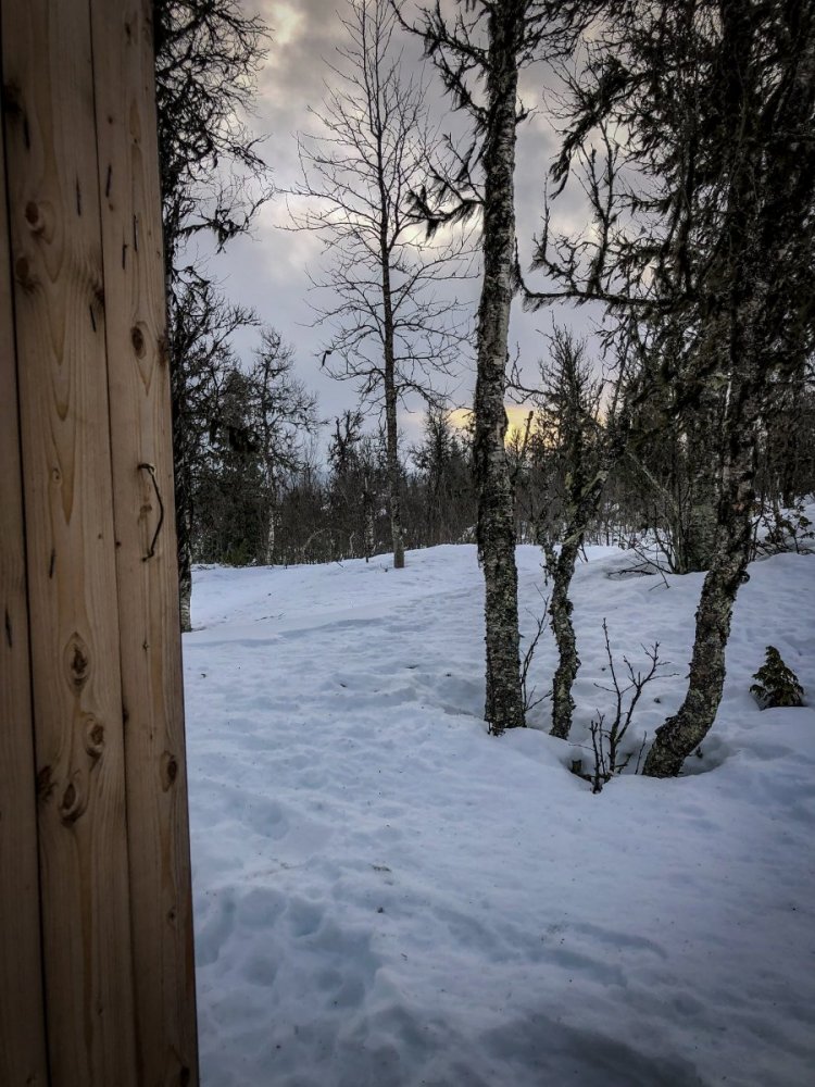 Vintertur Gausdal Vestfjell dag 5 I dag kom turfølelsen virkelig og det er jo litt typisk når turen går mot slutten. Larsen sto opp i sjutida som vanlig, mens jeg sov godt til over ni. Luksus å stå opp til god, varm stue og kaffe på termosen. Helt suverent. Etter frokost var eneste plan isfiske. Vi pakket en pulk og la i vei til Storfisktjønna. En rekke hull ble boret og vi prøvde alt fra Mormyshka til store røyeblinker uten resultat. Men, så, plutselig napper det på blinken til Larsen. Det napper kraftig et par ganger før den sitter. En herlig kubbe av en ørret. Minst 700 gram. Litt utpå kvelden sniker nok denne seg mot kiloet. Virkelig flott fisk, men det ble med den ene. Vi returnerer etterhvert mot bua, gjør opp fisken, salter og steiker den i rikelige mengder setersmør. Herlig! Etter en pause i bua spenner vi på oss skia på nytt og går til Storfisktjønna. Dessverre uten resultat og vi returnerer for å nyte siste rest av godsaker. I morgen går returen mot parkeringa på Synstgardsetra. Det er rundt 11 kilometer så vi håper på minusgrader og godt føre. Vi sitter nå i bua og kjenner litt på følelsen av at det er trist denne fine turen er over allerede. Samtidig blir det fint å komme hjem til familien. Dette er medisin i en hektisk hverdag med jobb og familie og vi er heldige som kan ta oss en timeout på 5-6 dager 😍6 poeng