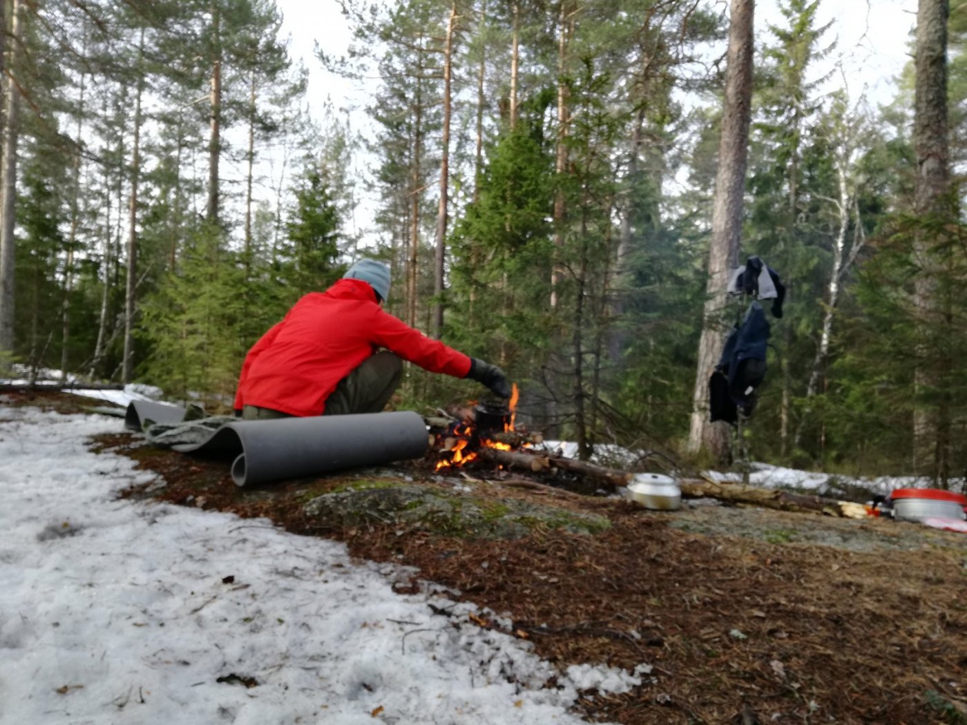 Fantasisk fint vær i dag på Krokskogen. Klart, litt vind men stilnet av, min hemmelig bålplass er flott! Bålkaffe, gapahuk så også ryggen blir varm. Kunne sitte i bare t-skjorta. Pølser, kvikklunsj og skolebolle sto på med menyen. Kjenner at jeg har vært ute i dag, og glad for at jeg smurte meg med solkrem😀2 poeng