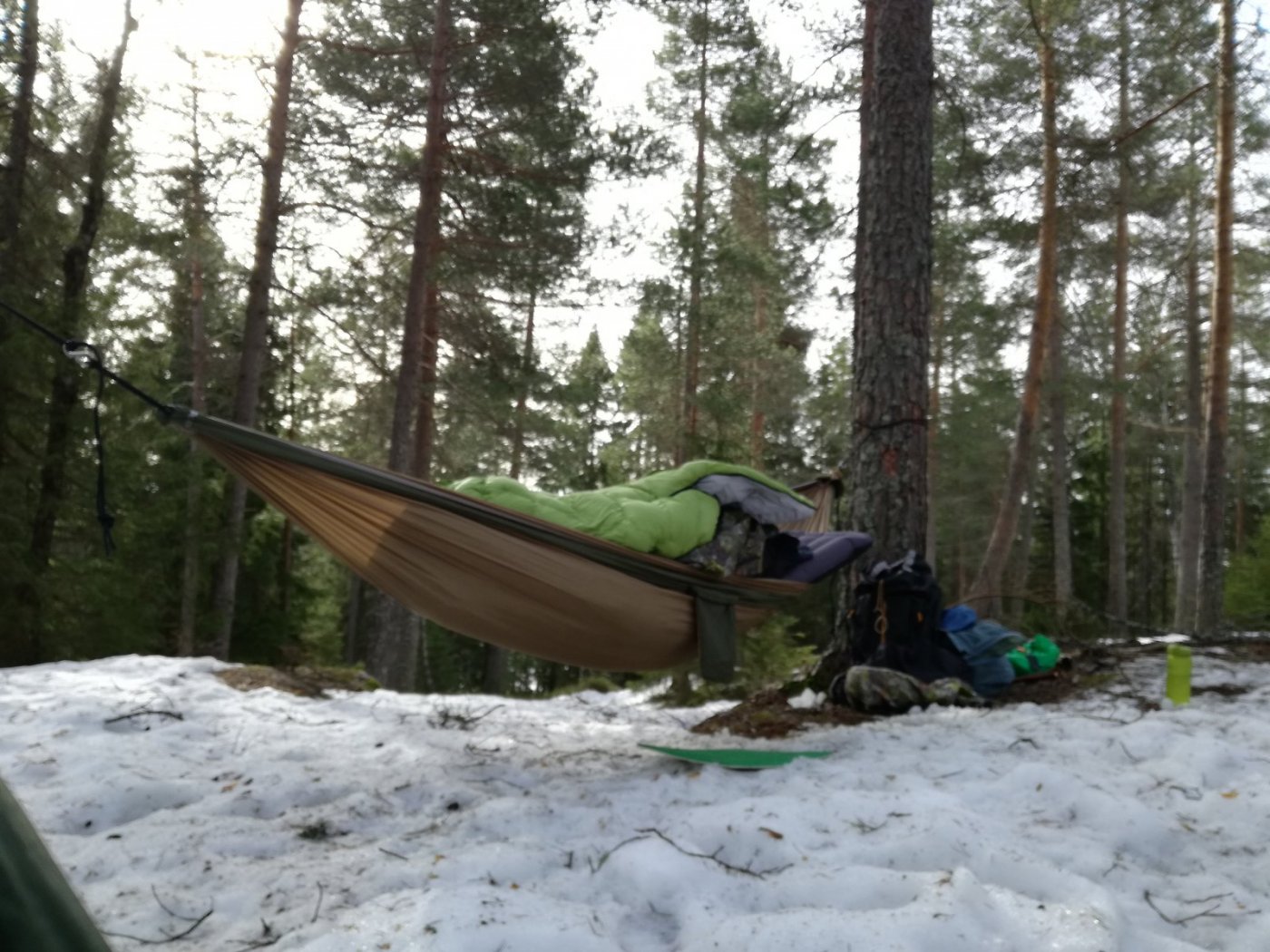 Hengekøyer med myggnett og tarp til konemor, begge ungene og meg selv. Hennessy, ENO og Dovrefjell.1 poeng