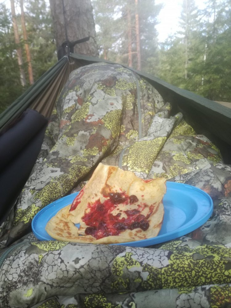 Tarpen har blitt min løsning på mangel av fortelt, så den funker fint mot både regn og til å gi skygge i solsteik. Kunne fint hatt en som var halvparten så stor, om man vil spare litt vekt. Har vurdert å bare prøve den lille fjellduken jeg har. Men da blir det jo dårligere plass til å evt legge eller henge opp våte klær. Våte sko blir satt på innsiden, mellom inner- og yttertelt uansett, da det er goood plass der. Ellers er det som tubbs sier, bare å hekte av det ene hjørnet på innerteltet for å få bedre plass1 poeng
