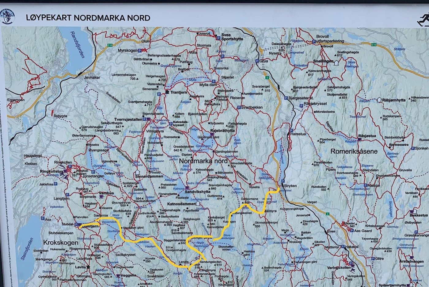 Etter turen Da er det tørking, vasking av tøy. Oppvask Lufting av dun, soveposer og rastejakke. Aller kjedeligste er tørking av teltet syns jeg. Her er brøytekartet som Løvenskiold har for Nordmarka. Det er grovt, men gir viktig info til denne turen, særlig når det kom så mye snø. Ellers brukte jeg dette gratis kartet fra skiforeningen og imarka appen for status på løyper. Topokart app til tracking etc. Hadde med stort kart og kompass i pulken. Eneste stedet jeg navigerte litt feil var her, hvor jeg hadde tenkt å gått på høyre side, men det var bedre å gå på venstre side ifølge en mann vi traff. Gikk ca 100 meter feil. Vi gikk 65 km totalt, og det går forbausende mye opp og ned. Det og gå nesten samme ruta frem og tilbake oppleves som to forskjellige turer, spesielt siden vi gikk med «tvangstrøye» stivt drag. Alt utstyret funket bra, og ingen problemer, bortsett fra tannbørsten min som ikke var riktig vedlikeholdt siden forrige tur🙈 Kommer til å flytte et surrefeste for ei dør på teltet, den står 10 cm for lavt. Det meste av utstyret som var men ble brukt, men burde hatt med en stor Thermos til. Da kunne vi ha smeltet mer snø på kvelden. Det gikk ca 6-7 liter med vann i døgnet. Har tatt ca 450 bilder, og lagt ut nesten 200! Fant mer 4G dekning, enn forventet. Hva jeg kommer til å huske fra turen, er at vi gjennomført etter ønske om type tur, på tross av mye vær, og at det var veldig hyggelig, og mest minnerike bilder fra turen er disse fire. Som døpt, tilbake i sivilisasjon. Uttalt av herr sønn etter dusjen når han kom hjem.1 poeng