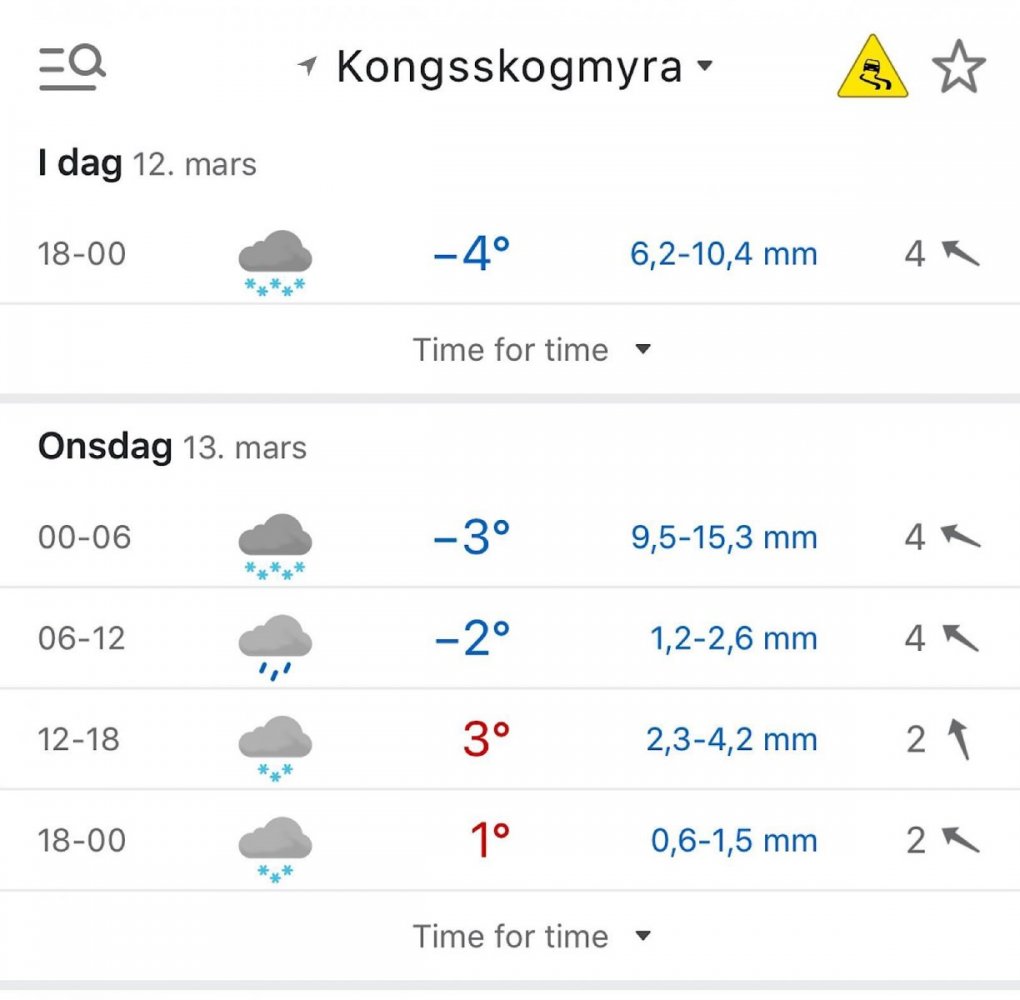 Krysset vi satt og hadde langhvilen i. Vi må forbi Sandungen gård. Her er det mulighet til å fylle vann. Men vi hadde det vi trengte. Så spor ett elg som hadde vært å drukket vann. Skyet til igjen. Et tre som er mye større enn alle de andre, ser litt rart ut. Ting å titte på når en går. Den gamle teltplassen er ikke lett å se etter all snøen som kom. Litt mer blå himmel. Et dyre spor jeg er litt usikker på. Gaupe? Lange tynne bein. Et enslig skilt. Stien opp til Kirkeberget. Hadde et lite håp om at vi skulle ha tatt turen opp. Men det blir nok med å komme tilbake innen rimelig tid. Ved Sandungen gård, var tanken å gå skiløypa der den gule streken går, men sporet var helt borte. Elgen stod fortsatt å så utover. Sjekk av teltplass. En liten kolle. Her er vi nå. Ca 2 km i forskjell fra når vi lå ved Sandvika. Vi tråkket spor, slik at det gikk greit å gå opp med pulker. Tråkket flatt, nok plass til teltet. Når en er flere på tur, og skal pisse og hente snø til smelting, er det greit å ha en plass til hvert, og at en er enige om disse. Utsikt mot Vesle Sandungen Sola på vei ned, mer luftig skyer, i dag har vi hatt mye forskjellig vær. Nigor Spix har to dører, den ene ala Nallo, kjekt når snøen skal hives ut. Teltet var kliss bløtt eller all nysnøen i natt. Satte det opp til tørk med full gjennomtrekk. Det hjalp fælt. Teltplassen ble veldig fin😀 Sola gikk ned 17.16 En glad gutt på tur, selv om han ikke har dusjet på 4 dager😂 Noen går litt lengere unna en andre på «dritt-tur». Sjekket i dag også pathfinder kjelen går nedi primus ETA pot på 3 liter. Bildene er tatt med noen få minutters mellomrom. Satser på mer stabilt vær i morgen og kanskje noe oppkjørte løyper, slik at det blir lettere å gå, og at vi kan slippe vei.1 poeng