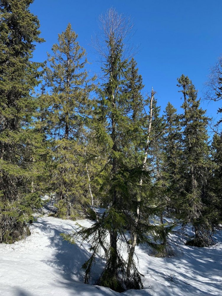 Dag 3 Voknet kl 1 og måtte tisse. Blåste litt, men har fått fin teknikk på å komme ut og inn uten å brette. Viktige er å få rompa på rett plass, da order resten seg selv. Hadde ikke en gang på lykta eller briller! Sov i natt med ørepropper, noe vind men ikke så my som forrige natt, minus 5 grader. Det holder akkurat - men sola kom og varmet. Da sov jeg lenge. Voknet kl 10.11! Trikset med å et liggeunderlag å stå på er veldig bra. Trapen har slakket seg litt i løpet av natta. Gass og pannekaker til frokost for naboen. Tur på skaren, bærte bra. Ikke ei sky. Gran i bunn - bjørk på toppen. Helt omslynget. Blir en flott dag i sola, bra jeg har med solkrem. @Tom42 sin ovn blir bruk til vann og kaffe. Da har vi gass, rødsprit og ved å fyre med.13 poeng