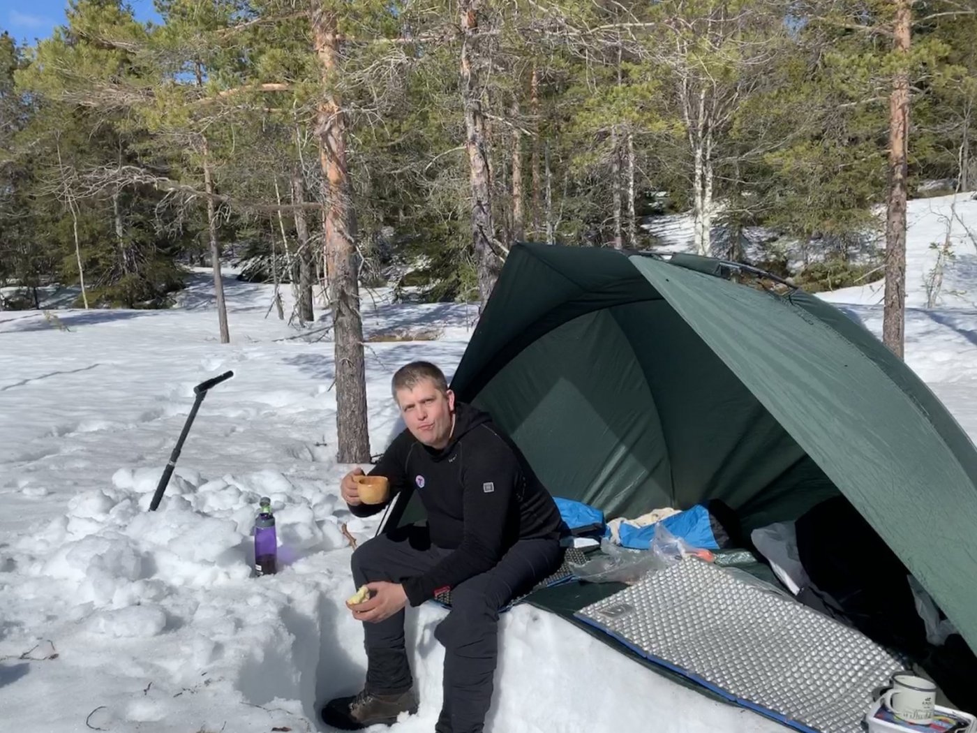 Etter forrige tur fant @TerjeH ut at jeg måtte lære meg å gå med pulk. Da husets datter hørte dette var replikken "Men Mamma, du responderer jo svært godt på godbiter, så det bør være et overkommelig prosjekt." - Sukk. Etter et par runder i lysløypa med 15 kg verktøybag fra Makita i pulken (og litt skrå blikk fra de lokale hundelufterne) blei ny pulk satt i bestilling. Sist helg var det meldt regn i Tromsø så vi satset på at Snarbyeidet og Trollvassnova lå såpass høyt at vi fikk minusgrader. Som ekstra bonus fikk vi lånt oss aktuell nybil til prøvekjøring og ikke minst prøvepakking. Læringspunkter: Jeg kan gå med pulk, i allefall i lett terreng. Arctic bedding fungerte like bra som vi håpet på. Nalgeneflasker som varmeflasker er fortsatt en suksess. Vi bør vurdere å skaffe oss fleire plugger. Det kunne vært greit å ha skistavene tilgjengelig til andre aktiviteter og ikke vært like avhengig av lokal vegetasjon. Man kan hente mye god bålved i ei vending i en transportpulk. Undertegnede blei introdusert for nye vinterøvelser: "Ikke tiss i votten" (bestått) og "Ikke dett i arbeidsgropa når du har tatt ned teltet" (stryk). Man må huske på å drikke nok på vinterturer (gjentakende punkt) Vi er spente på hvordan det er å legge seg natt nummer 2 når teltet fortsatt er fullt av is og kondens etter natt 1. Det får bli neste tur. Nye Rav4 har forresten fint plass til to transportpulker med stivt drag, to par Arctic bedding, to par fjellski og halvpakket telt. Pulkene ser jo litt voldsomme ut, men det er stort sett bare luft. Formiddagssola er selvfølgelig erstattet med tett skydekke og sidelengs nedbør på grensa til sludd. Nybegynnerfeil nummer 1: Glemte å vokse fellene før start. På vei inn i minusgradene begynte det selvfølgelig å ise. Heldigvis har fjellskiene "fastmontert" sikle og det hjalp å vokse i etterkant. Ellers hadde nok turen blitt kortere. Tester ellers ekte ekspedisjonspakking med teltet pakket med stengene i. Sånn i tilfelle vi svingte feil og havnet på Nordpolen. Instagramvennlig aftenstemning. Et par km forbi Trollvassbu og et par hundre meter unna løypa fant vi oss et skogholt med ly fra vinden. Litt bedre strekk på teltet denne gangen (bedre underlag). Morgensol som varte heilt til bålkaffen var ferdig og jeg var klar til å komme ut av teltet. Denne gangen turte jeg å koke i teltet. Se, så fin kjøkkenbenk! Skiftende vær på heimturen også, men nydelig føre med nysny på fast underlag. Når vi nærmet oss hovedløypa møtte vi akkurat "toget" med turgåere som hadde tatt skibussen til Snarbyeidet om morgenen og var på vei over fjellet til Tromsdalen. Våre tanker går til de to som ikke hadde sjekket skisporet.no og planla å skøyte heile veien (35 km i 10 cm nysny...)1 poeng