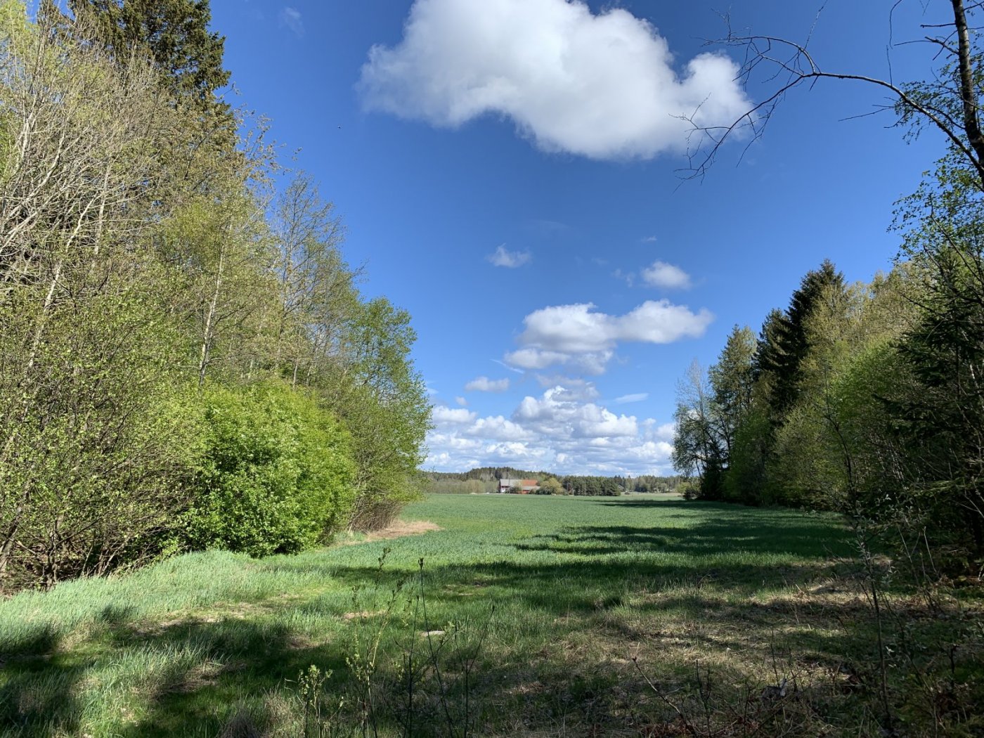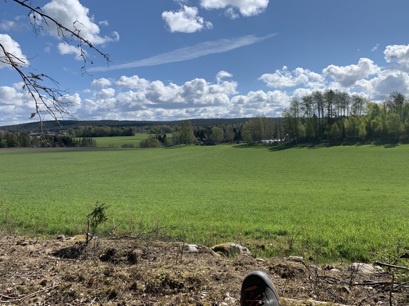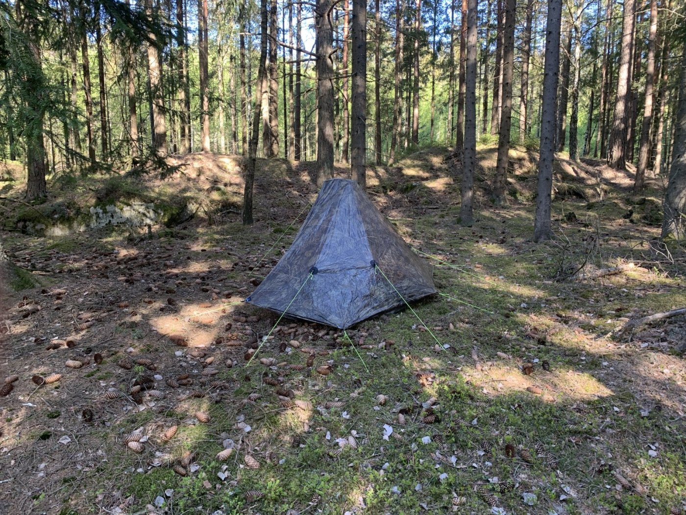 Stor åpne jorder, den sure vinden får bra tak. Men sola varmer. Det ble noen få meter på asfalt, så inn på små grus/traktorveier. Så inn på små stier igjen, veldig forbauset over hvor lite asfalt det faktisk har blitt i dag. Dagens hovedmål, post i butikk😀 Merker at sekken går fra veldig lett og opp med ca 4-5 kg med mat. Det betyr at delmål nr 2 av 6 er i mål. 🎉 Litt asfalt og inn i skogen igjen. Snakket med et par små gutter på 7-8 år, som laget en fallgrop for å fange dyr. De lurte på hva jeg skulle, og jeg sa jeg skulle ligge i telt. De viste om en fin plass. Fikk greie på hvor det var. Etter ca 30 meter dukket plassen opp! Komplett med sliten lavvo. Mer små veier og stier Endelig et skilt, viste ikke at det het noe her, men var her jeg hadde sett meg ut som teltplass. Spesielt skilt, dog for en meget god grunn. Her var det 100% frittgående høner/hane. Ikke ofte en ser dette. Greit å ha hund i band da. Hit kom jeg - helt etter planen. Appene er stort sett enige også om hvor langt jeg har gått. Et skilt viser trolig veien videre, må studere kartet i kveld. Fantastisk flott odde, dett blir en fin kveld. Status er at kroppen er like fin etter ei uke, ingen gnagsår, buksa passer forsatt, og klar for regnværet i morgen. Til og med 100% strøm på AirPods, DAB-radio, inreach og mobil! Alt etter ei uke på tur. Satser på at de to siste ukene også går etter planen.16 poeng