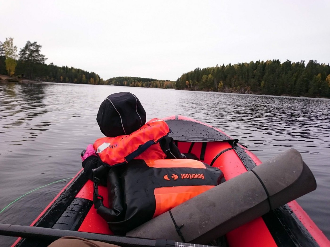 Har ikke hatt riktig så små barn med i packraften, men fra halvannet år. De er så små så de kommer seg ikke mange veiene med redningsvest på, men det er greit å få de plassert slik at det ikke spruter vann på de og at de sitter komfortabelt. Stabiliteten er veldig god, faren, som jeg anser som veldig liten, er vel først og fremst når du skal i og ut av packraften, men det går relativt smertefritt når man har gjort det noen ganger. Om du er trygg på deg selv og din kapabilitet med packraften, så hadde ikke jeg, om jeg var i din situasjon, hatt noe problem med å ta med en baby på flattvann i en packraft. Her er hvordan jeg plasserer min minste arving (i en Kipara 270 packraft):2 poeng