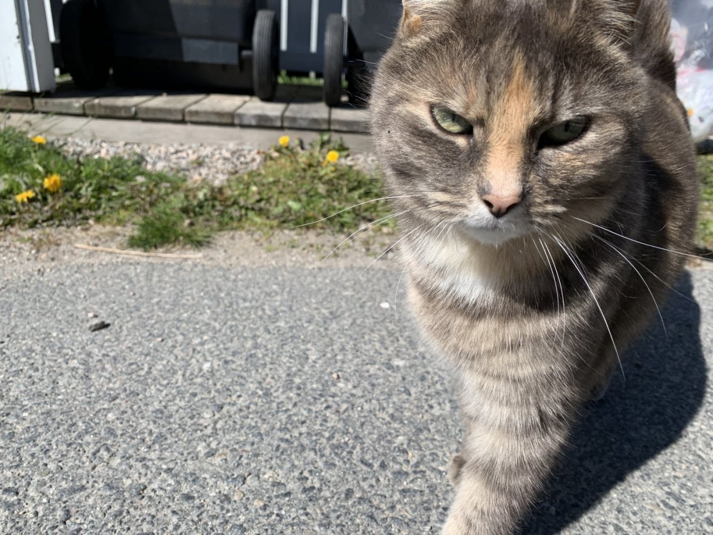 Fint å gå i dag, mye små lite gått sier, men greit å finne frem. Må dobbeltsjekke i en del kryss. I skogen og ut på åpne sletter, små bygdeveier med grus. Traff denne lille katten - rolig og fin, kjærlen. Ikke veldig morsk😀 Bittelitt på asfalt, men ikke mye, og da på gater uten noe trafikk. Inn i skogen igjen. Vanskelig å kle seg, vind og skygge/sol omhverandre. Av og på med jakka. Mer flotte blomster. Tok lunsjen her. Da er det ikke langt igjen til postkontoret og Sarpsborg. Eneste stedet med ly, 7-8 grader og sur vind. Har forsatt stilongsen på. Forbauset over hvor få meter jeg har gått på asfalt. Det er bra for beina.16 poeng