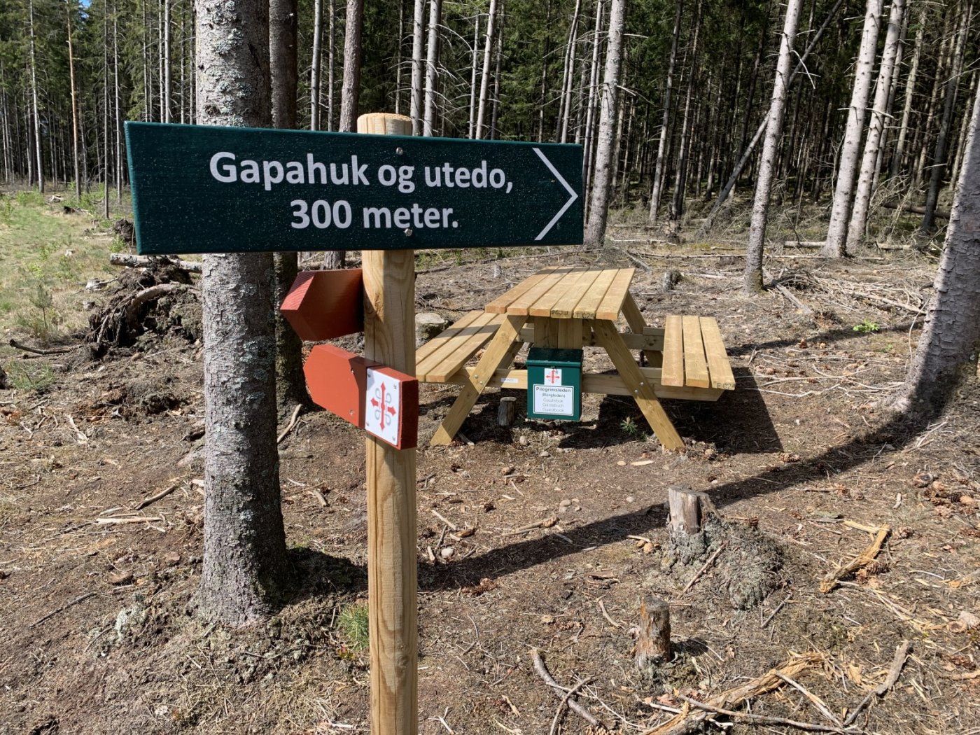 @Omnilite har nesten rett, så du kan lese tråden om Duplex, men teltet er et Zpacks Plexamid. Mulig jeg lager en egen tråd på det etterhvert, da det er på en måte et 1P telt av Duplex, med bedre plass for en lang person og vekt på 420 gram. Mer flotte landskap og artig ting å se på. Denne kjempestore loven har nok hatt sin storhetstid, ekstrem stor. Dette må ha vært en storgård i sin tid. Dette spesielle bygget var også på den samme gården. Veldig særegent. På en måte to stabbur med høyhus i midten. Så også denne store kåta, ca 60-70 cm høy. Mer lettgått og variert terreng. Bra merket og utedo og Gapahuk. Denne kassa stod på et bord, og var rene skattkamret. Masse info, kart etc, som er til stor hjelp fremover. Det ser ut som en del av trasen jeg har valgt også er pilgrimsleder, flere steder enn jeg trodde. Da sparer jeg mye tid på navigering. Typiske kart. Tok bilder av dette, det skal også finnes delvis på nettet. Forsatt lettgått, men i skogen. Dagens beste vannkilde, med det er kumøkk helt inntil og 20-30 kyr/okser i innhegningen. Noen ganger kan en lure, dette stod ved disse steinene. Gått gjort å tippe dette. På Grensen til klatring hadde en stor fin park, men var stengt. Mer åpne områder, av og på meg jakka for ørten gang. Sur vind, skygge sol omhverandre. Mer Windows utsikt. Sommeren er på vei, helt tydelig. Tar meg tid til å lese skilt som er satt opp. På sandveien her var det mye spor, tror noe av det var fra gaupe, og fatbike. Jakttårn med huset nesten midt i skuddretning. Har kommet meg til Høk kro, hvor jeg tok en middag. Fikk også fylt opp alle vannflasker jeg hadde. Har en par km igjen til der jeg har tenkt å slå opp teltet ved et lite tjern.1 poeng