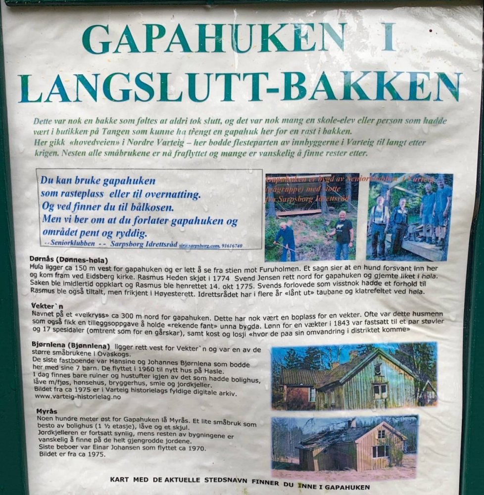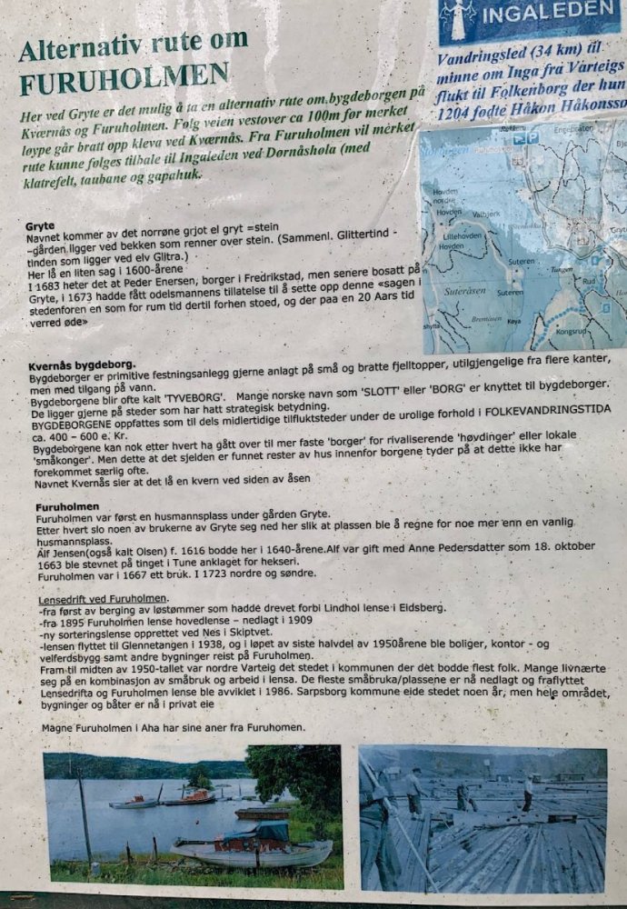 Kom over et skilt med info om hvorfor det heter Ingaleden. Greit å lese slike skilt. Hoppet av denne leden ved Eidsberg Kirke. Også litt utnyttig info om at Magne Furuholmen, har aner herfra😂 hvis du velger alternativ rute! Lett å gå, men motbakke. Langslutt-bakken! Prøvde å finne ei hule, men det begynte å regne, ga meg derfor og gikk til: Det var skiltet til gapahuk, og nok et infoskilt ved gapahuken. Bra gapahuk, med ved og tett tak! Med yr som så slik ut, var valget enkelt Jeg blir her i natt😀 Ikke den lengste dagen, men jeg ligger an til å komme til Askim på søndag, en dag tidligere en beregnet, og da er post i butikk stengt. Så ingen grunn til å stresse og bli våt unødvendig. Edit: Tørking av utstyr - hjelper muligens litt selv om det er 8-10 grader23 poeng