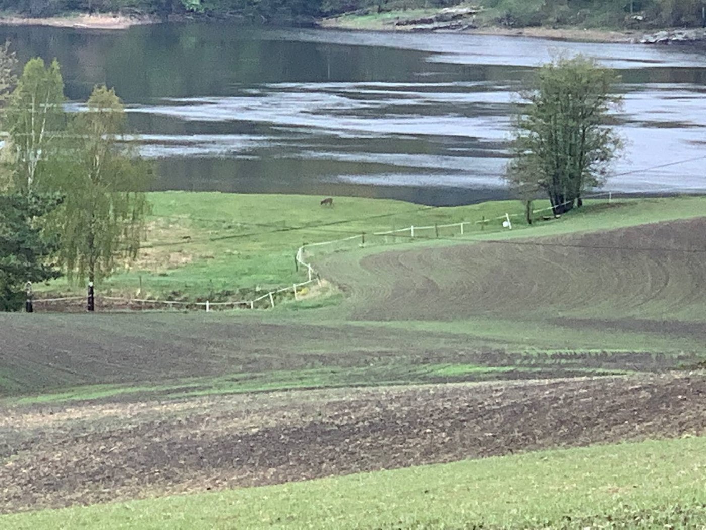 Høk motel et kjent sted for de som kjører MC og har vært med på demokjøring hos AGM, som forgår etter «gakk-gakk» prinsippet. Det vil se at en «ansvarlig» kjører først. Dette er stedet her vi snur. Så føles litt kjent selvom det var første gangen jeg var innafor dørene. Dagens kostet 100kr inkl kaffe! Mye trafikk, og god mat. Så kom et kjedelig stykke å gå på asfalt, ikke mere enn 950 meter, men 118 er trafikkert litt uoversiktlig og trangt ved jernbaneundergangen, men flotte svinger for mc.... Da var det bra å komme seg i skogen igjen. Da var det enighet mellom Garmin, Apple og Topokart hvor langt jeg hadde gått. Jeg er helt etter den grove planen jeg satte opp, når pakkene skulle sendes. Da blir det en fin tur til Sarpsborgs utkant i morgen. Og været ser bra ut, men torsdagen ser temmelig våt og kald ut. Var kjempeheldig å satt og så på to rådyr 10-12 meter unna, som var å drakk vann. De så meg ikke, men prøvde å ta bilde av de, hvorav dette ble det beste. Motlys, trær og kvister i veien ble ikke noe iPhone taklet. Dessverre stod den ikke innstilt på live. Og de stakk fort når jeg reiste meg for å ta bilde. Men da har jeg sett orm, elg, rådyr, hare, storfugl og mange fugler så langt på turen.1 poeng