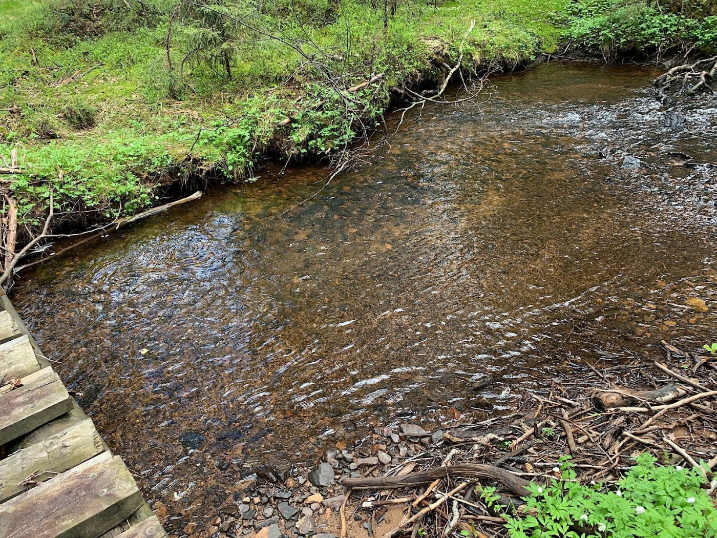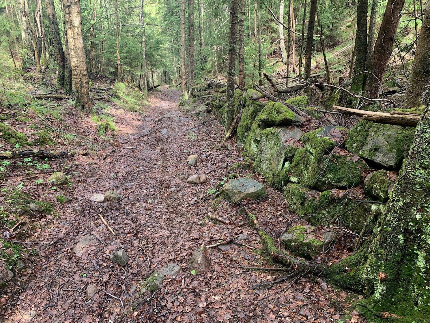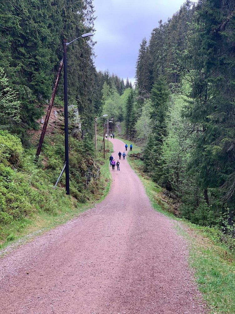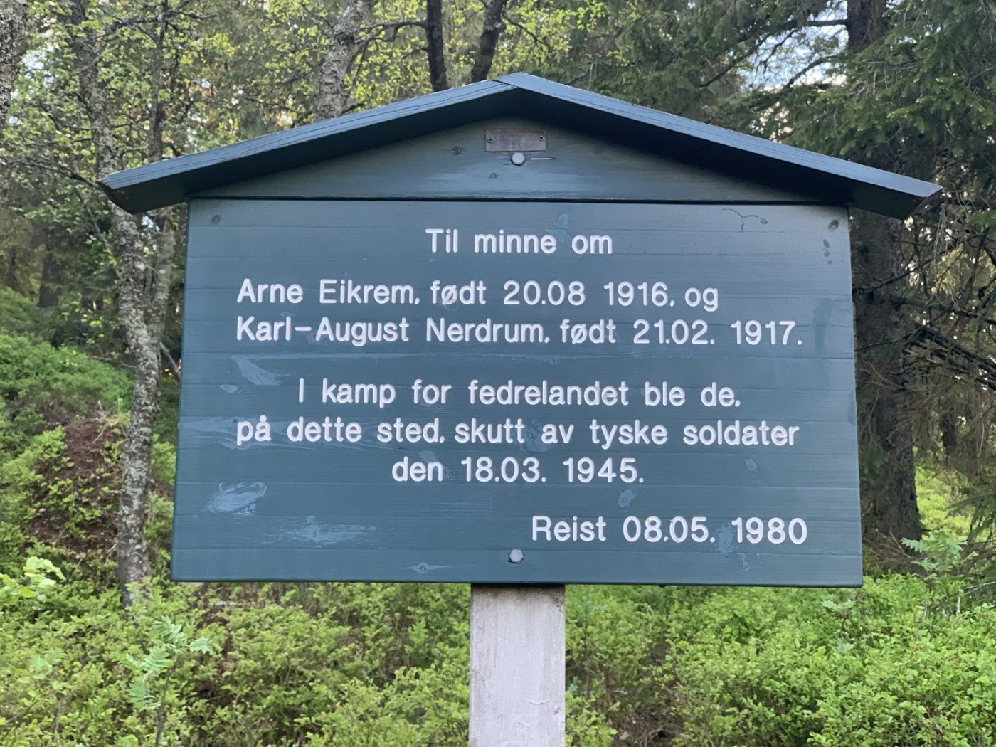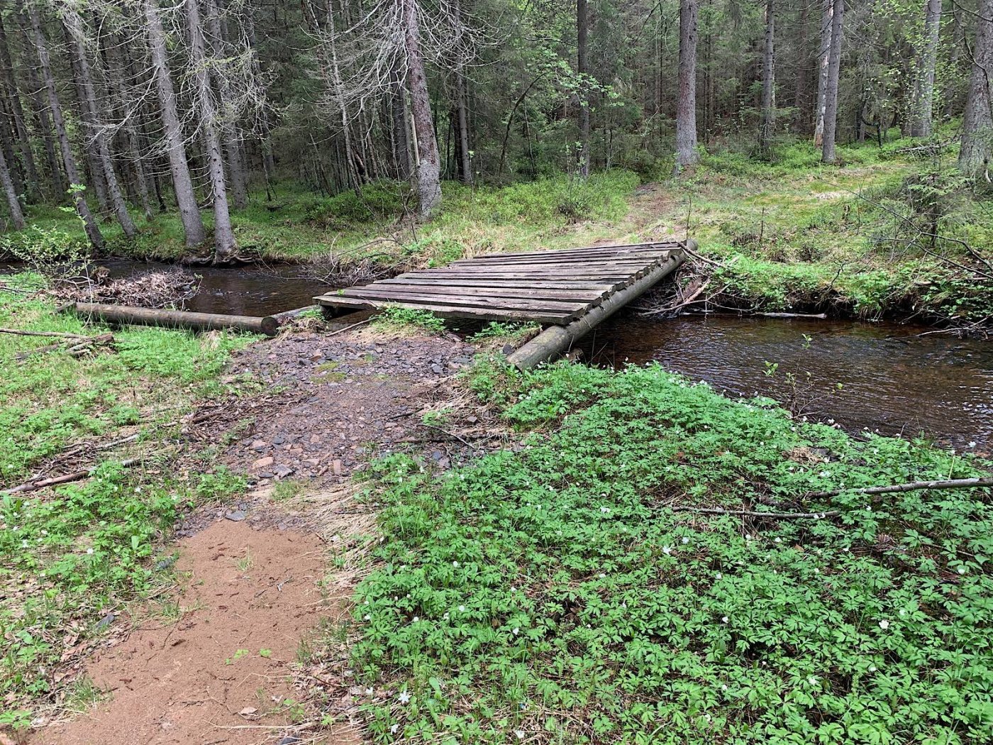 Uvant med så mye folk ute. Rundt Linderudkollen var det utrolig mange. Trivelig å se så mange barnefamilier på tur. Bra skiltet i området her også. Gikk forbi en artig gammel bro, de var flinke før , og det varer evig. Det sto et minneskilt på den. Gamle hustufter og trappa står like fint! Steingjerder. Så litt nedover igjen, fortsatt med Steingjerder ikke merket sti/vei. Ble en rast på Monsetangen Så inn i skogen igjen, fint å gå etter mye grusveier. Skogbunn er og blir best å gå på. Litt alternativer også, skiløype? Klart fint vann i område, smaker bra også. Solid bord, med innlagt vann😀 Mere motorveigrus - Her kommer sykkelene fort og de er mange. Ikke mye utsikt å se i dag. Når jeg set damplokomotiv skiltet, tenker jeg at Vy har et langt lerret å bleke.... Siste jernbanekryssing på turen. Lenge siden denne var åpen. Noen er ute i skogen, og har bulen like ved, bra de kommer seg ut. Så litt grøvre vei. Mer flotte blomster - vet ikke navnet - men sikkert noe med klokker.... Så små stier. Små flotte fosser med klart fint vann😀 Traff en «engel» med lokalkunnskap og orienteringskart. Han hadde lokalkunnskap også, om turen videre også. Så nå blir flyvraket lett å finne. Bra tips for å spare høydemeter på turen videre, settes alltid pris på😀 Her er jeg nå, ca 15 minutter unna flyvraket og radiostasjonen.12 poeng