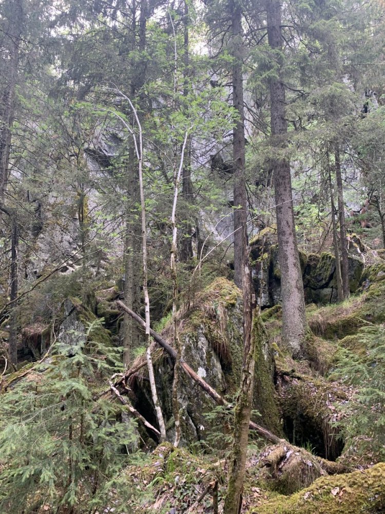 Litt rufsete og glatt opp mot toppen av Hansakollen. Nok et reservat. Mye blokker og rette bergvegger. Litt trolsk og kaldt, snø i bakken? Fant flyvraket der @ost hadde beskrevet det. Ikke så mye igjen. Noen flott utsktspunkt på veien opp. Ser radaren på Haukås hvor jeg var i går, langt i det fjerne. Maridalsvannet. Grønt som på film, helt kunstig Fant også der hvor radiostasjonen hadde vært. Skjønner plasseringen bra. Full dekning, og som radioamatør ser jeg grunn til valget. Her kan du sende langt. Men du er utsatt til for peiling. Gjengrodd, så ikke lett å se så mye på toppen. Og myggen er kommet... Da er planen å finne en camp og få opp teltet. Men regner med å miste dekning igjen på veien ned.9 poeng