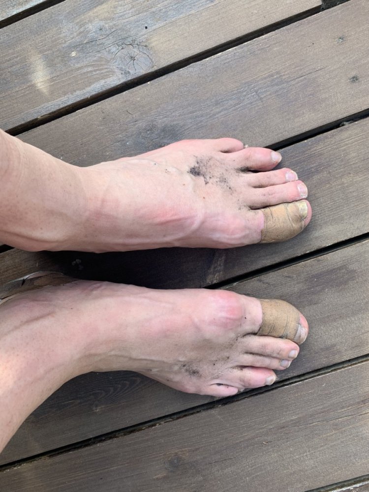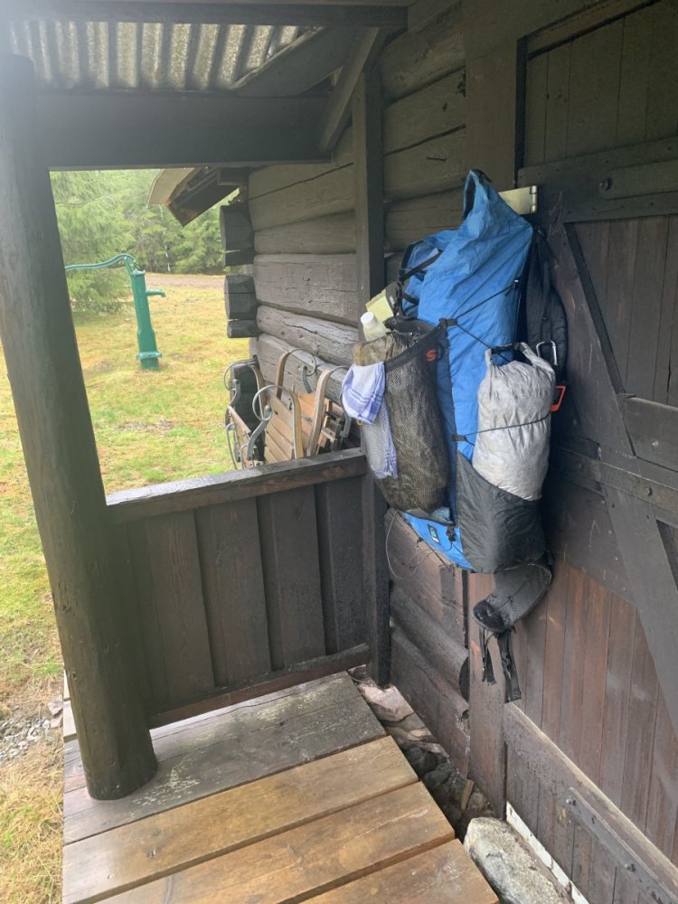 Her er mer av bakteppe ang utstyr og litt viktige rutiner. Dette er del 1 av flere deler, og vi er er gått over i nerdebiten 😀 Når jeg kom hjem, var det varmt og rått, og hadde hatt mye regn, så vekter etc er nok påvirket av dette. Blir mye info. Som blir delt i flere deler. Vi starter med hva jeg hadde på meg og noe av det utenpå sekken. Sekken med alt som var i og på den veide 40gram over 10 kg. Dette er inkl alt av tøy som jeg hadde tatt av, gåstaver etc. Dette var ankomst antrekket, hadde tatt av alle 4 delene med bein på buksa. Damestrømper, tynne sokker og tykke sokker, gode sko. I buksa hadde jeg denne lille Gerber LST kniven på 18 gram som var hovedkniven på hele turen. Hadde også en lommetørkle til å pusse briller og mobilglasset og linsa på mobilen. Crispi Briksdal skoa hadde fått kjørt seg de siste dagene, og ene støvelen er ikke 100% tett lenger. De er ca 8 mnd og er det beste fjellsko jeg har hatt, selv om de er i dyreste laget. Reklamere på disse. Er en søm som er dårlig sydd. Lette å justere hvor du vil ha presset, siden di har en skolissestopper midt på. De har også en knallfint gramasjsystem som passer til skoa, de lå i sekken, siden det var vei siste km hjem. Må også ha sko med stiv såle siden jeg har minsket kraft i tær på grunn av sykdom. Gramasjene veide 160 gram og lå i sekken, passer også fint mot huggorm. Noe av det viktigste med å gå på tur er å ta vare på kroppen, jo lenger tur jo viktigere. Gnagsår dreper mange turer og skal du gå langt og slik som jeg som har lett for å få gnagsår og i tillegg har store beinkuler nå begge hæler. De indre damestrømpene holdt faktisk i 3 uker. Beina er ikke vasket på 3 uker heller. Men ser bra ut, ingen gnagsår Konemor trodde det var sportstape som var blitt helt brun.... Men bruker Leuko-tape som sitter bra og lenge. Lakker neglene med klar neglelakk før turen, da tåler de mere. Klipper de også, samt pusser vekk all hard hud. Ene stortåa er stiv etter at jeg ble påkjørt mens jeg kjørte mc. Så den må passes ekstra på. Bruker Tensoplast tape innerst Etterser og klipper vekk det som blir løst og setter på ny tape ved behov. Merker du noe med beina, er det full stopp og sjekk. Ikke gå litt til, da blir det fort skader/ gnagsår. Har compeed plaster under leukotapen. Compeed plus som er den tykkeste holdt også i 3 uker. Hadde med ekstra damestrømper, Compeed, tensoplast og Leucotape. Den blir også brukt som reptape. Sitter på det meste, og har du med antiback kan du vaske og gjøre rent før du taper. Minste multiverktøy som finnes, men har saks og det er viktig. Leatherman squirt ps4. Har også tang om du må ta ut en fiskekrok. Ekstra tykke sokker. Ekstra tynne sokker. Brødposer hvis du virkelig plumper. Da kan du ha på tørre sokker og ha brødposer mellom tynne og tykke sokker, evnt utapå de tykke, og ned i de gjennombløte skoa. I hver pause, er det viktig å lufte beina, ta av alt av sokker, og ta ut såler av skoa, tørk i sola, eller heng de opp i trær hvis det er vind. Bytt i værste fall mellom parene og tørk sokkene bak på sekken eller ha en sokk i hver sidelomme på buksa/shortsen. Da blir de tørket av kroppsvarmen. Svette og våte bein gir fort problemer, så tørre bein er meget viktig. Blir det varmt vokser beina, og da skipper jeg de tynne innersokkene. Da passer sko bedre. Selve Zpacks arc blast sekken veier 660 gram inkl svette, og Drikkeflaskeholder - MLD kjøpt brukt av @Rino Holt Larsen og i den har jeg mobilen. Den sitter på venstre skulderrem, lett tilgjengelig. Garmin Inreach mini henger på høyre skulderrem. Lett å lese av og den har gode plassering i forhold til sending og mottak. Lett, men karabinkroken har for svak fjær, må byttes ut/ eller sikres med en tråd i tillegg. Ramlet av engang når jeg tok av sekken. Har også en liten Zpacks karabinkrok til å henge strikker etc i nettinglomma bak på sekken, sparer mye tid på å lete etter di, da de har en fast plass. Inngår i sekkevekta. Liten thermos 0.35 L til kaffe, eneste koppen jeg har med også. Små kaffepauser gjør seg på tur og du sparer tid. Vann kan også være vanskelig å finne der hvor du vil ha pausa, feks på en topp. Smartwater flaske på 0.6 L som jeg fikk av naboen @roger_i_marka på Tyrifjorden rundt turen i fjor. Passer utmerket til mitt litt amerikanske oppsett. Locus Gear CP3 Carbon gåstaver, en i hver sidelomme, hvis de ikke er i bruk. En blir også brukt som teltstang også. Bruker de også som oppheng til å filtere vann om det ikke er noe å henge det systemet opp i. Med karabinkroken som er 2 bilder opp, kan jeg feste kaffekjelen i snora og hente opp vann, hvis det er langt ned til vannet, som en omvendt fiskestang med kaffekjelen som krok. Stavene kan justeres og de blir 1.35 cm høye. I andre sekkelomma har jeg alt av «alltid tørt tøyet» Det er montebell ullstilongs, i str XL, den ble også brukt på dagen, siden det ble mye kaldere enn beregnet første del av turen. Montebell ulltrøye også i str XL. Ekstra truse Stort MSR Badehåndkle i microfiber for å tørke opp søl/kondens eller etter bading. Tørket utrolig fort, og holder akkurat til en stor mann som meg. Denne ble ikke brukt på turen, var bare en dag det gikk å bade, og det var en drikkevannskilde, og på DNT Tømte, kom det mange når jeg skulle til å ta kroppsvask. Artyrex Hansker, ble brukt mange dager for å holde varmen på starten/eller inni vondvottene. Zpacks Beanie Lue i fleece, lett og gull verd når det var kaldt. Ekstra t-shirt. Kunstfiber er lettere, men stinker som fy etter noen dager. Ekstra brilleklut/linsepusseklut, og kan brukes til å tørke av ting ved behov, prøver å spare denne, kan brukes til førstehjelp også hvis den er ren. Dette ligger i en Zpacks tall pakkpose som er helt vanntett og som passer nedi sidelomme på sekken, clipser den fast i snøringen på siden. Når maten minker havner den oppi sekken. Zpacks og de amerikanske UL produsentene r