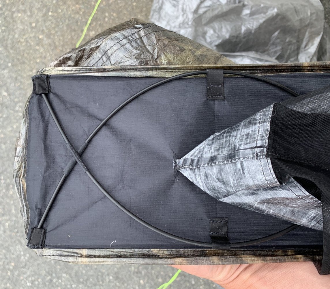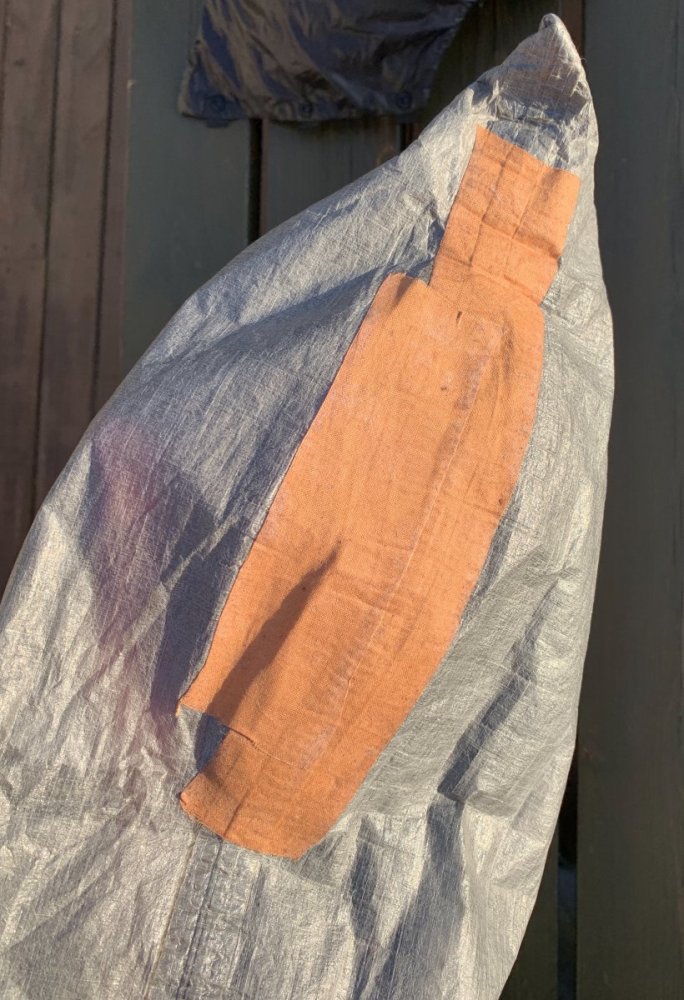 Da fikk jeg endelig tid til å sette opp Green Cone for første gang, som dessverre ble litt amputert da grunneier av marken der jeg satt det opp tilfeldigvis hadde planer om å klippe gresset. Jeg rakk å få montert sammen ytter og innertelt og plugget rundt før jeg måtte pakke sammen igjen, så fikk ikke justert inn noe særlig eller strammet opp med alle bardunene. Det var egentlig ikke noe særlig problematisk å sette det sammen, men det tok litt tid da jeg måtte plugge ytterduken først og sette inn stangen, for så å montere innerduken, for deretter å plugge innerduken og plugge ytterduken på nytt på de nederste bardunene. Ved neste oppsett ser jeg for meg at det bare er til å rulle ut teltet, plugge og strekke ut bunnen av innerteltet, sette inn stangen og så ta en runde og plugge ytterduken. På utsiden av innerteltet er det strikk med en plastpinne i enden som man trer gjennom ringer i plast på innsiden av ytterteltet, en runde helt nede, en litt lenger opp og så samme prinsipp til å feste toppen av innerteltet til toppen av ytterteltet. Innerteltet er også festet til ytterteltet med klips på justerbare bånd, eller buckles, ala dem man fester lukker lokket på sekken eller fester hoftebeltet med, vet ikke helt hva de heter. På innerteltet er disse båndene festet der hvor de små innsydde stengene i bunnduken er, som er med på å holde "badekar" fasongen på bunnen. Regner med at det ikke vil ta mer enn kanskje 6-7 minutter å få det opp når man har gjort det noen ganger så lenger man pakker det ned uten å demontere. Min versjon er tydeligvis en oppgradering/endring, for ytterduken har ikke bikube mønsteret som jeg har sett tidligere, her er det ripstop, og denne virker veldig solid, det samme gjør bunnen. 2-veis glidelås både på inner og ytterdør. Døren i innerteltet har både duk og myggnetting som kan åpnes separat, samt at innerduken har 3 stk. lufteluker som kan åpnes langs bunnen. 2 stk. lufteluker i toppen av ytterteltet. Vekt på bagasjevekten; Lengde pakket ca. 60 cm. Det er litt luft i toppen av pakkposen så den siger ut litt Bredde ca. 25,5 cm Det var med 22 stk. plugger som virker ganske solide. Jeg lurer litt på disse sporene i toppen, for at disse skal ha noen effekt må man enten sette dem ned med åpningen bort fra teltet eller så må man slå en løkke på bardunen. 17,5 cm lange. Stangen er solid, 3,5 cm diameter på det nederste av de 3 rørene, henger sammen med strikk som vanlige telt stenger, og den har solid gummikopp i begge ender. De har også vært smart nok til å merke innerstangen med en rød strek som viser hvor låsepinnen befinner seg så man slipper og vri og vende på den for å finne ut hvor den er og så satt stangen i lås. Bildet med måling av bredden lyver så det holder, det var ikke lett å få det til med et rundt objekt. De 2 bildene av teltet jeg rakk før det måtte ned3 poeng
