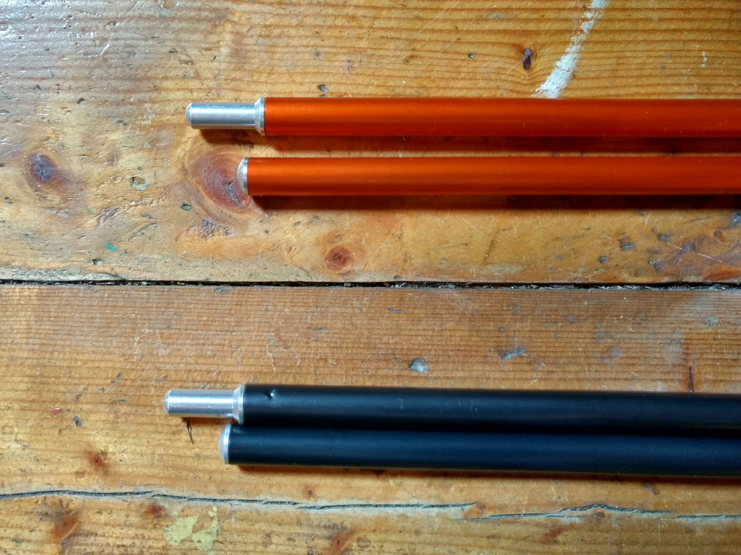 Sjekket lengdeforskjellen på stengene nettopp. 2019-mod med en butt ende, mens 2017 mod har spiss i begge ender - og her er endene jamstilt utenfor bildet til høyre: Minimal forskjell, altså. Jeg tipper at ytterteltet er sydd så å si uendret, men at innerteltet er sydd 10 cm lengre, og så lar man ytterteltet bli 10 cm ekstra utspent nederst for å få lengden inne. Med det mister man litt høyde, men akkurat det har man jo mye av i utgangspunktet (relativt sett, mot andre telt). Og det blir enda viktigere å påse ordentlig utspenning vha plugger. Tror du har rett mhp praktisk liggelengde et stykke over bakken, ja. Akkurat nå ser det ut som om jeg ikke kommer til å bytte til 2019-mod uansett, siden det er absolutt null interesse for 2017-modellen som jeg annonserte i "Kjøp, salg og bytte"-kategorien (Link). Lar den ligge over helgen, og er interessen fortsatt laber, returnerer jeg nykomlingen og beholder godegamle - fortsatt godt fornøyd. Samtlige overnattinger der har vært komfortable, og jeg ser ingen grunn til at ikke det skal kunne fortsette (Kan jo ikke beholde begge to - da risikerer jeg å havne i krangling over n+1-formelen betydning når man bringer inn ulike modellår på like telt, og slikt kan vi ikke ha noe av...)1 poeng