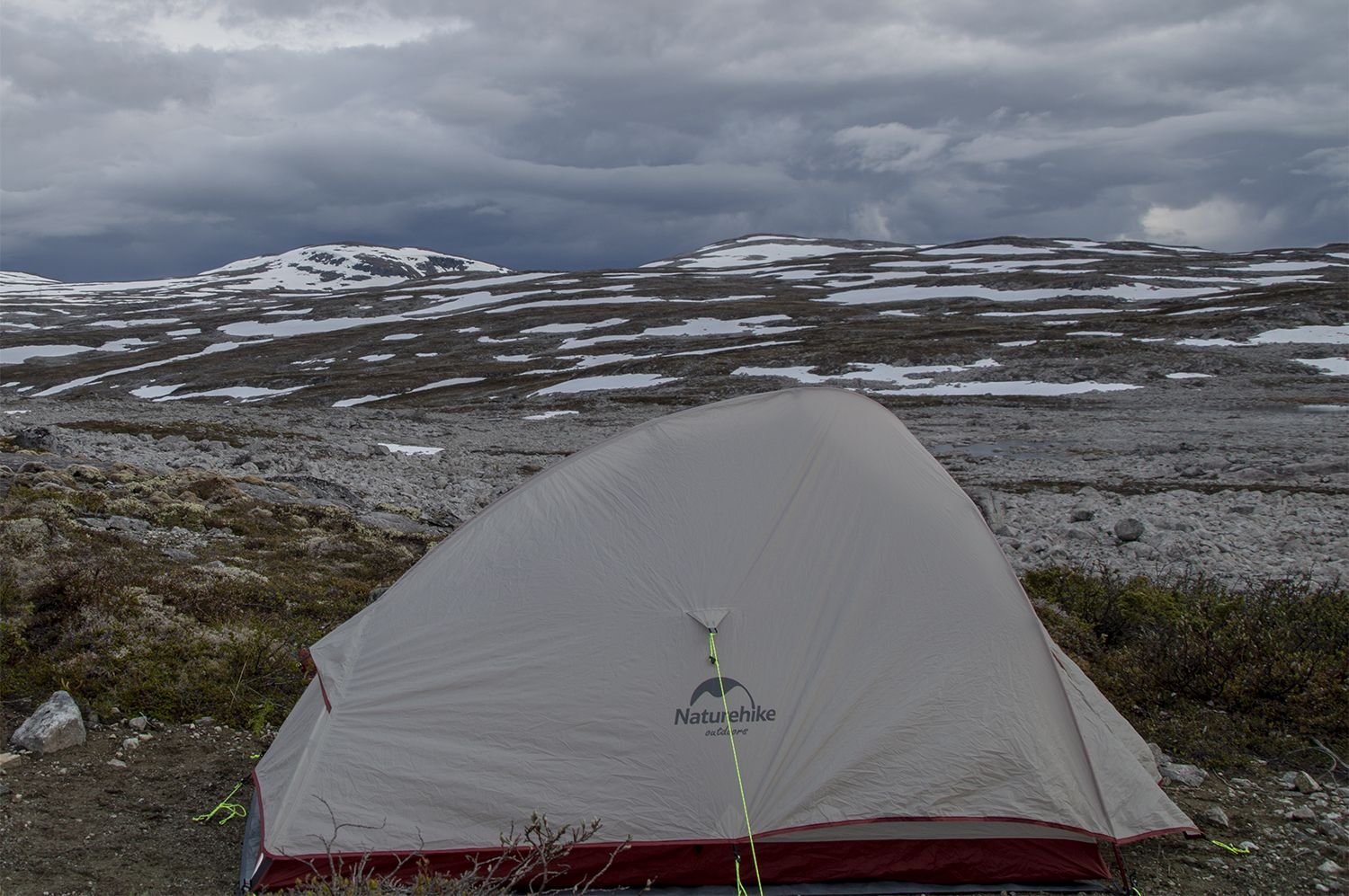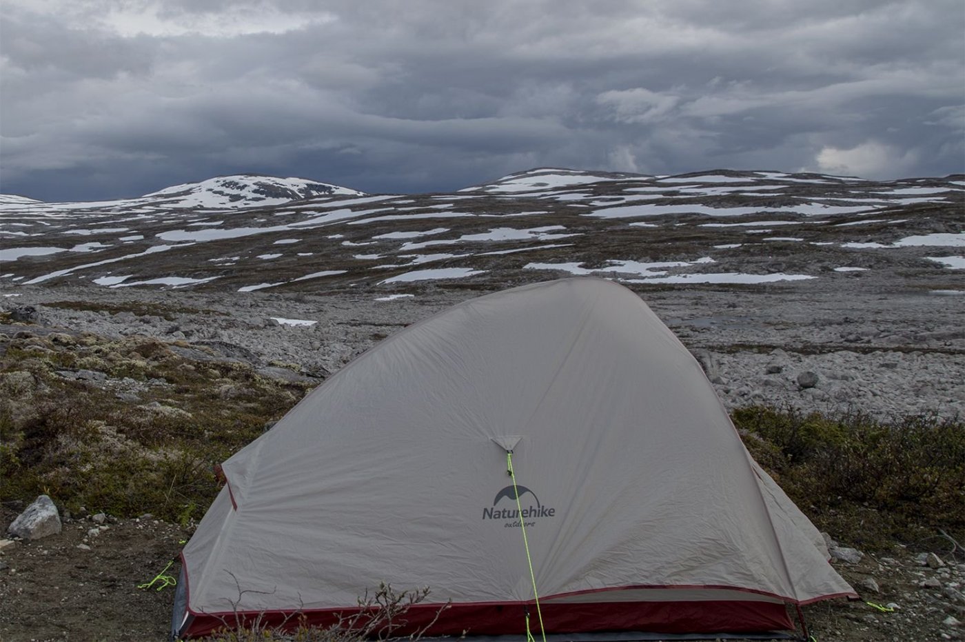 Nordmarka-teltet er mye telt for pengene, men innvendig er høyden 90 cm på det meste. Hvis jeg skal kjøpe telt vil jeg gjerne kunne sitte oppreist innvendig, ikke bare ligge. Skal du sjekke rygglengden din når du sitter på gulvet må du huske å tenke på tykkelse på liggeunderlag også. Hvis pris ikke er et kriterie og du skal kjøpe over disk ville jeg sett på Helsport Lofoten SL i 2manns utgaven, eller Hilleberg Anjan 2. Sportsnett har det siste. Alternativt Hilleberg Niak 1,5. Dyrt, men spesielt svenske Hilleberg er kjent for fantastisk kvalitet. Det som tiltaler meg i Anjan og Lofoten er muligheten til å brette inngangen helt vekk. For markabruk har jeg ofte behov og ønske om å nyte sene solnedganger, gjerne fra teltet. Da må man ha utsiktmulighet. Samtidig er jeg av den typen som sparer vekt. Over 2 kg telt for tre-sesongs alene i marka er unødvendig tungt. Personlig ville jeg gått for hengekøye eller bare presenning og myggnetting. Her er ett bilde fra sist natt i Lillomarka fra innsiden av hengekøya mi (Hennessy explorer Deluxe).1 poeng